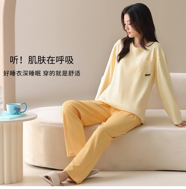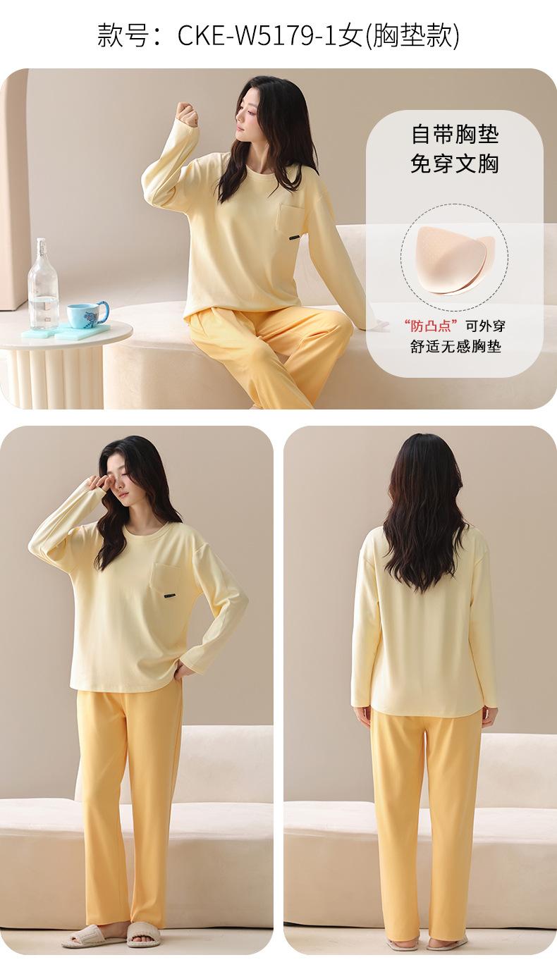 Pijamas al por mayor para mujer Otoño Manga larga Algodón puro Nuevo Estilo coreano Lindo Se puede usar afuera con Almohadillas en el pecho Ropa para el hogar Set de damas