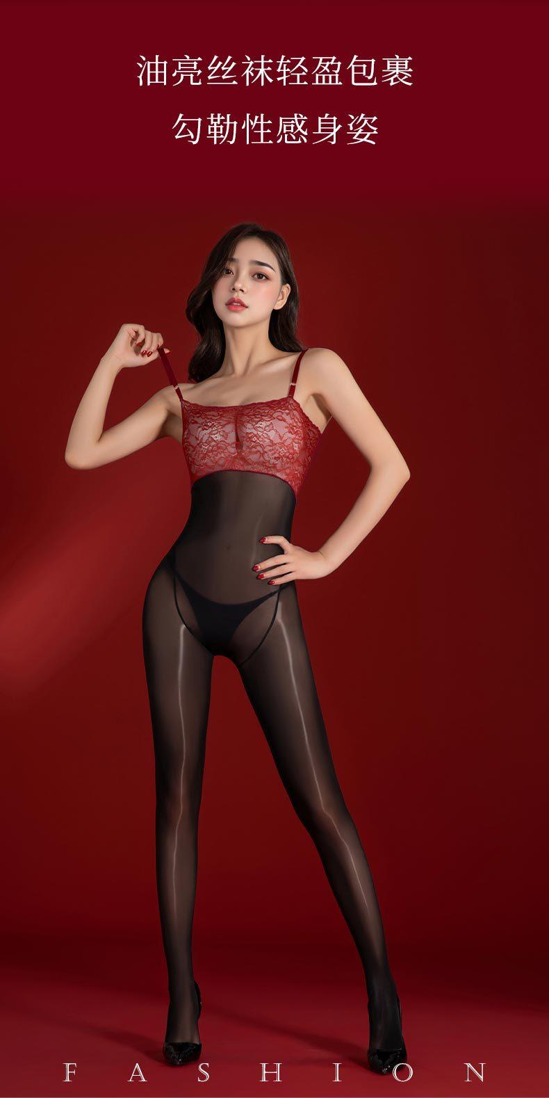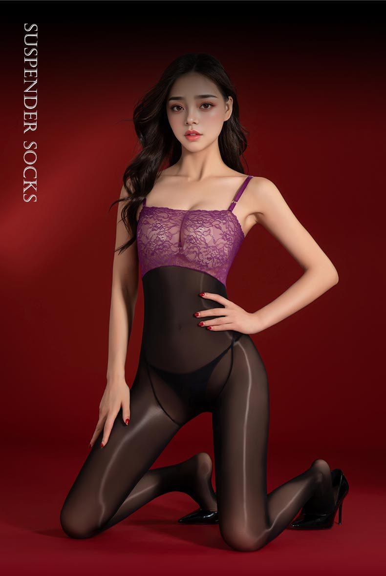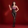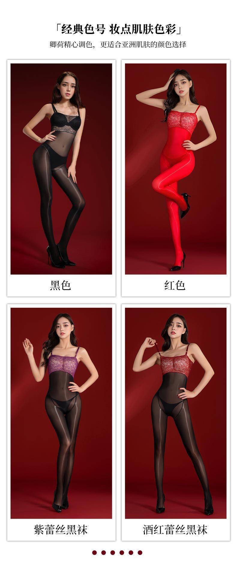 Camisola Bandeau de Encaje Qinghe Medias Brillantes de Aceite de Caballo Transparente Sexy Body de Seda Negra Lencería Entrepierna Abierta