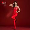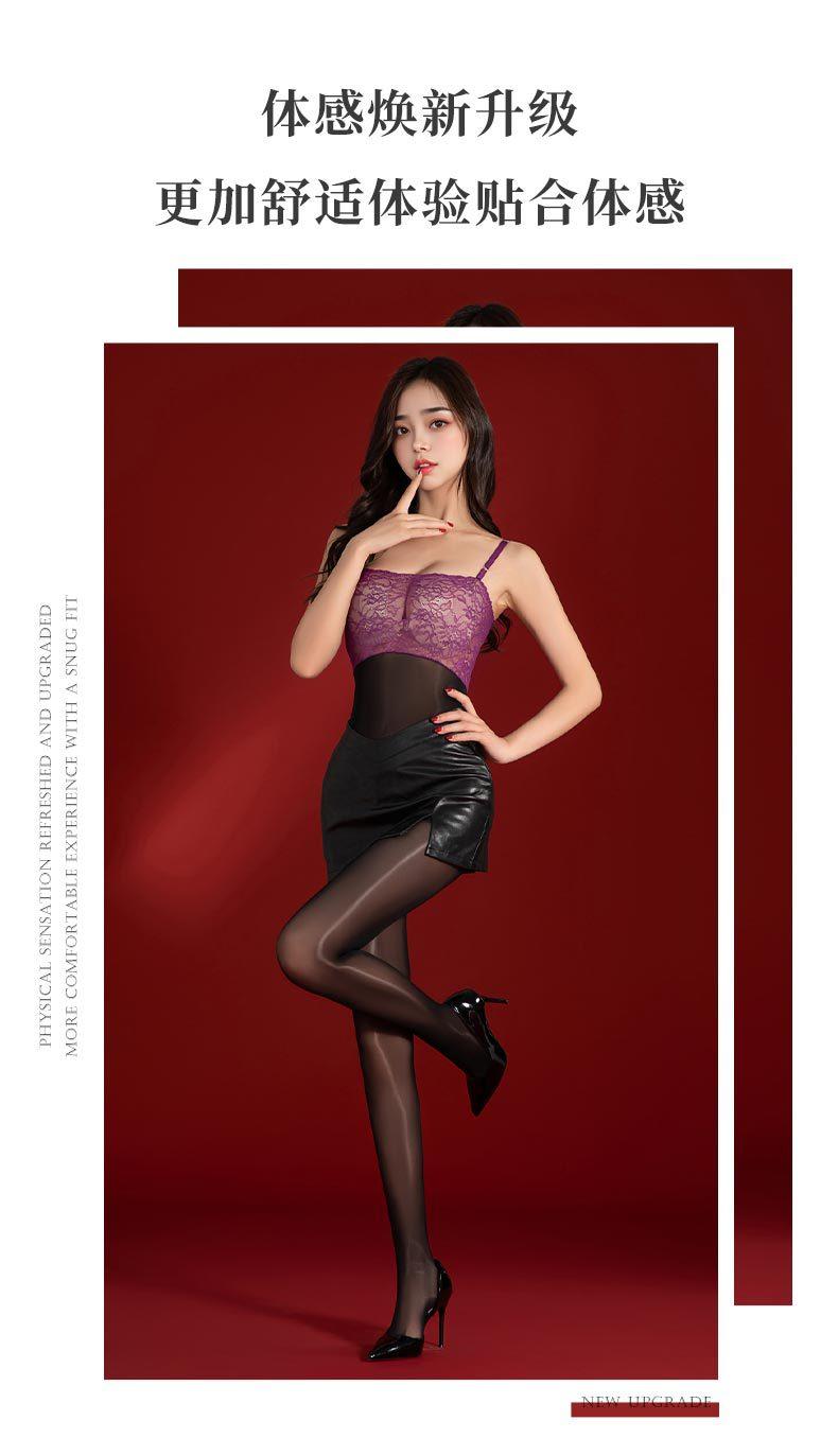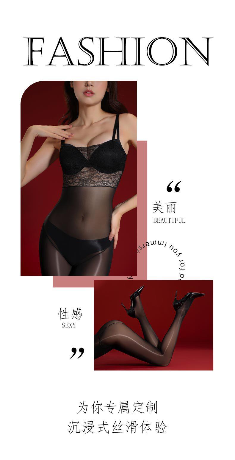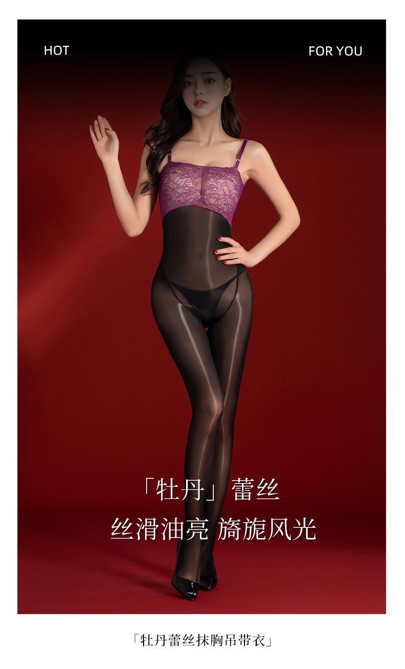 Camisola Bandeau de Encaje Qinghe Medias Brillantes de Aceite de Caballo Transparente Sexy Body de Seda Negra Lencería Entrepierna Abierta