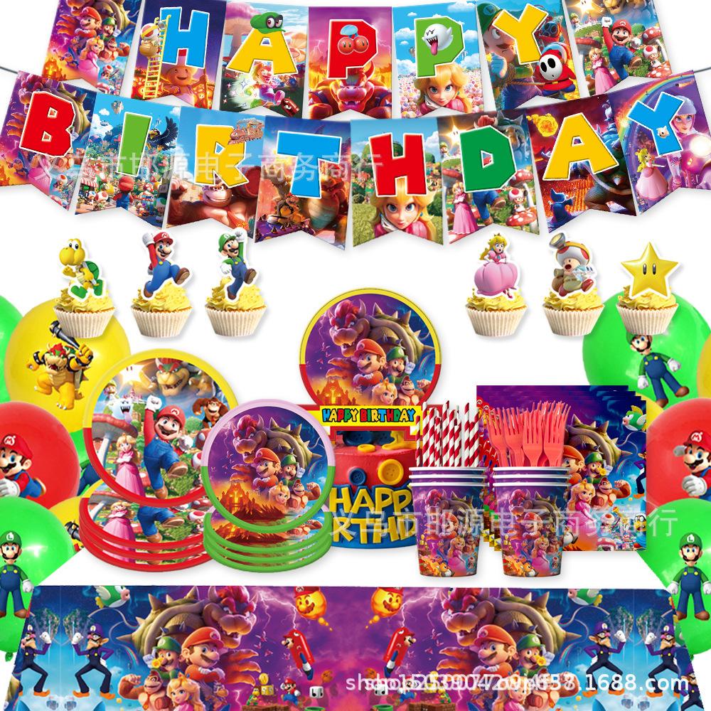 Nuevo Mario La Gran Película Decoración de Fiesta de Cumpleaños para Niños Banner Decoración de Cubiertos Suministros para Fiesta