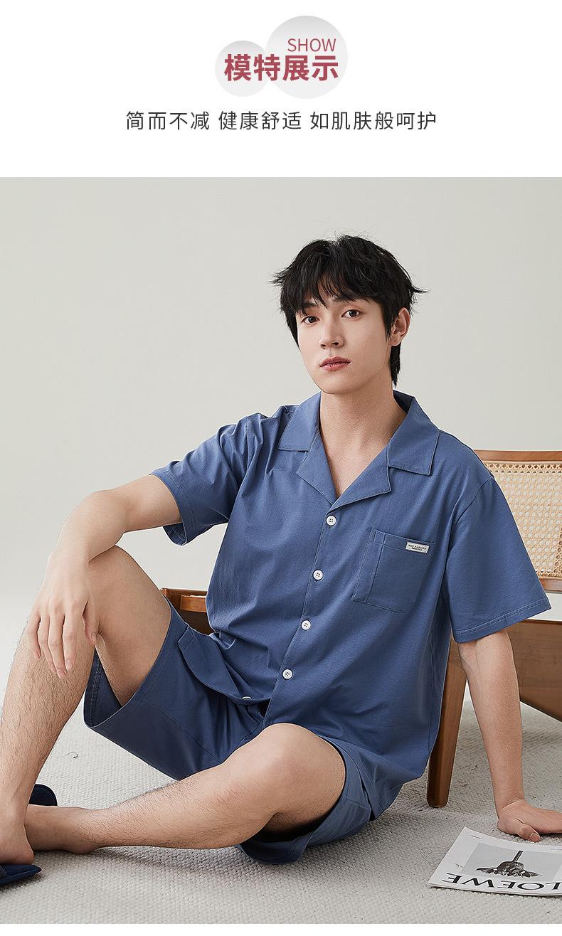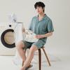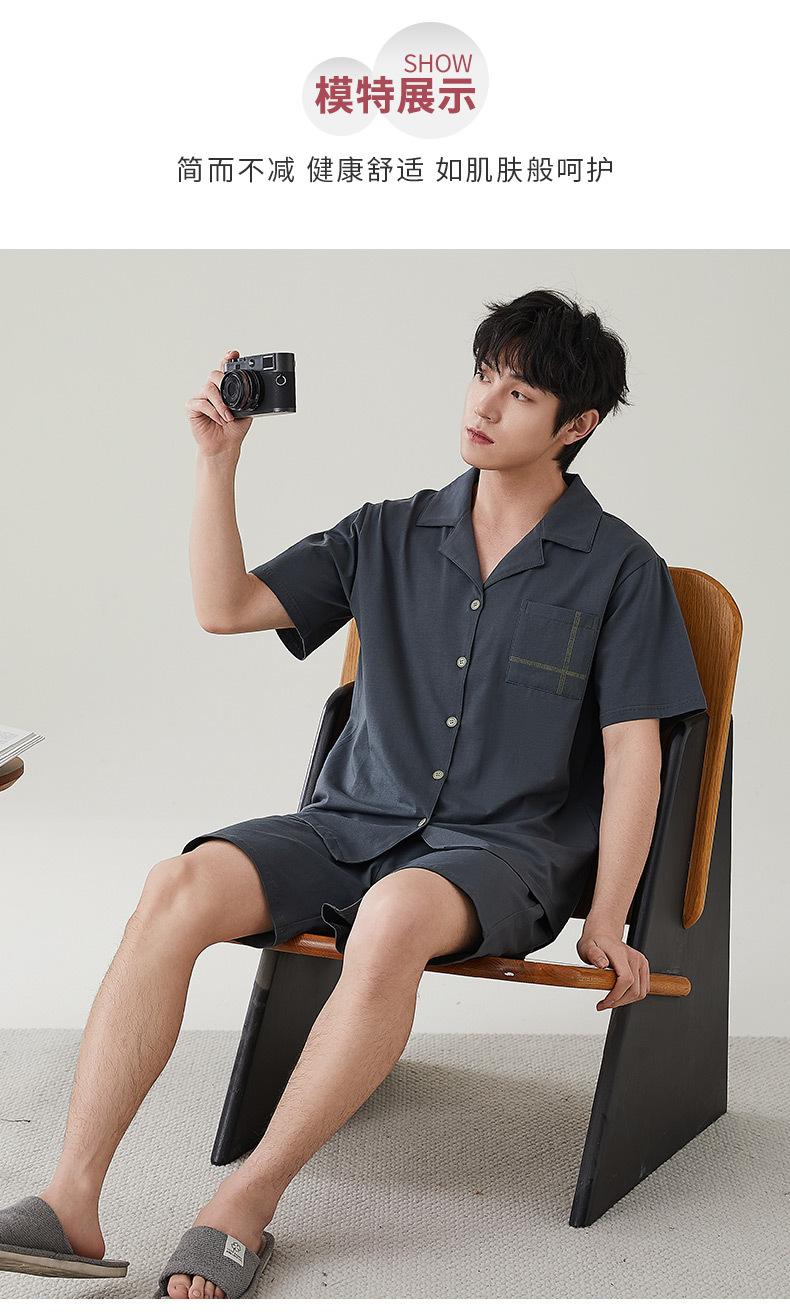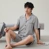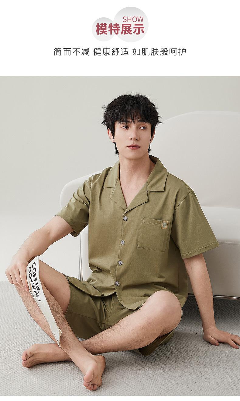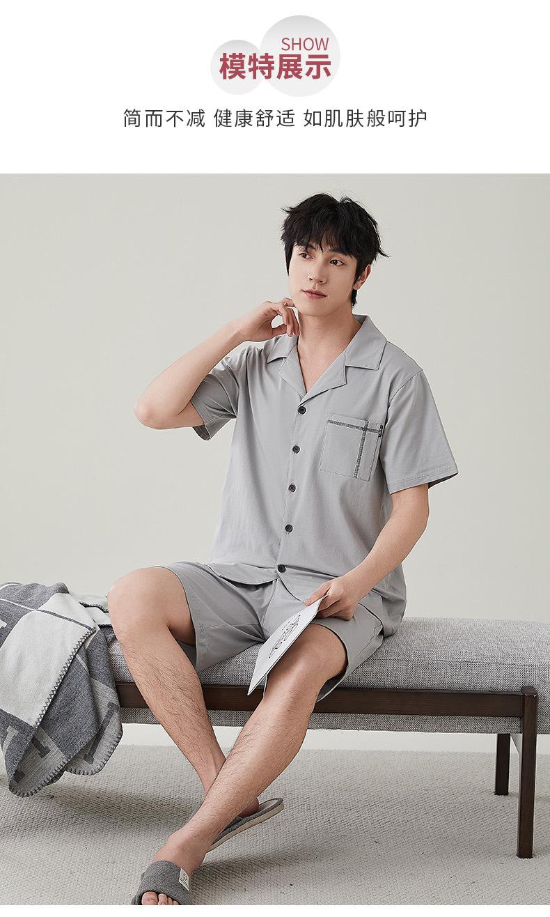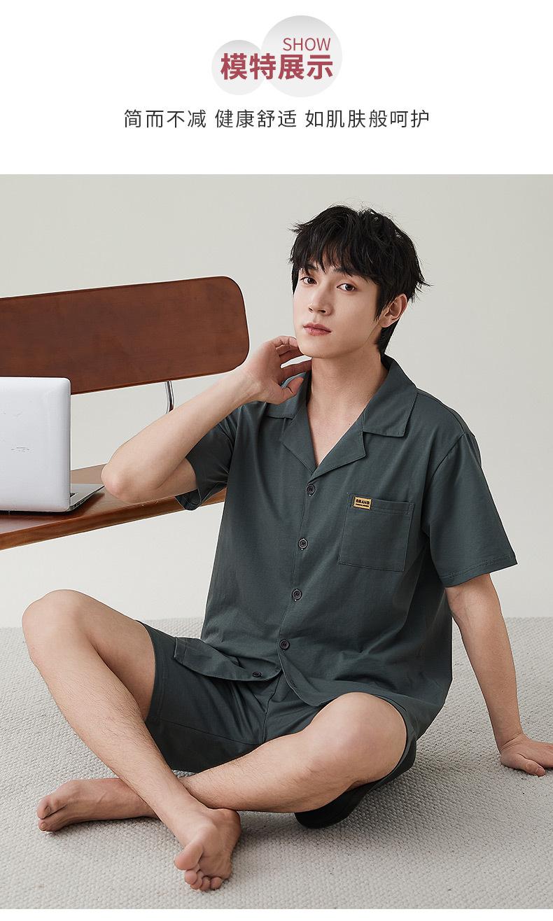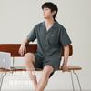 Pantalones cortos de algodón elástico antibacteriano de verano de manga corta Pijama para hombre Cárdigan Traje suelto fino Ropa para el hogar Se puede usar afuera