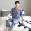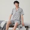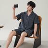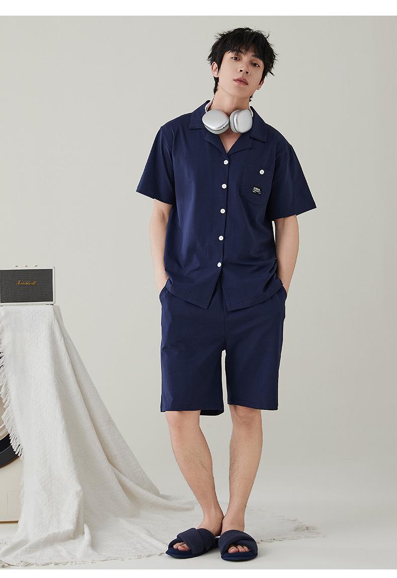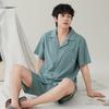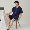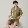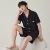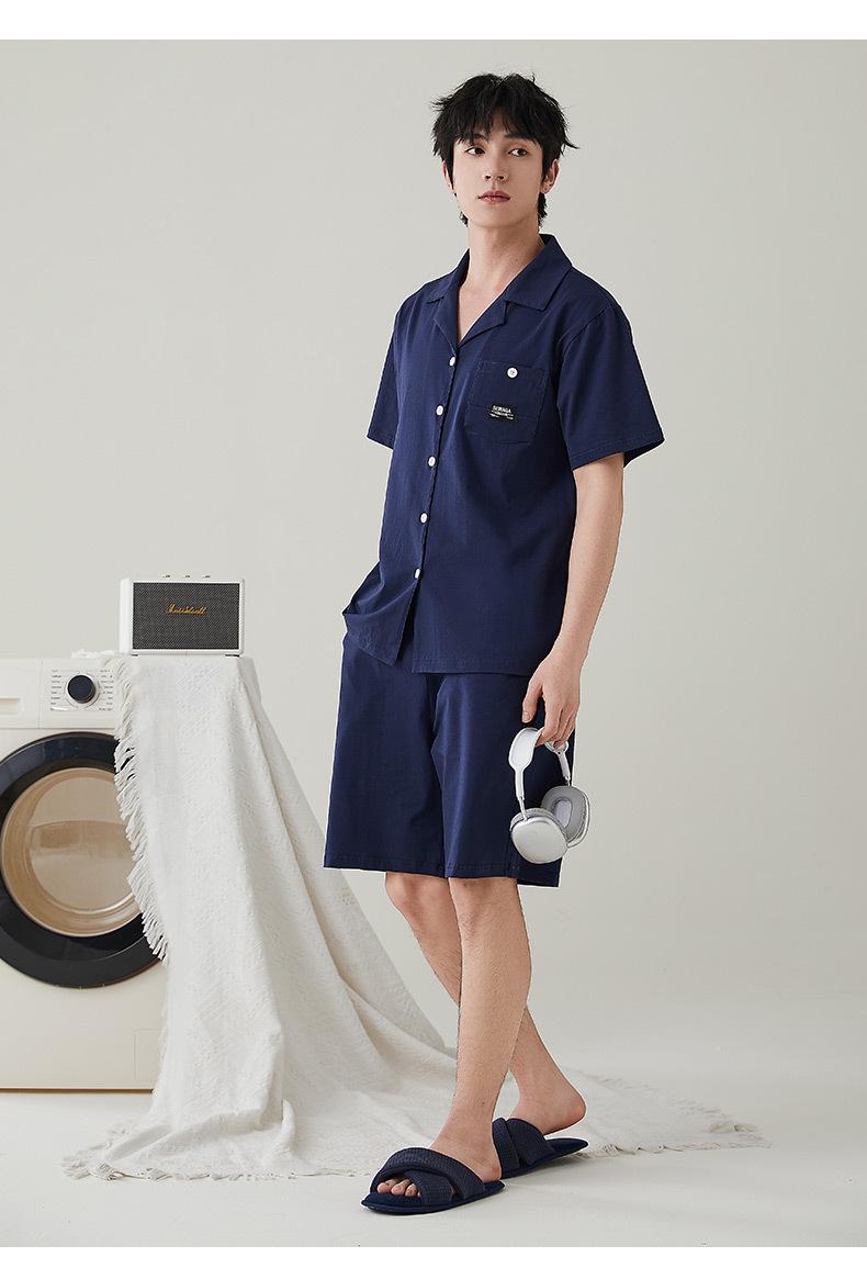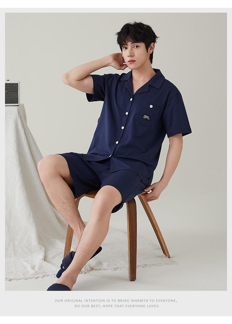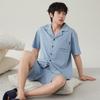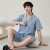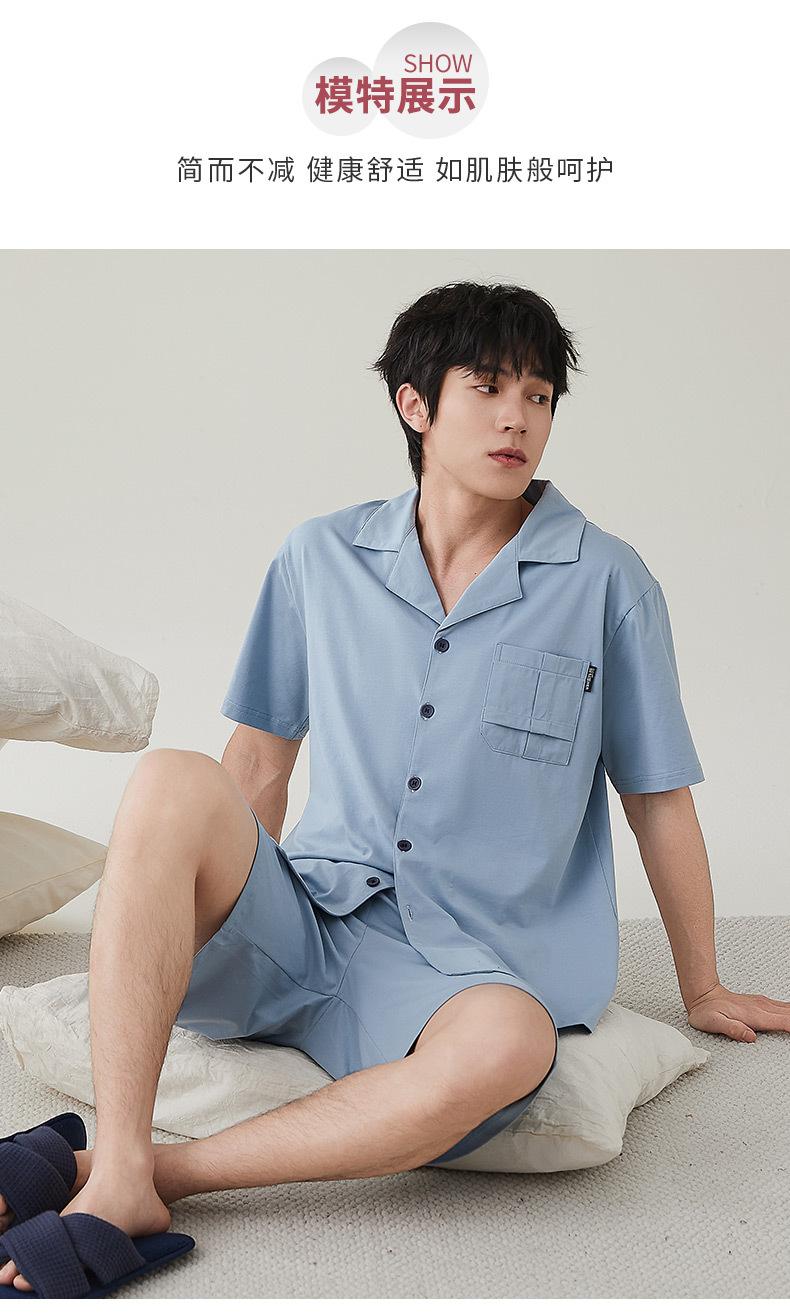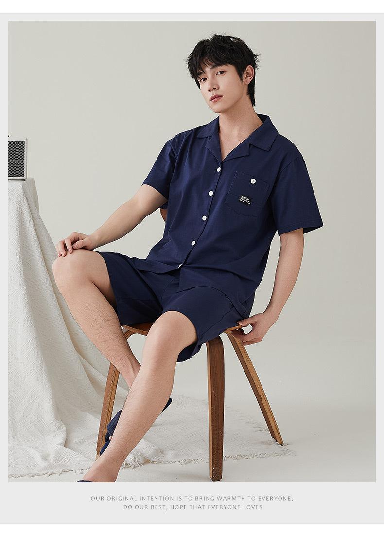 Pantalones cortos de algodón elástico antibacteriano de verano de manga corta Pijama para hombre Cárdigan Traje suelto fino Ropa para el hogar Se puede usar afuera