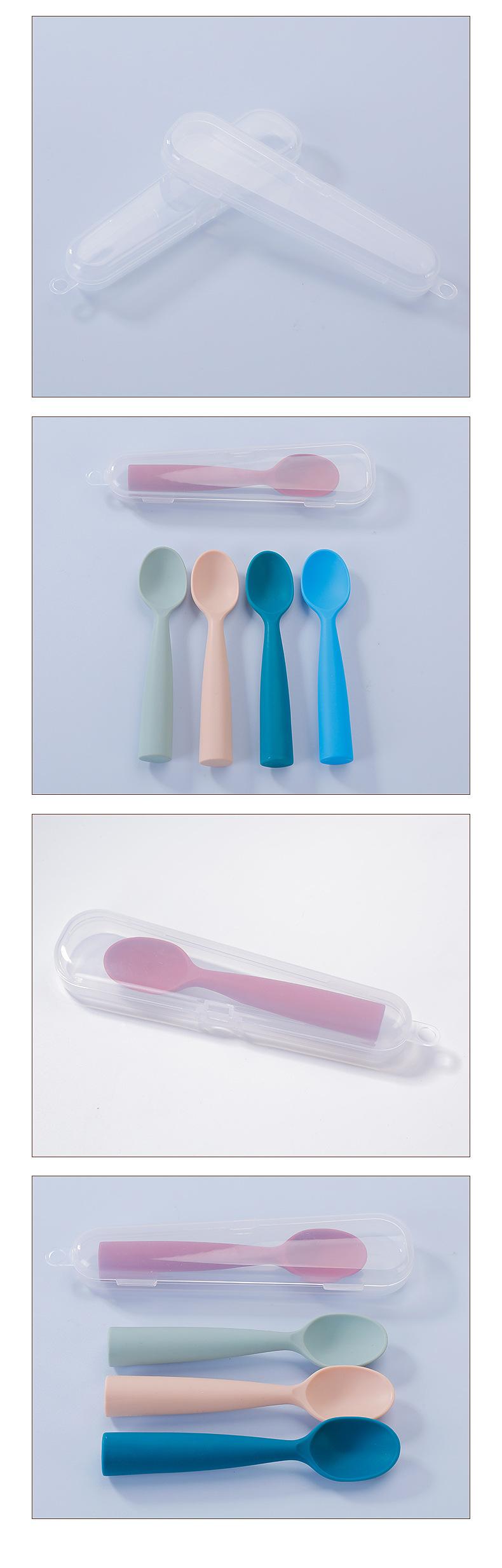 Caja de almacenamiento para cuchara de suplemento alimenticio para bebés de silicona de grado alimenticio, traje de cuchara suave de mango largo, vajilla para bebés resistente a las caídas, suministros maternoinfantiles