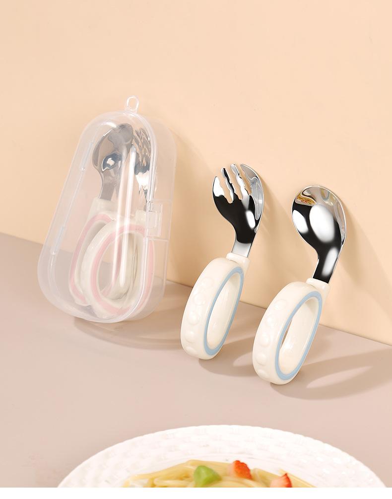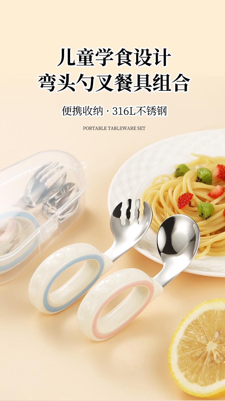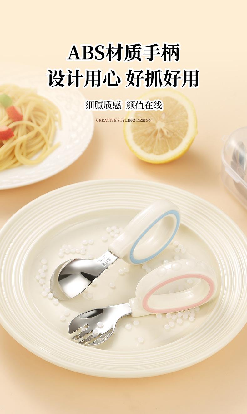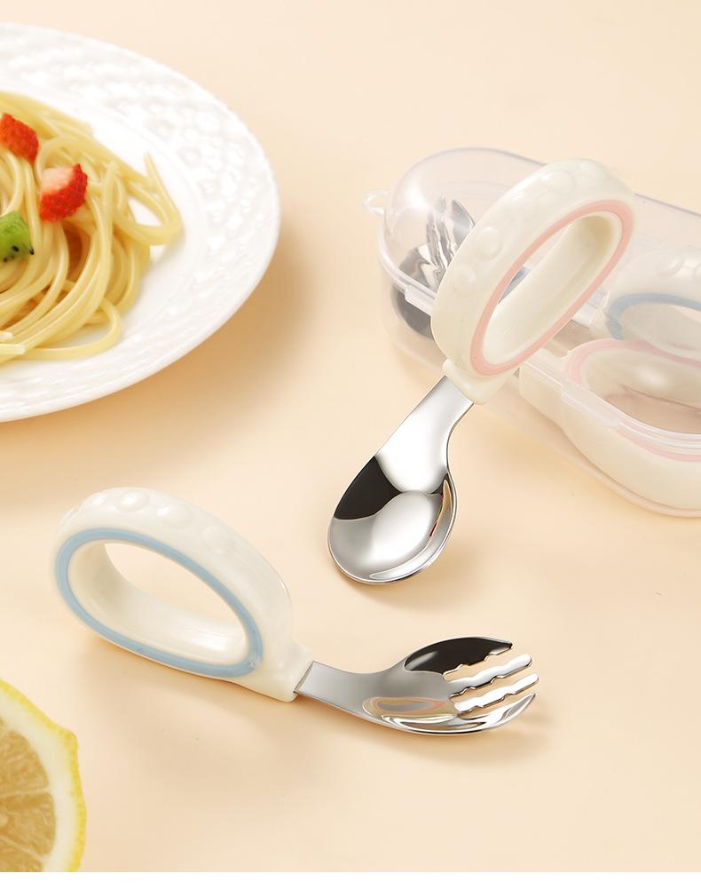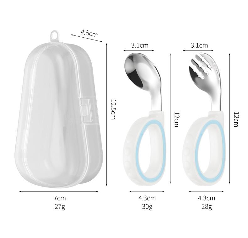 Cuchara tenedor de suplemento alimenticio de acero inoxidable 316, cuchara de autoalimentación para bebés, vajilla de entrenamiento para aprender a comer para niños.