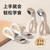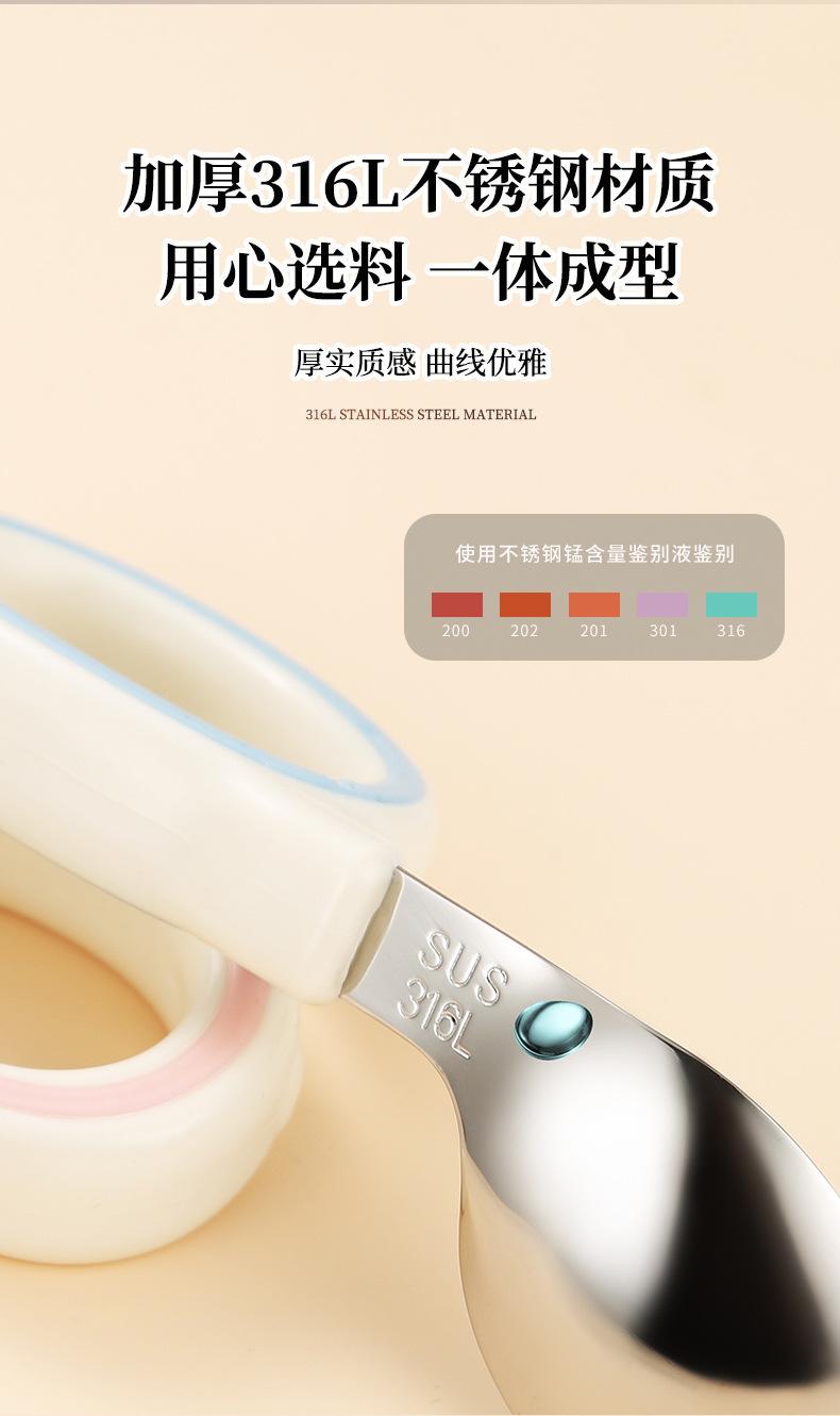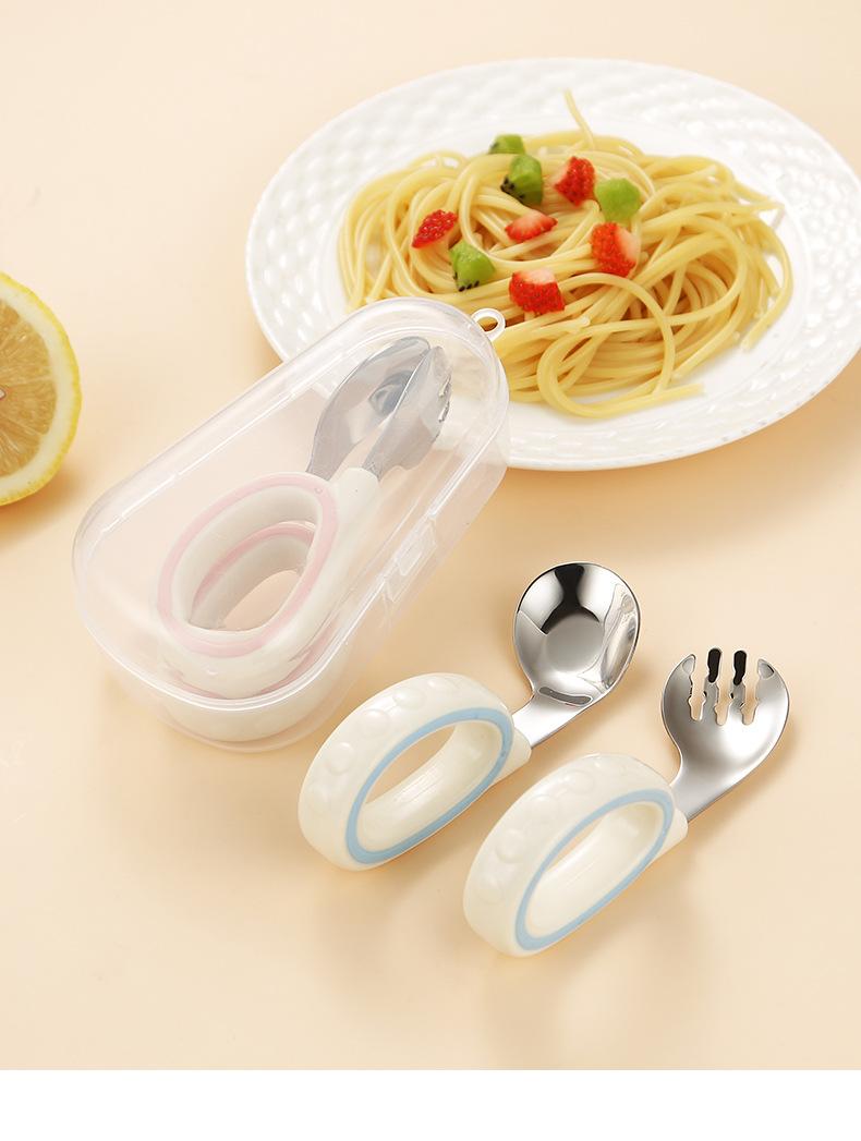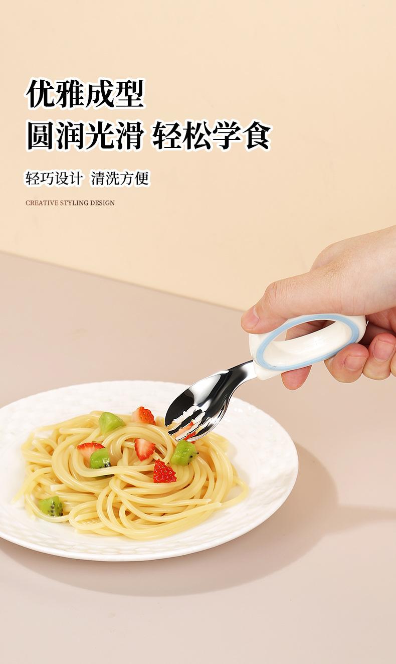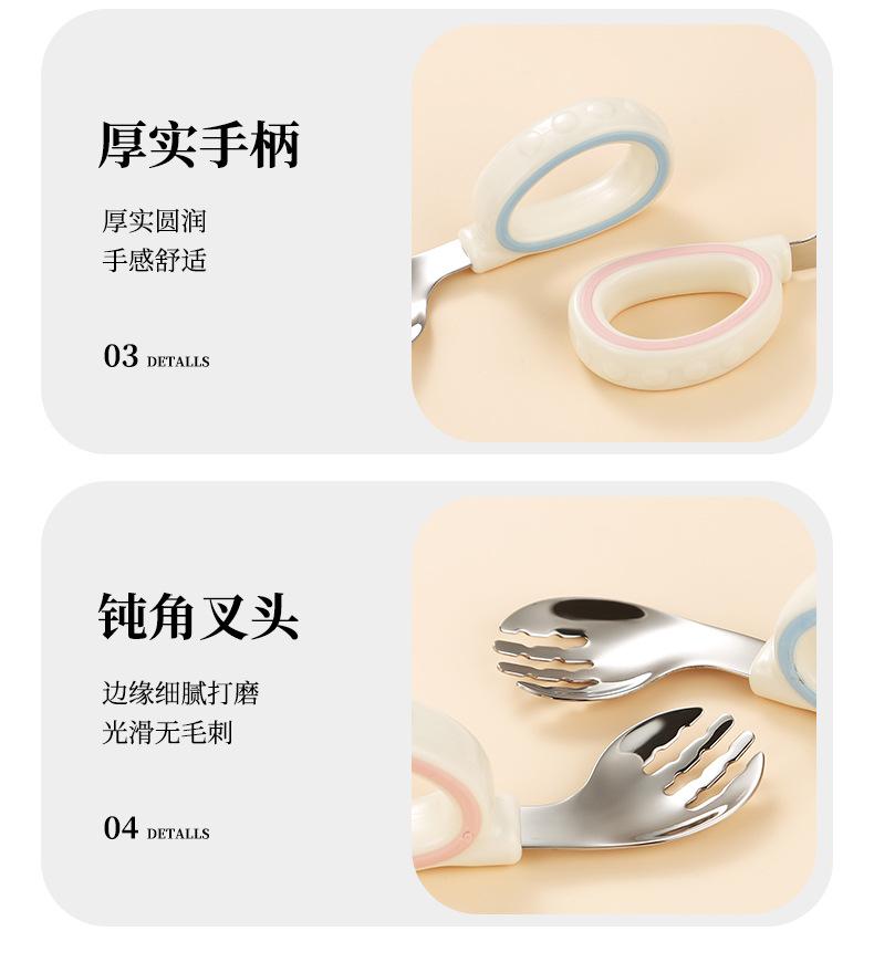 Cuchara tenedor de suplemento alimenticio de acero inoxidable 316, cuchara de autoalimentación para bebés, vajilla de entrenamiento para aprender a comer para niños.