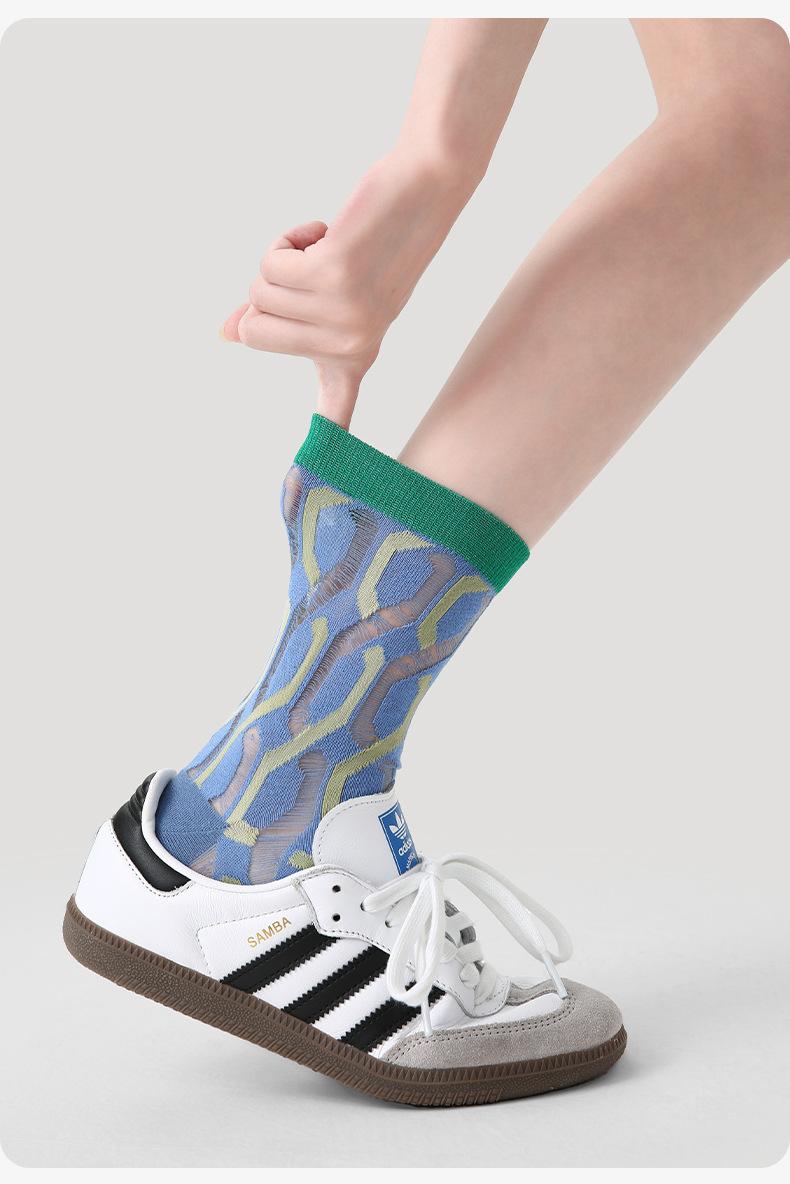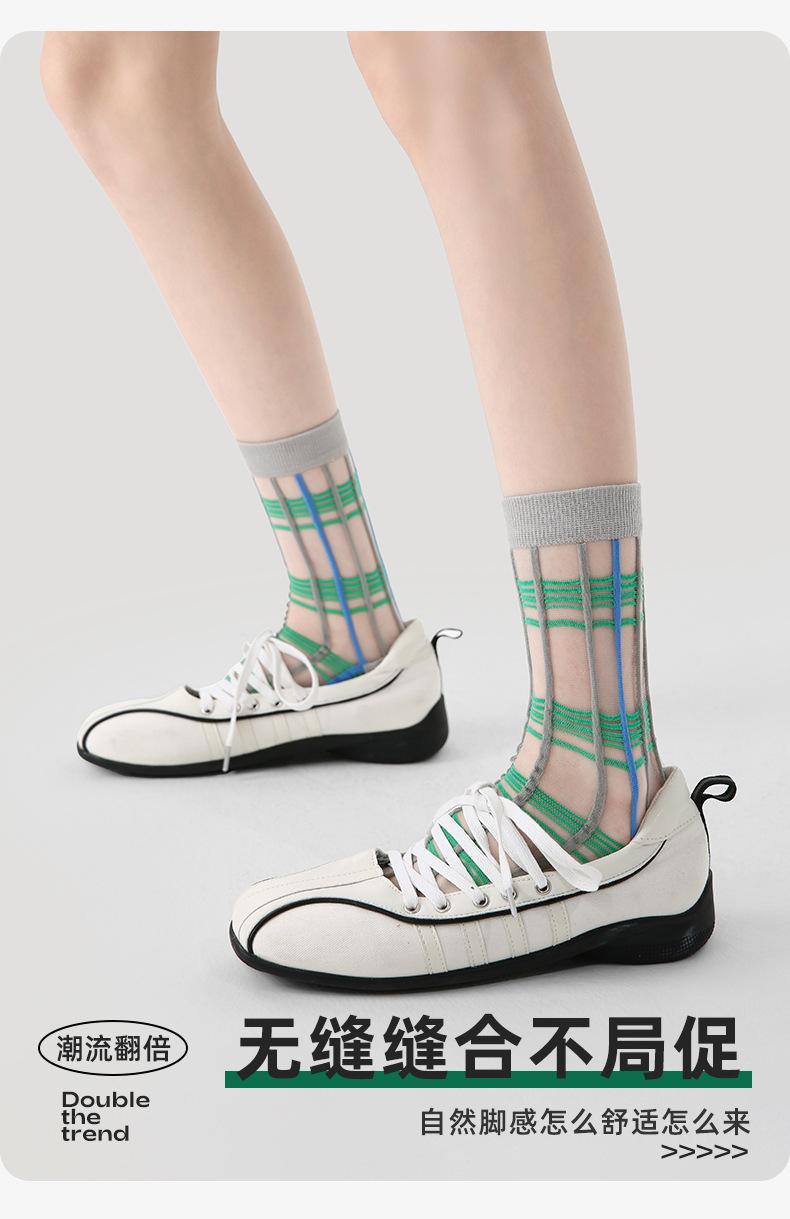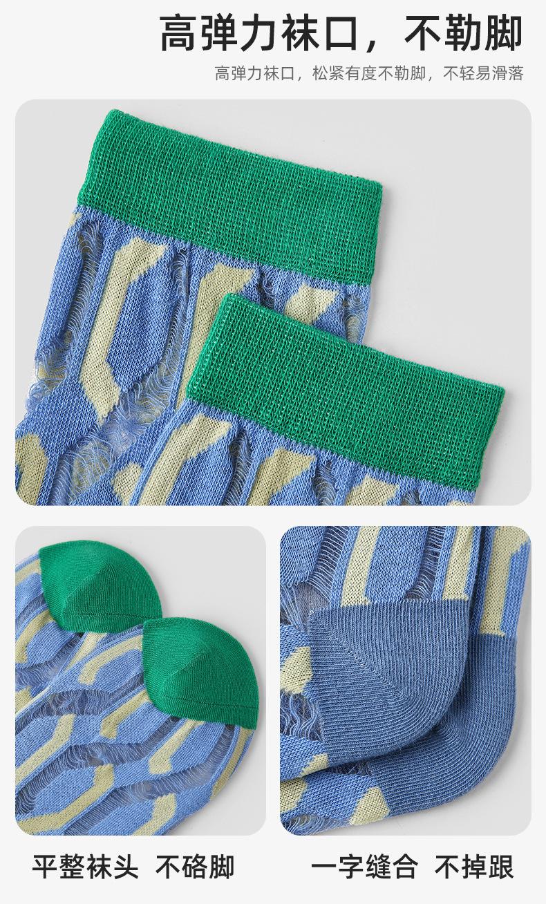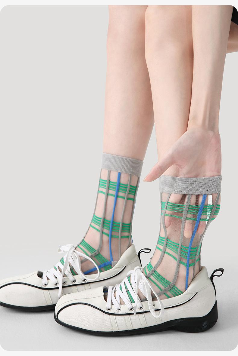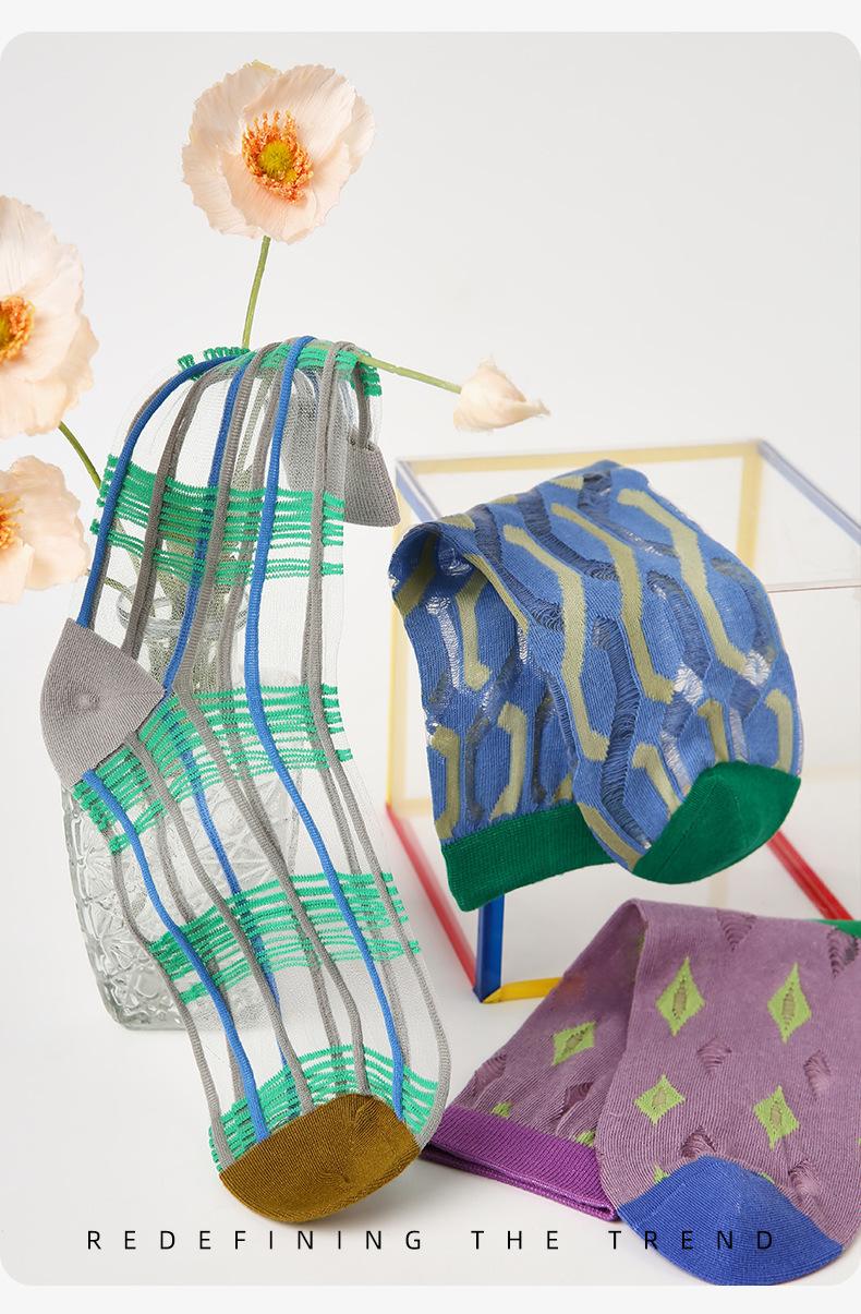 Calcetines Finos de Verano Renacentistas para Mujer Nuevos Calcetines de Malla a Rayas Chinos Transpirables Calcetines de Encaje para Mujer Tendencia ins
