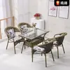 Juego de tres piezas de silla de ratán hecha a mano, silla de ratán para balcón, silla individual con respaldo, silla de ratán tejida para ocio al aire libre, combinación de mesa y silla