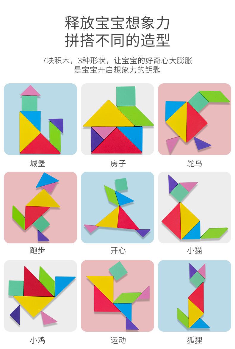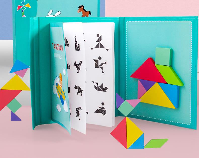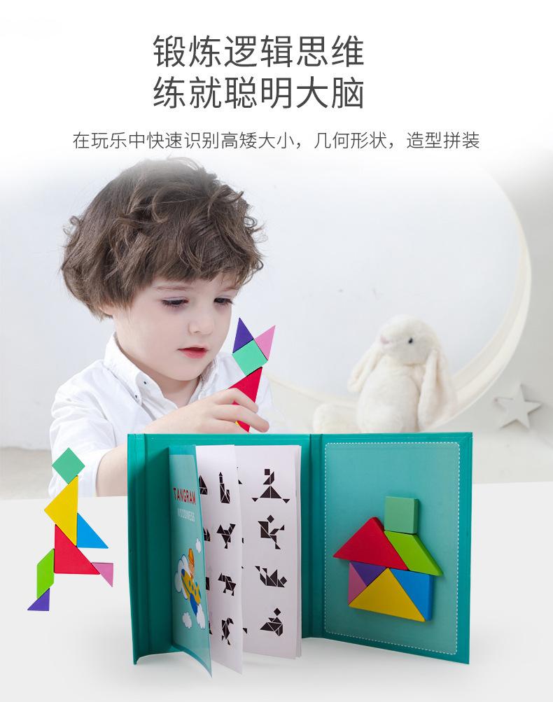 Juguetes educativos para niños transfronterizos, coloridos rompecabezas magnéticos de madera Tangram, material didáctico para el desarrollo de la inteligencia.