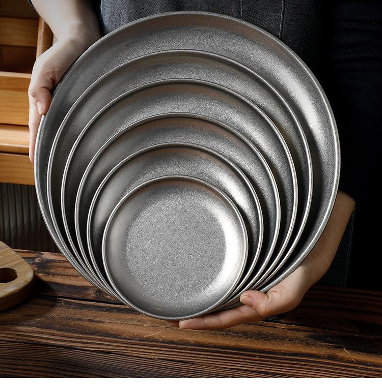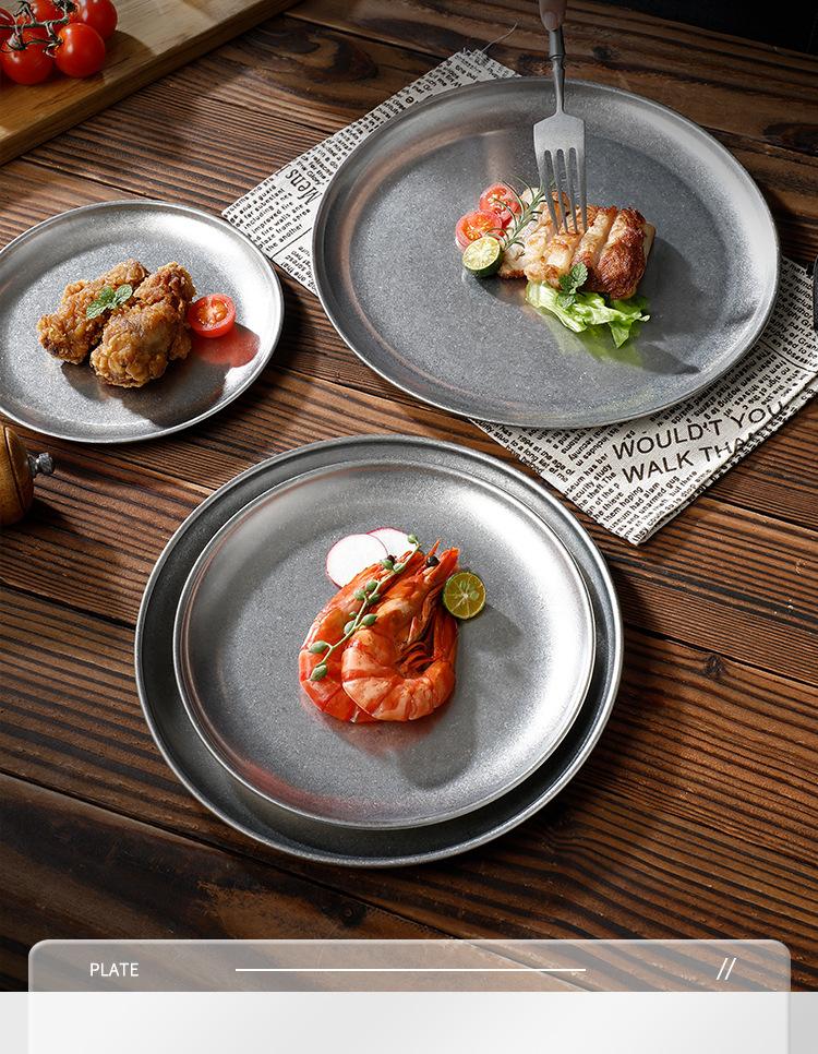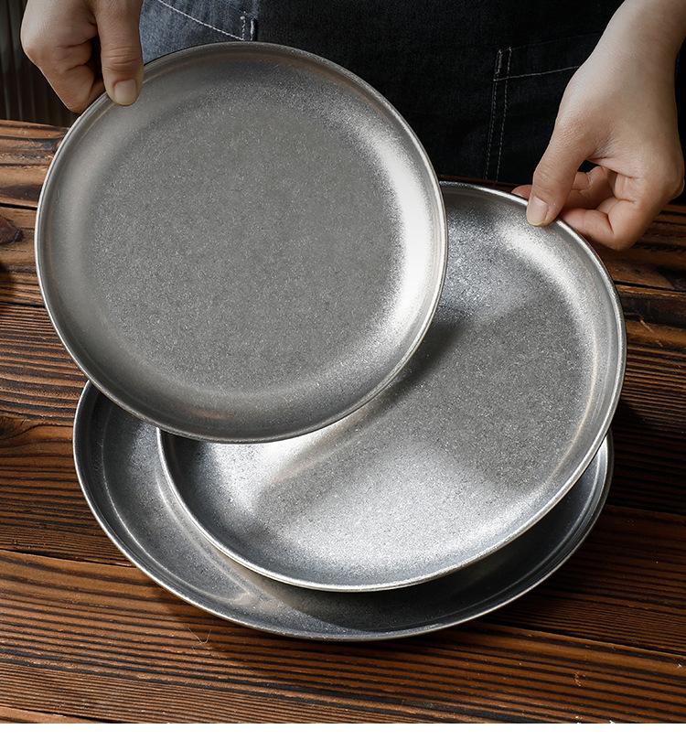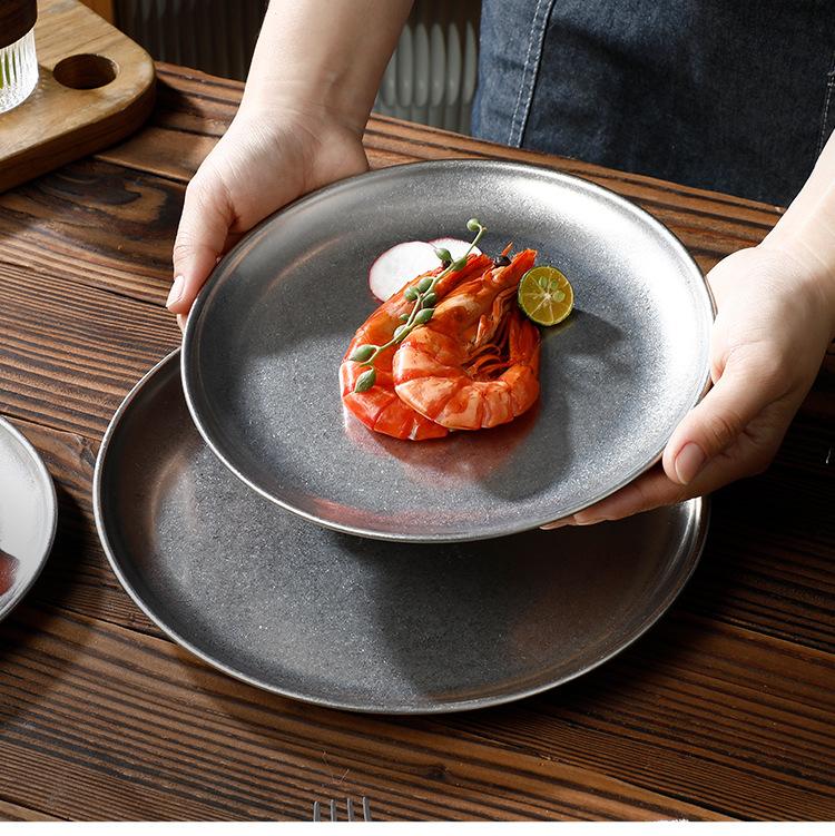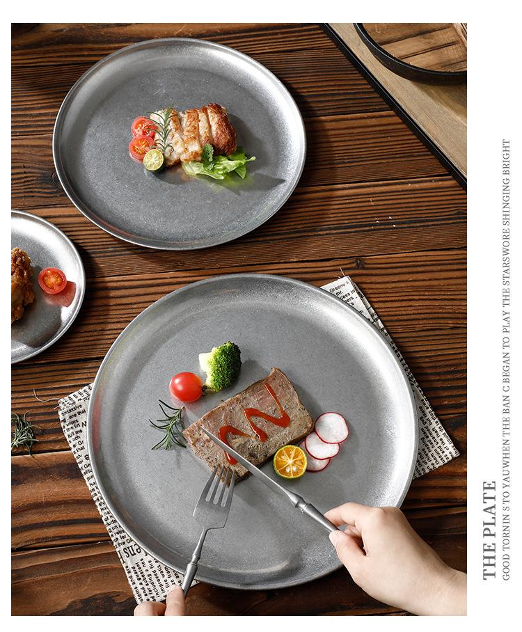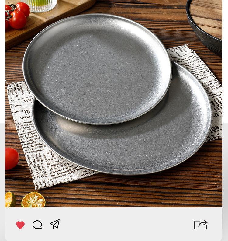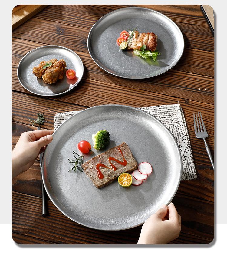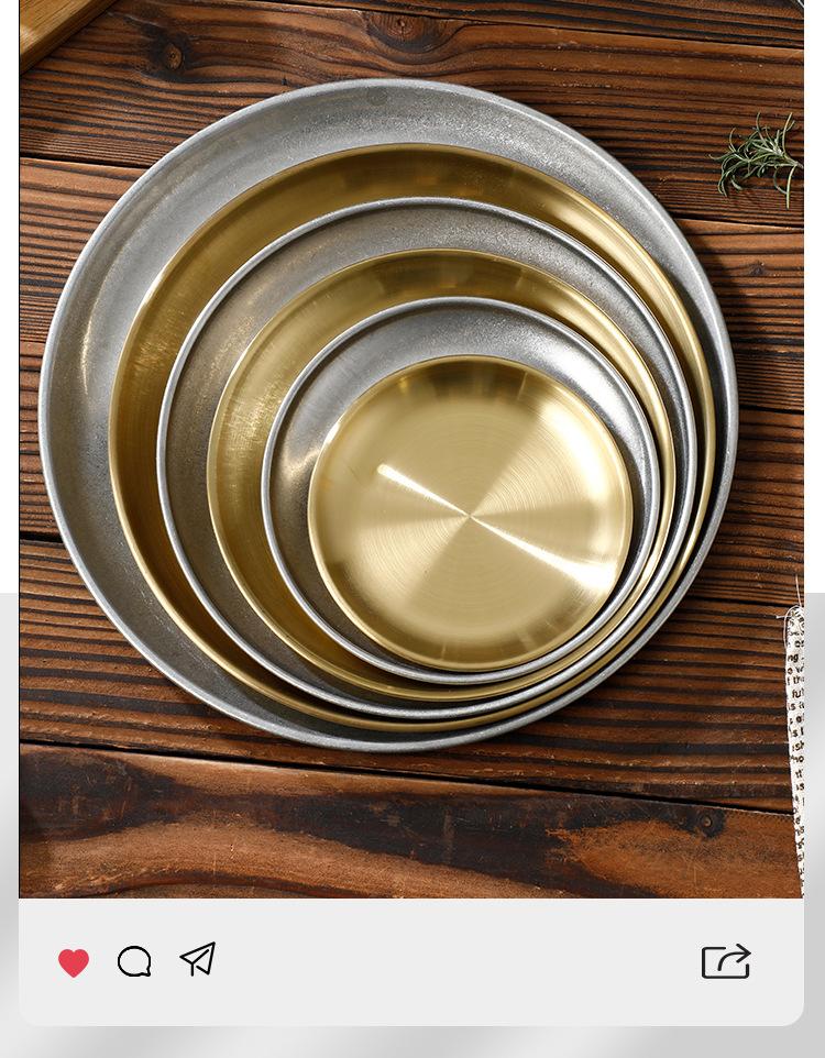 Plato de Acero Inoxidable 304 Disco para Barbacoa Coreana Plato de Acero Inoxidable Bandeja Plato para Bistec Fruta Postre Plato para Huesos Plato para Cena