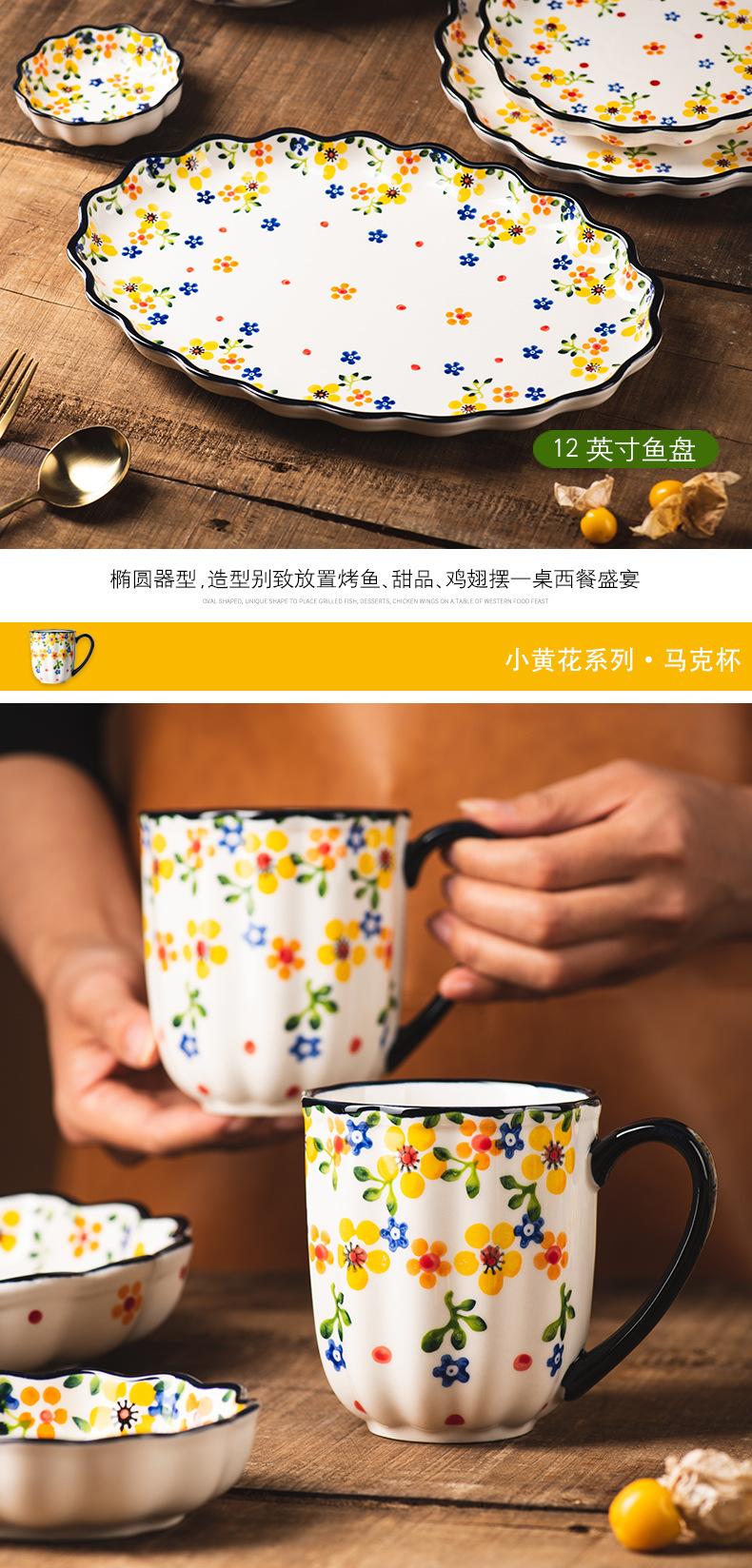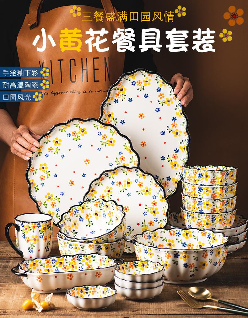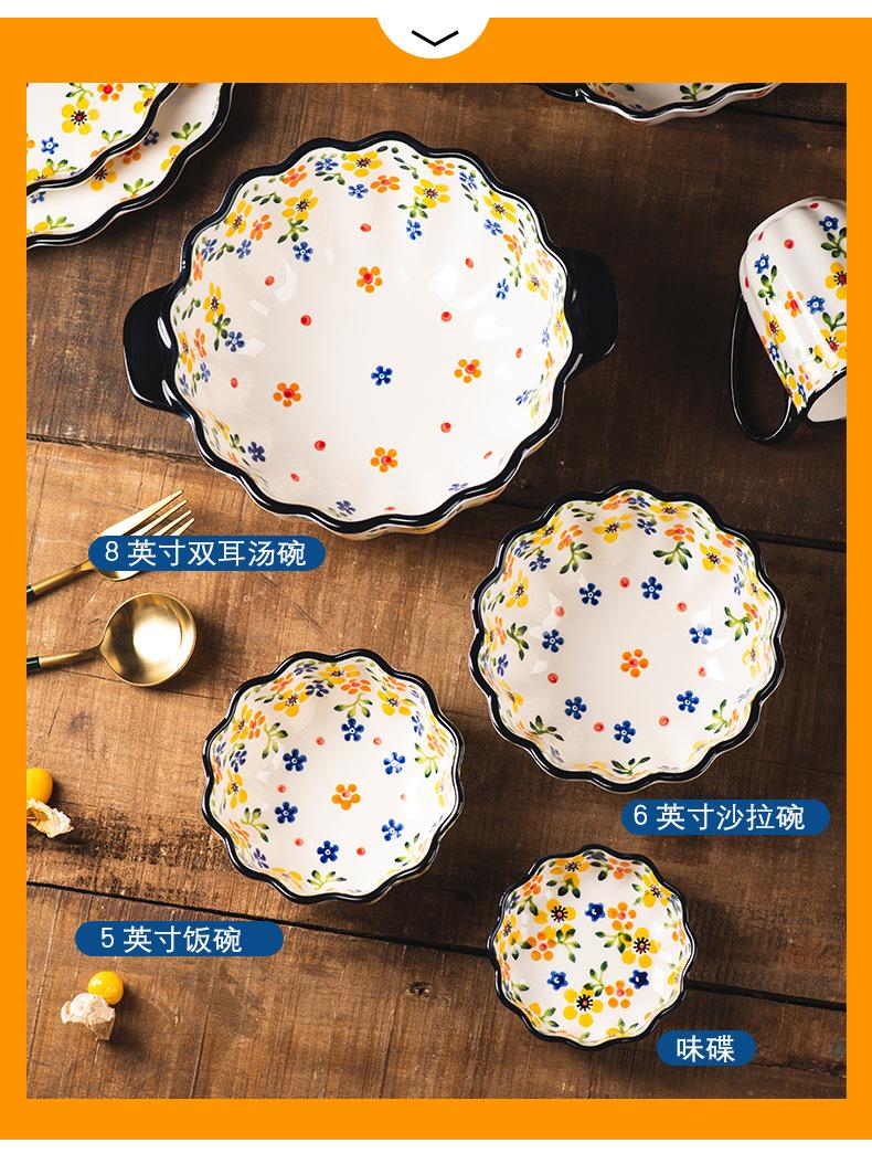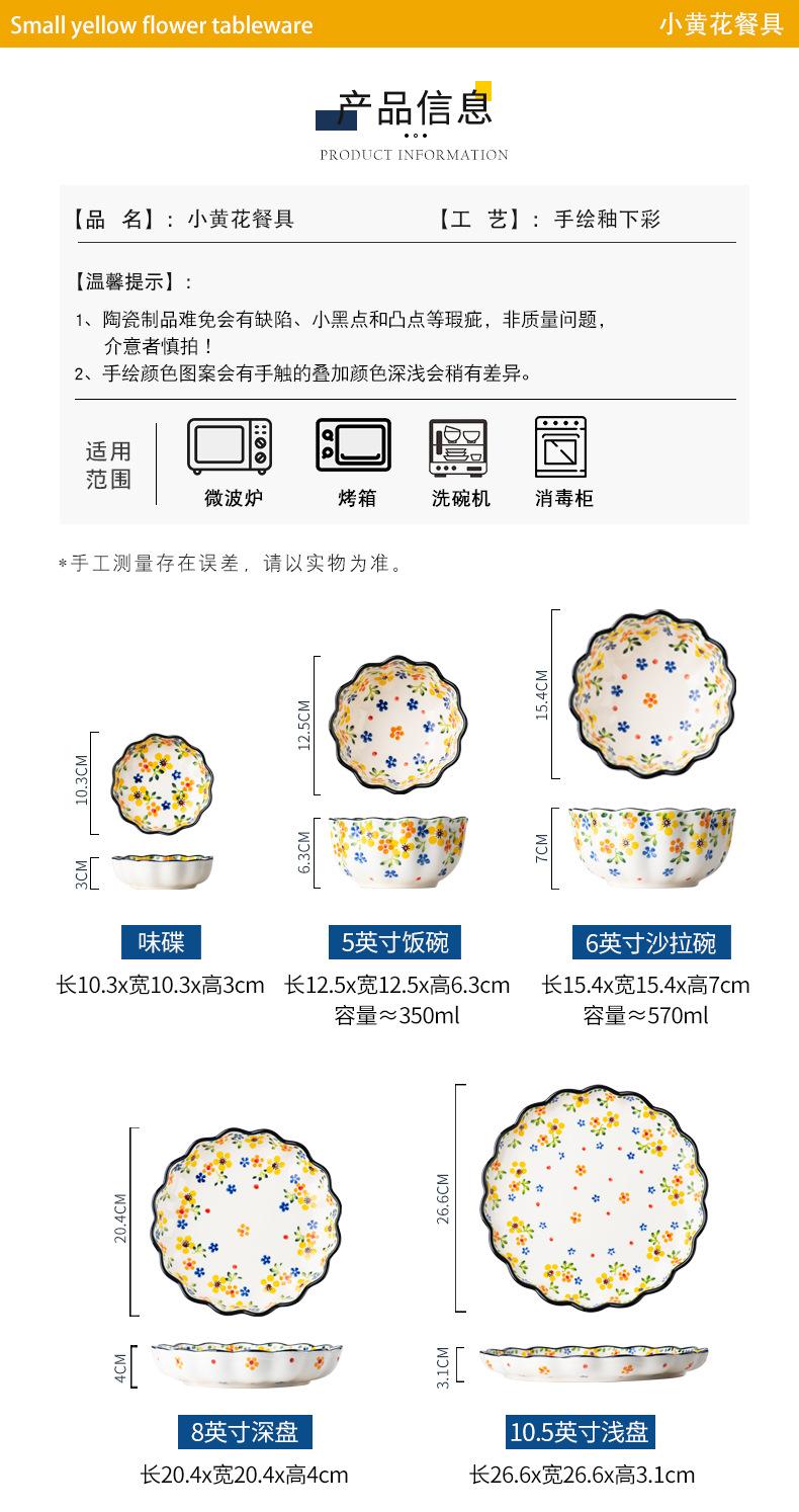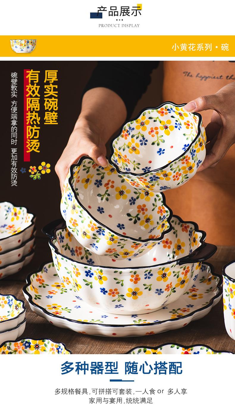 Small yellow flower 5-inch Rice Bowl, Small yellow flower flavor dish, Small yellow flower spoon, Small yellow...