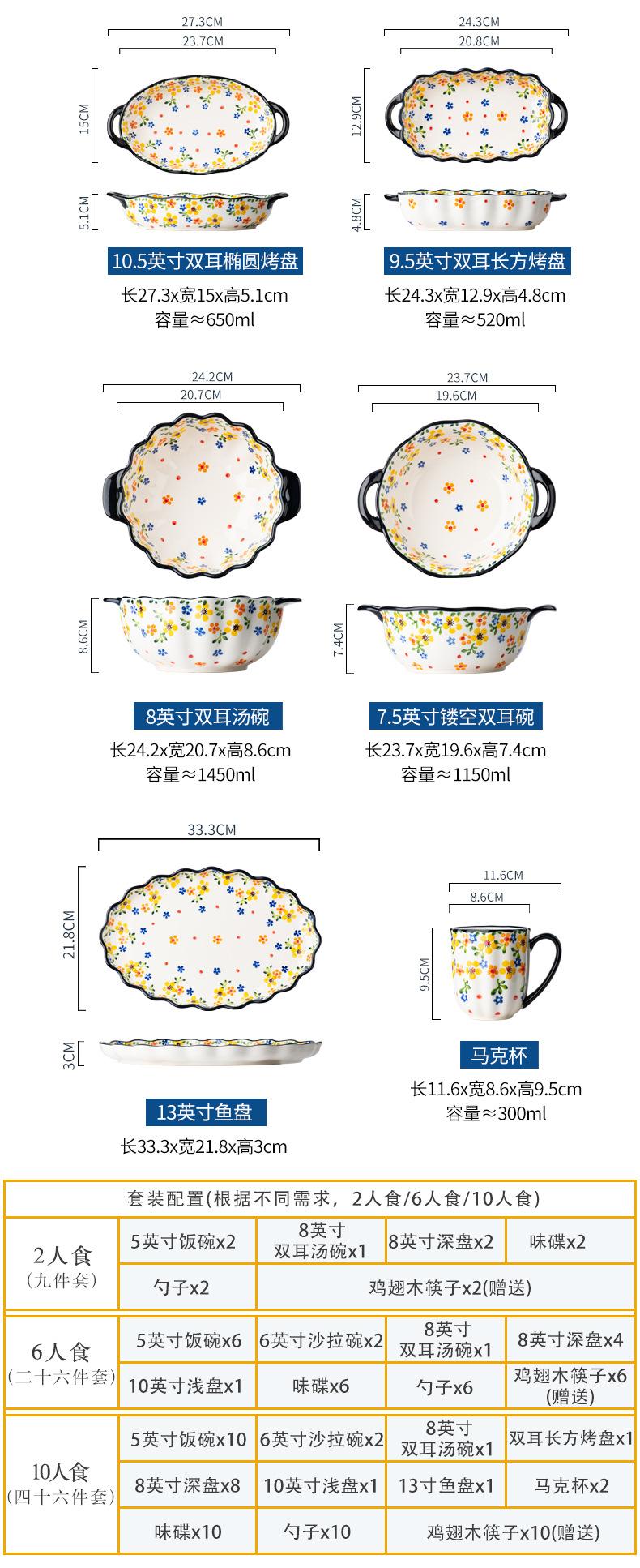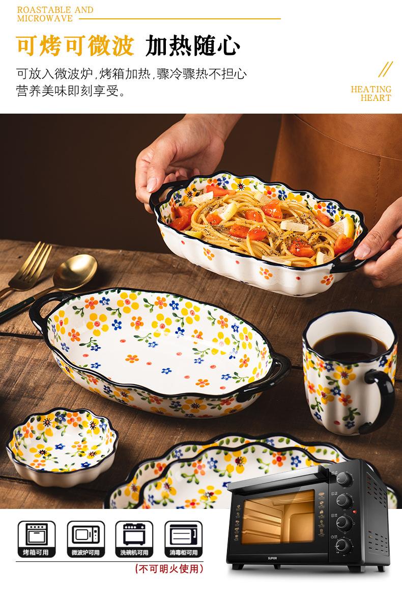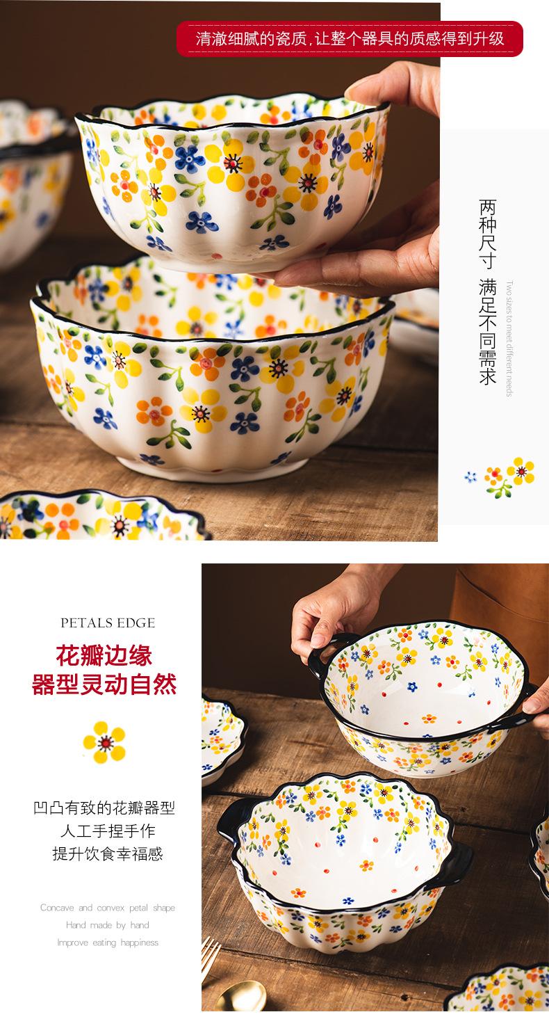Juego de plato tazón hogar cerámica Amazon vajilla plato creativo plato tazón de arroz celebridad de internet plato de doble asa tazón de sopa tazón para fideos
