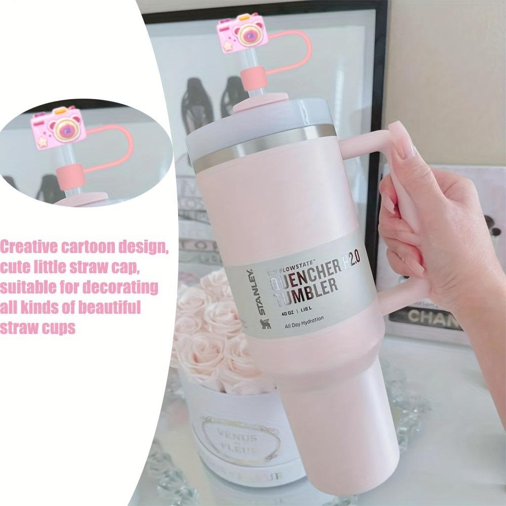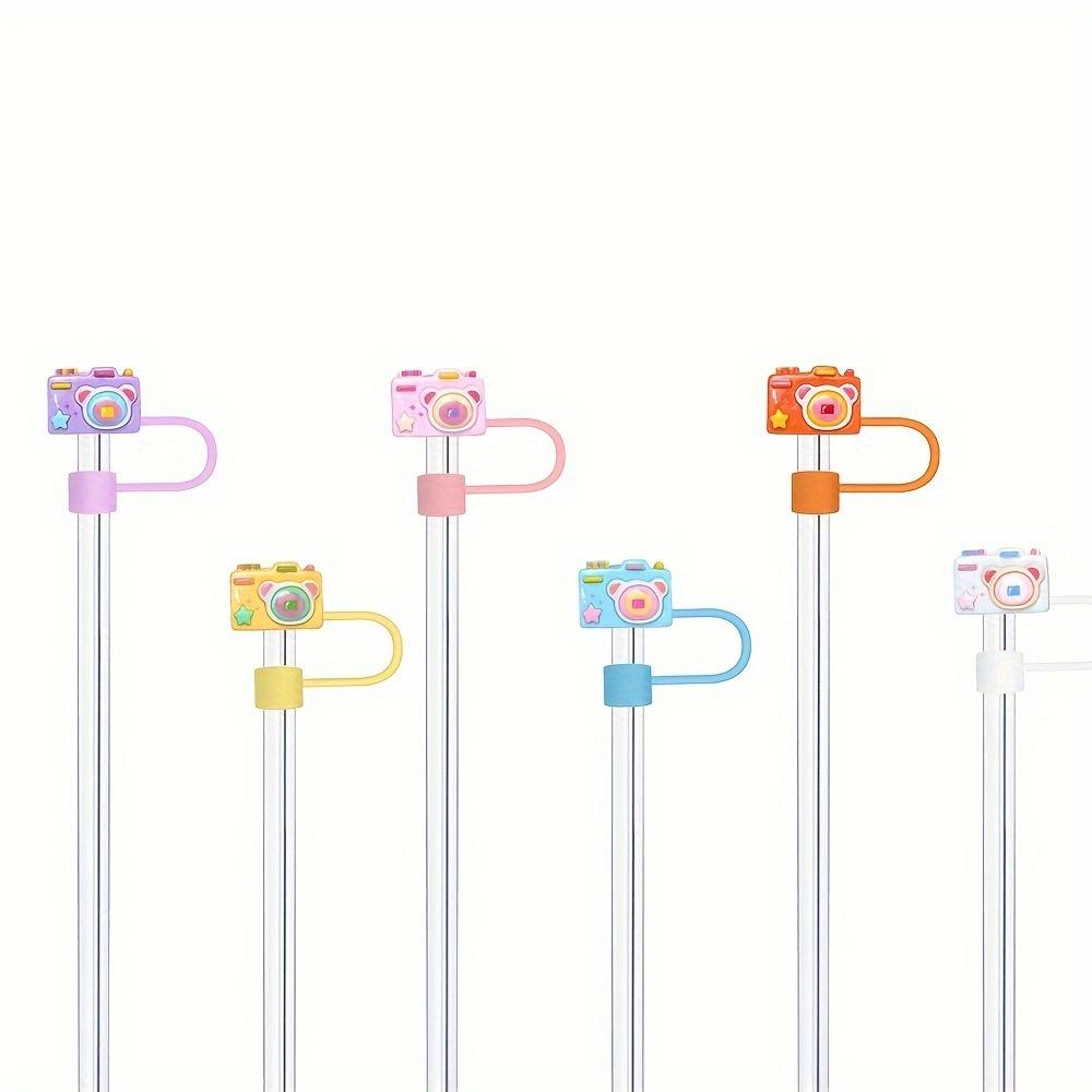 Cubierta de Paja con Patrón de Cámara Resina Colorida Reutilizable Linda Cubierta para Paja para Beber para 0.4