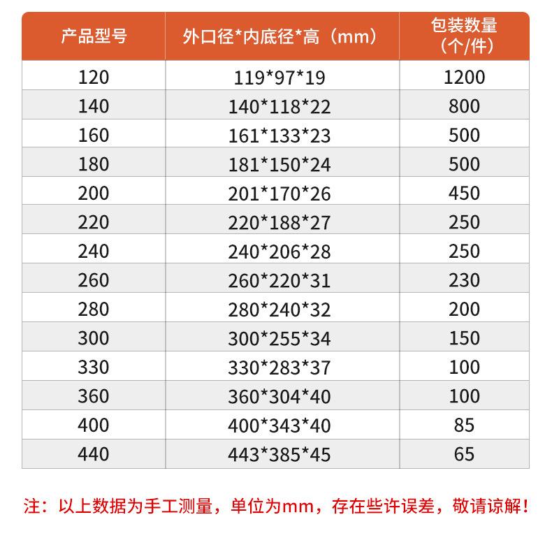 160 (outer diameter 161*inner bottom diameter 133*height 23mm) 500 pieces per piece