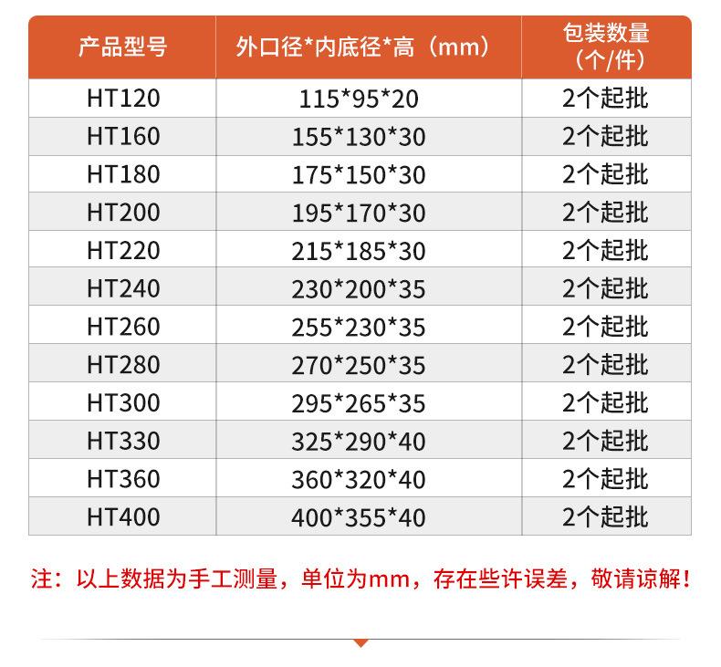 HT120 (outer diameter 115*inner bottom diameter 95*height 20mm) minimum batch of 2 pieces, HT160 (outer diamet...