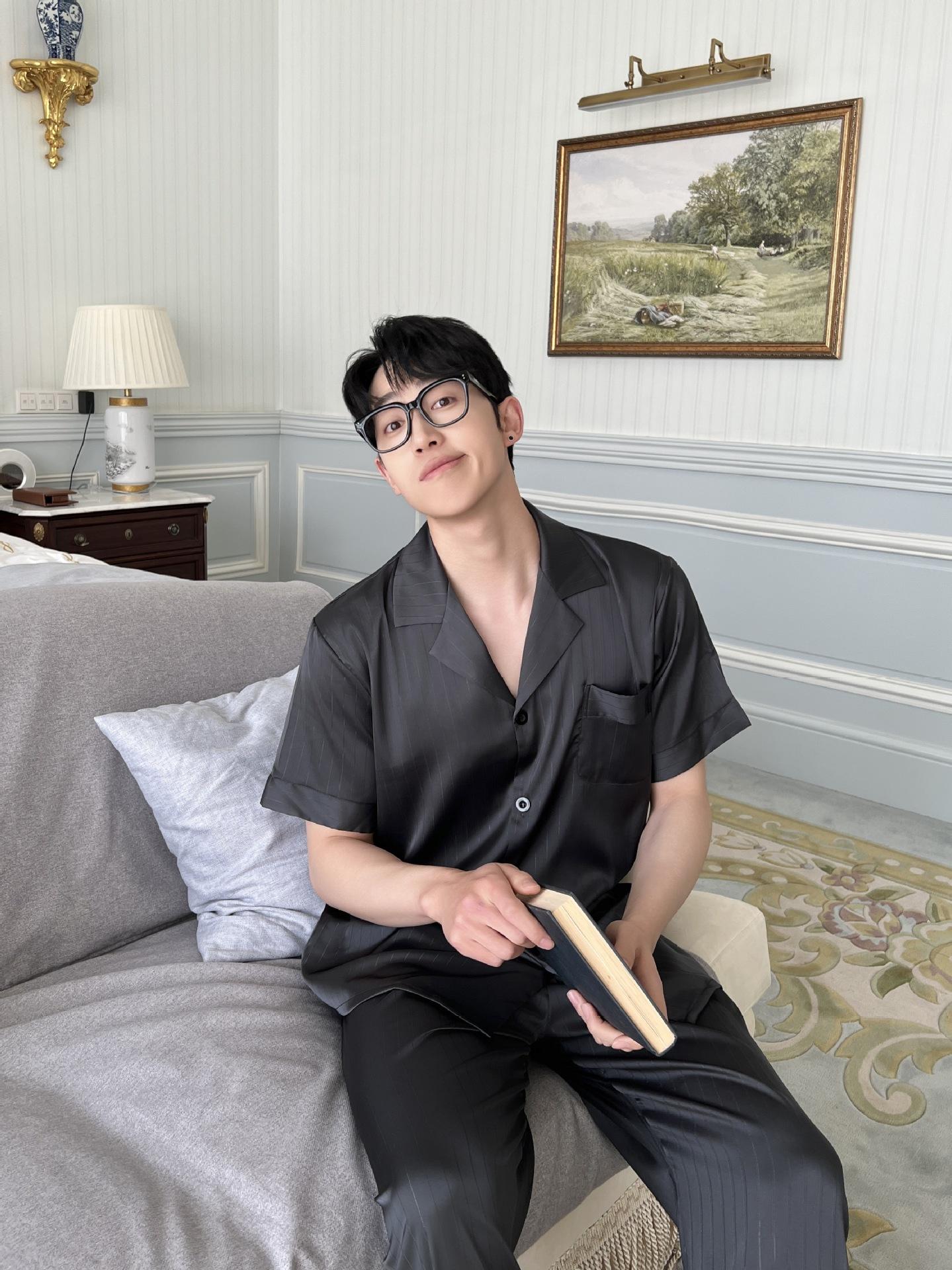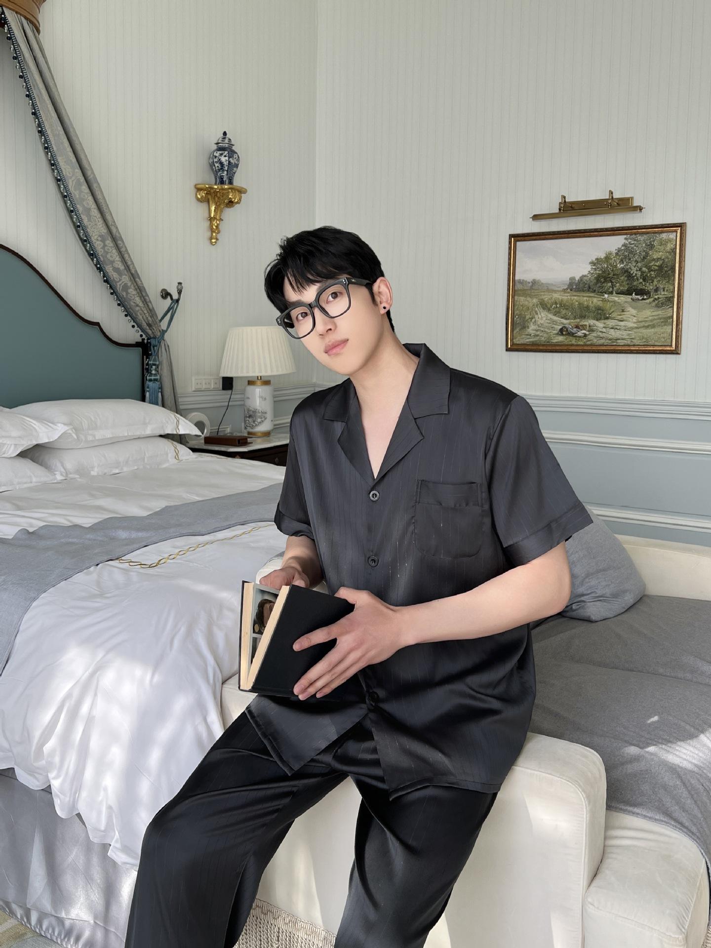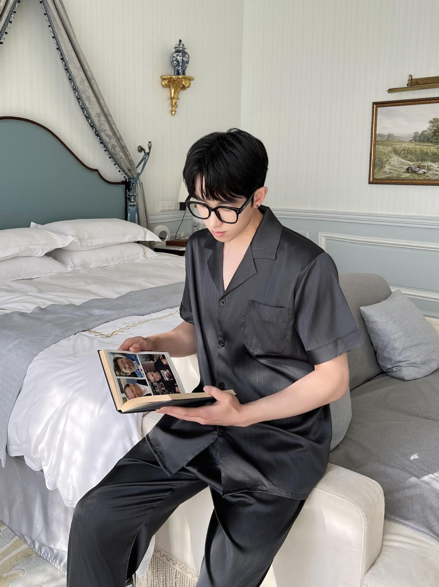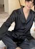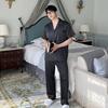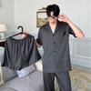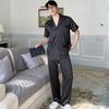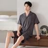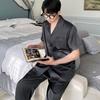 Primavera y Verano Nuevo Pijama de Seda Plateada para Hombre Manga Corta Cárdigan Fino Solapa Alta Gama Sencillo Casual Talla Extra Ropa para el Hogar