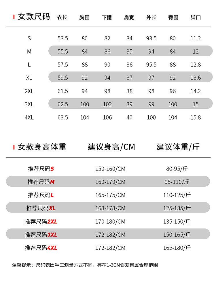 Men's black top + trousers, Women's black top + pants, Men's gray top + pants, Women's gray top + pants, Men's...