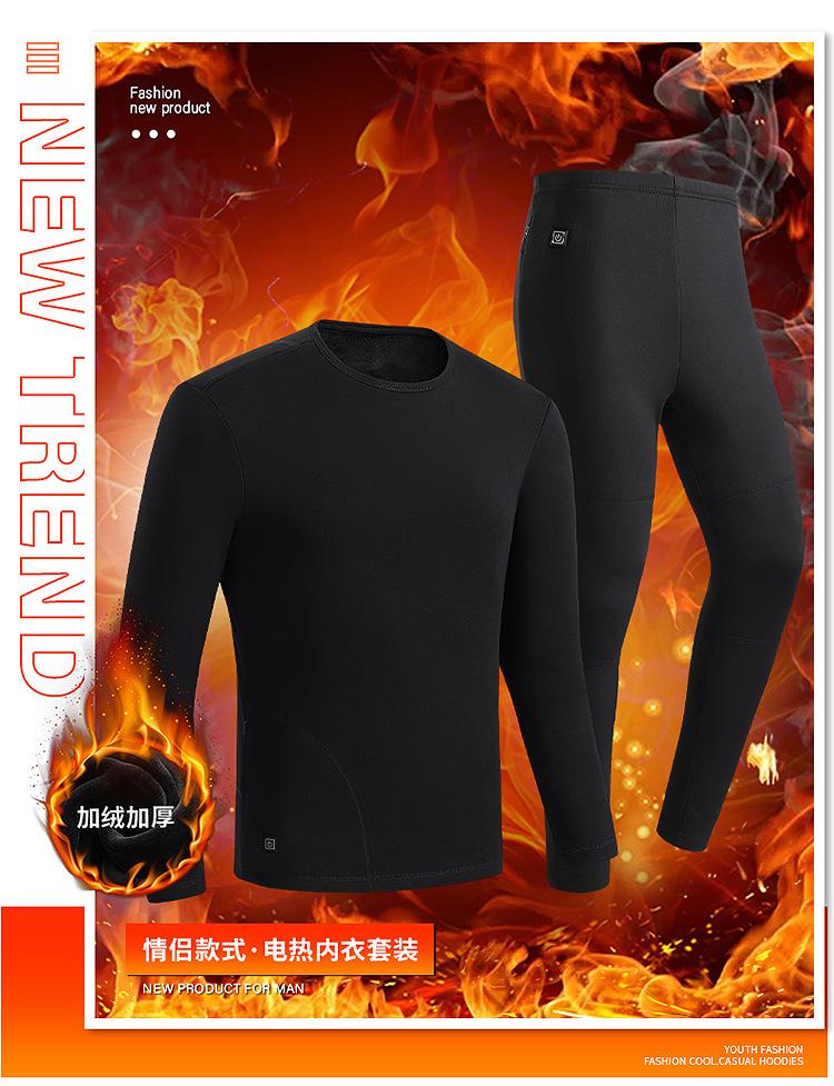Conjunto Inteligente de Calentamiento para Otoño e Invierno Forro Polar Engrosado USB Ropa Interior Cálida Pantalones Ropa de Hogar Estilo Pareja