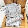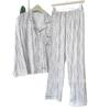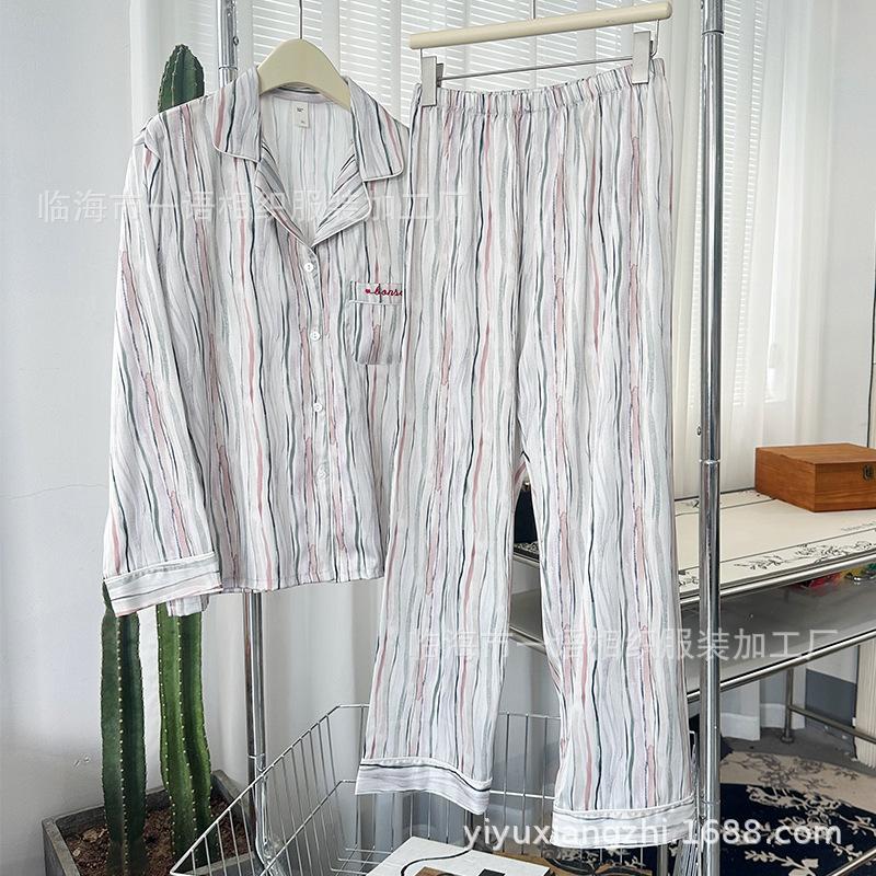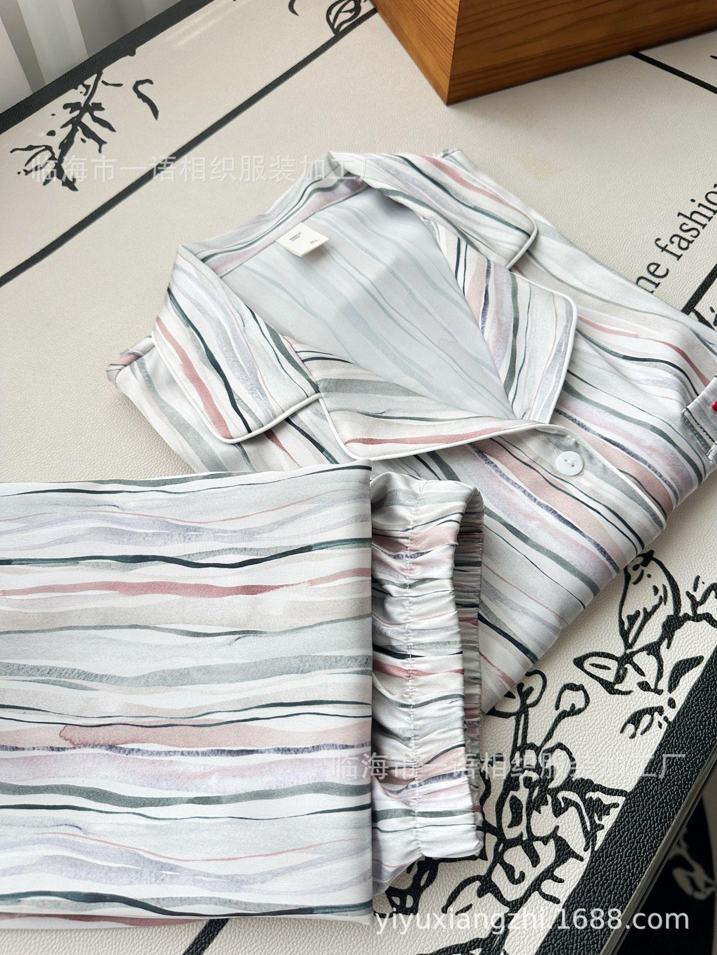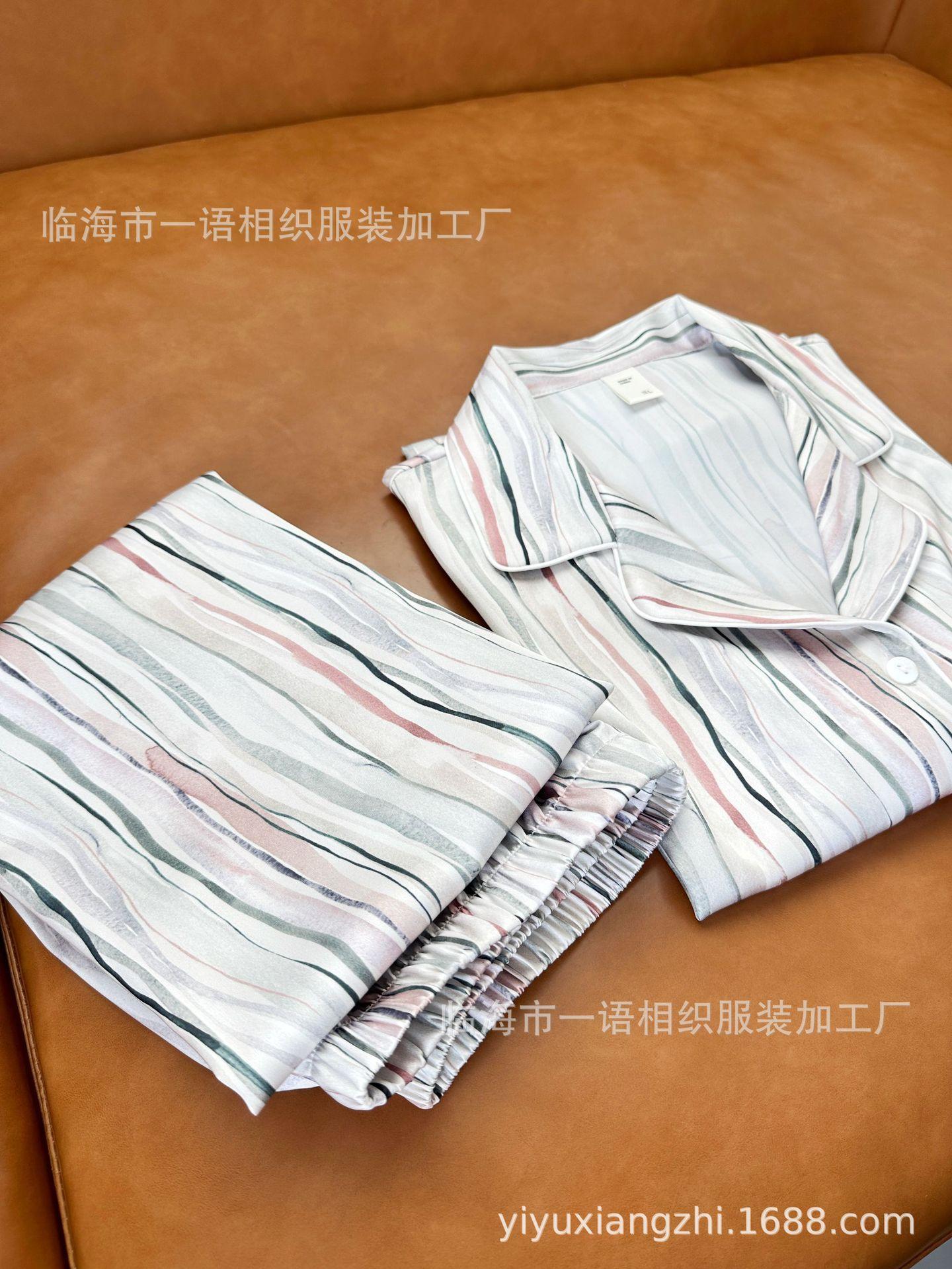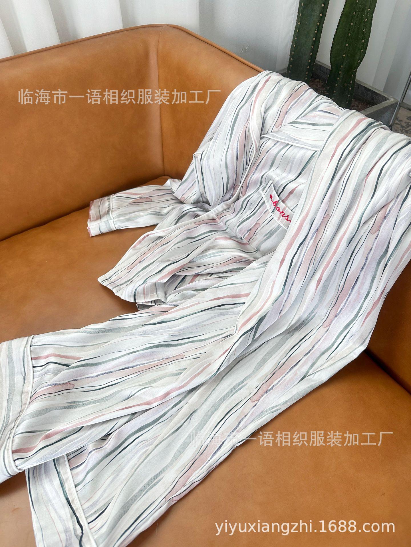 2025 Otoño Acuarela Raya Bordado Pijama Seda de Hielo para Mujer Solapa Delgado Damas Conjunto de Ropa para el Hogar Una Pieza Venta al por Mayor