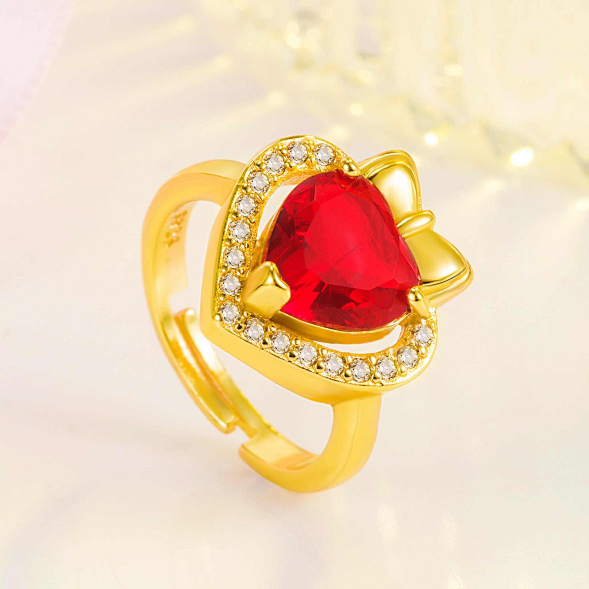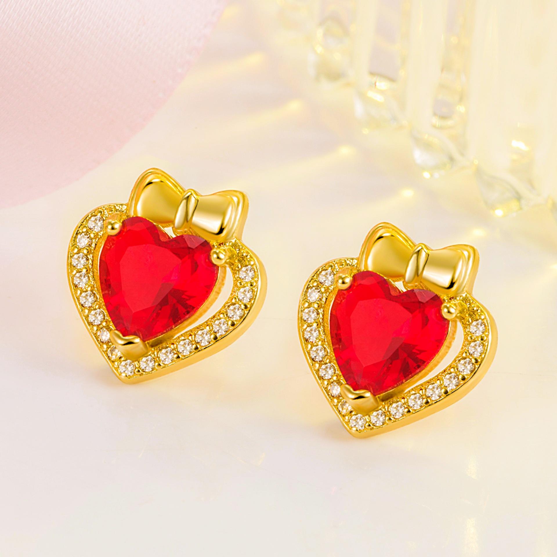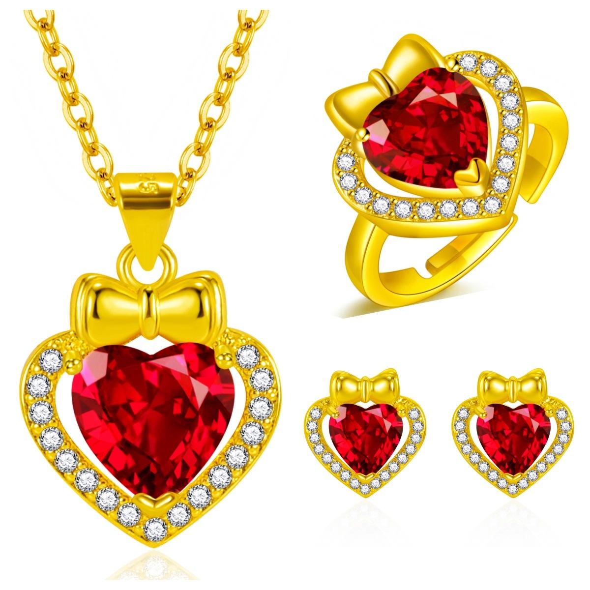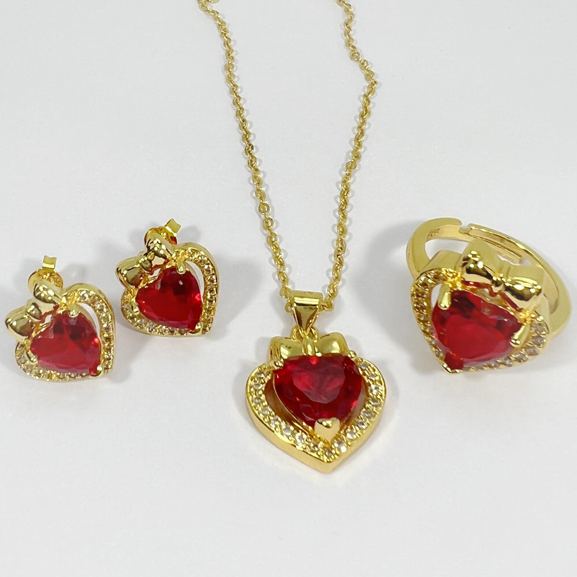 Conjunto de joyas con forma de corazón de melocotón, anillo, pendientes y collar con colgante de rubí, princesa de Escape, chapado en oro
