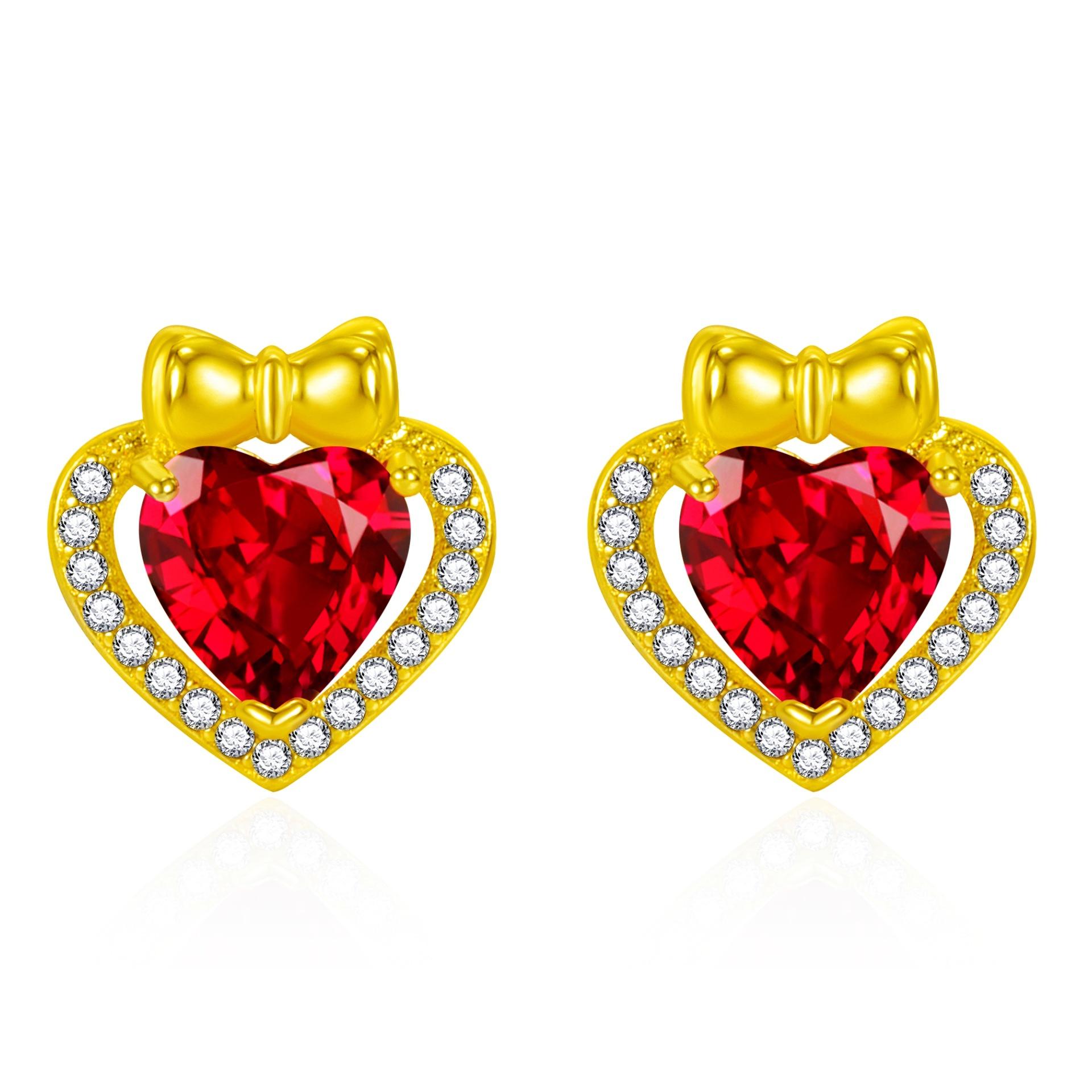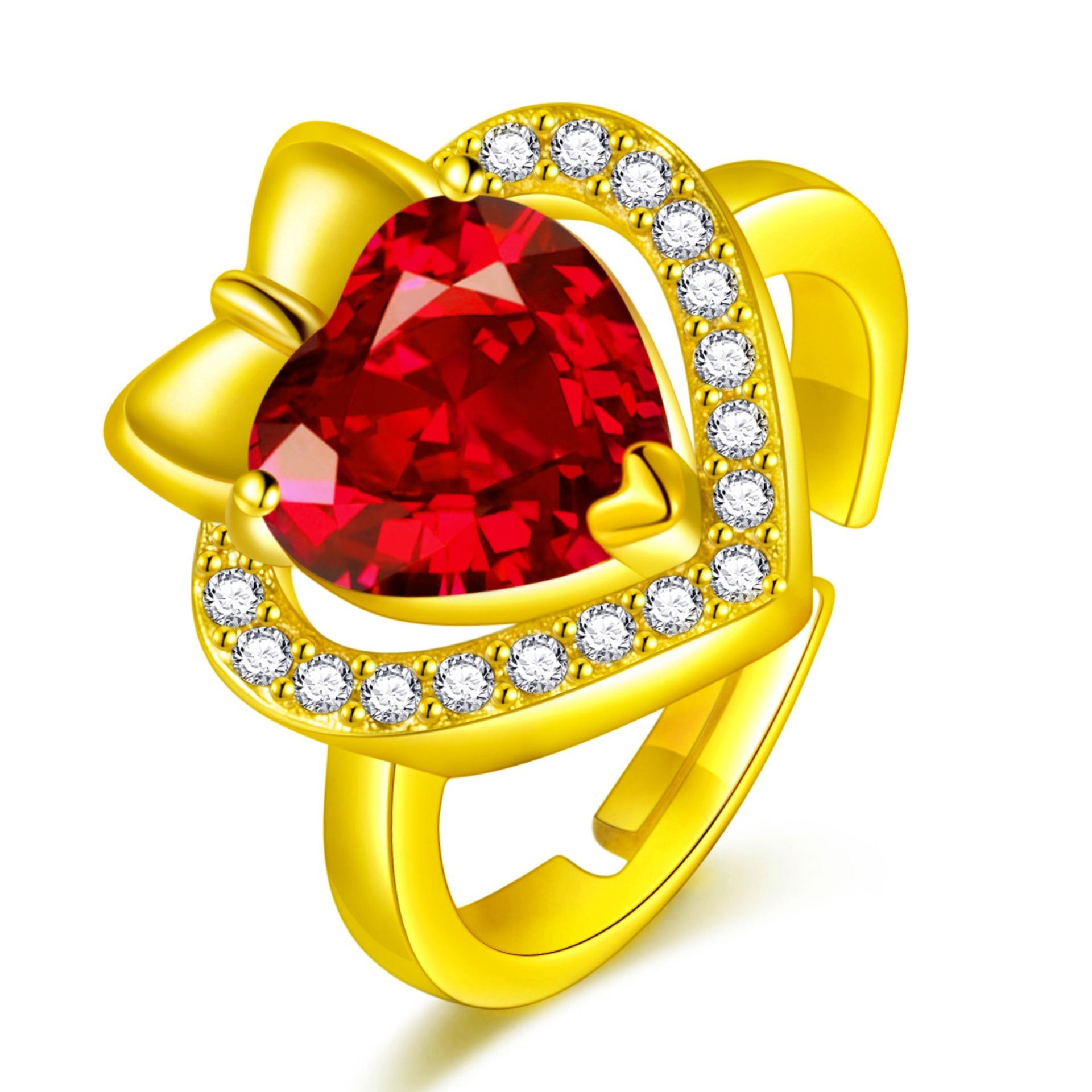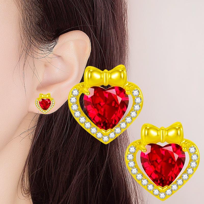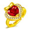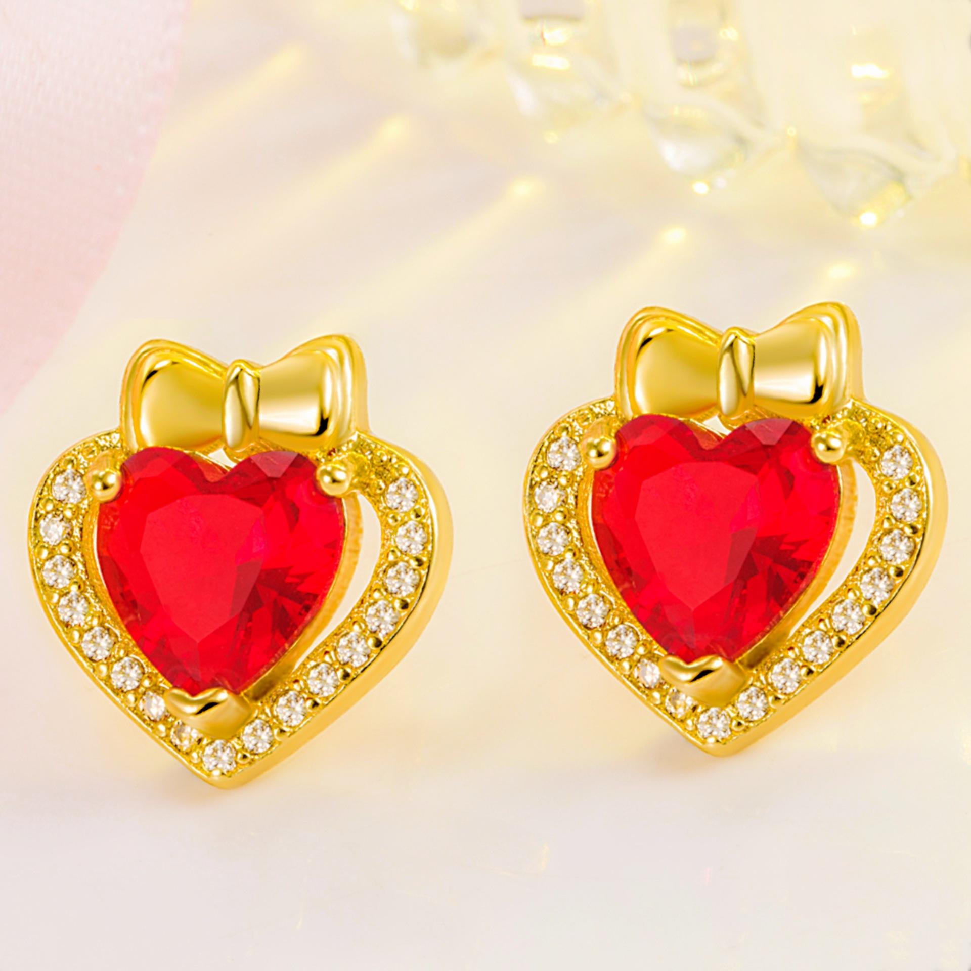 Conjunto de joyas con forma de corazón de melocotón, anillo, pendientes y collar con colgante de rubí, princesa de Escape, chapado en oro
