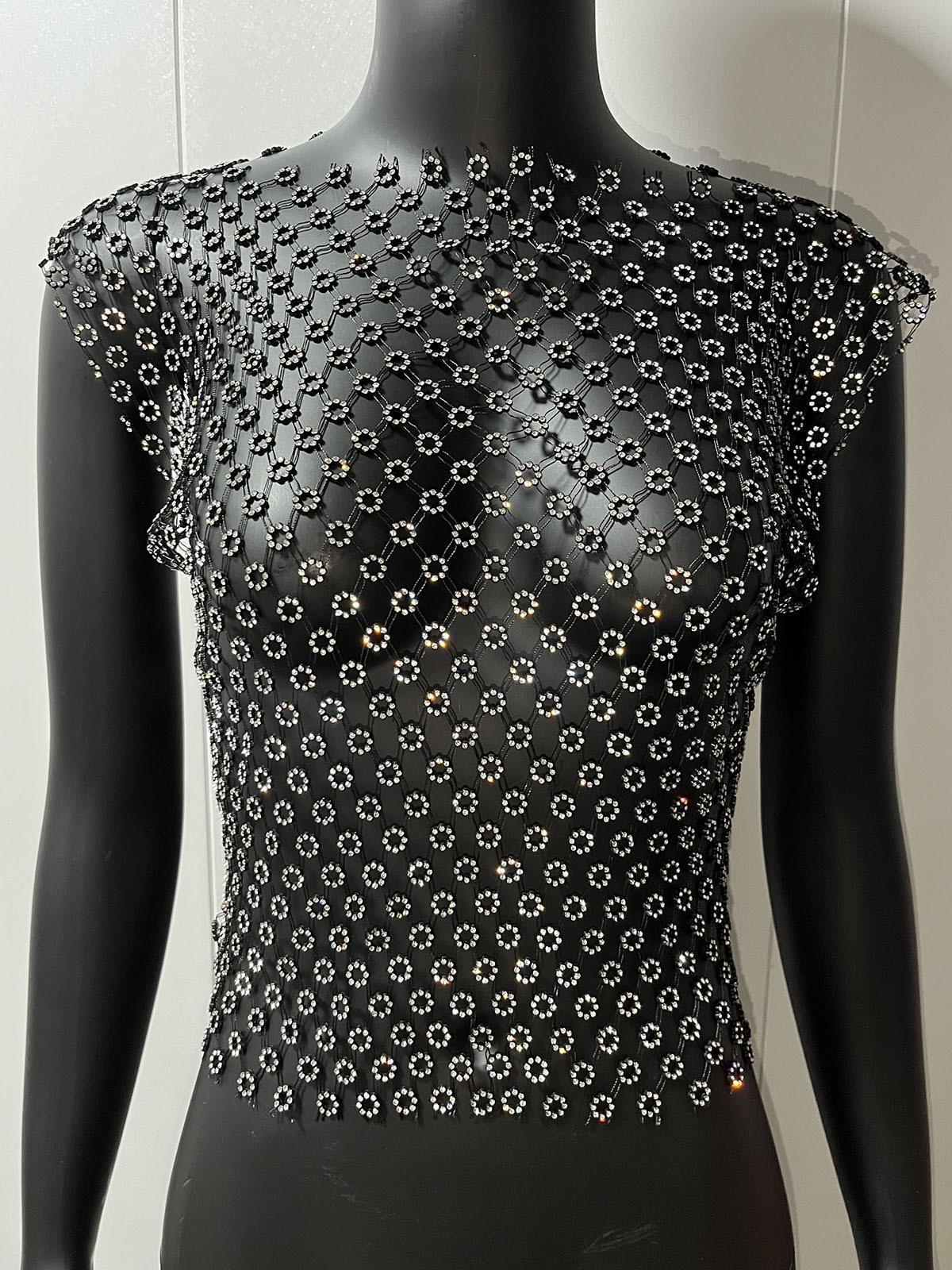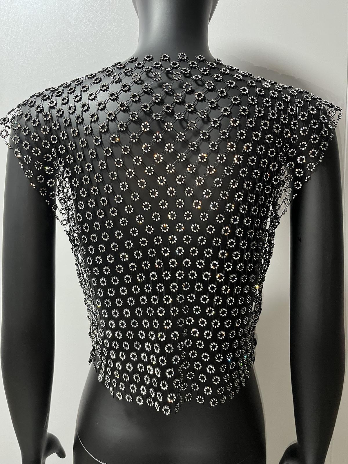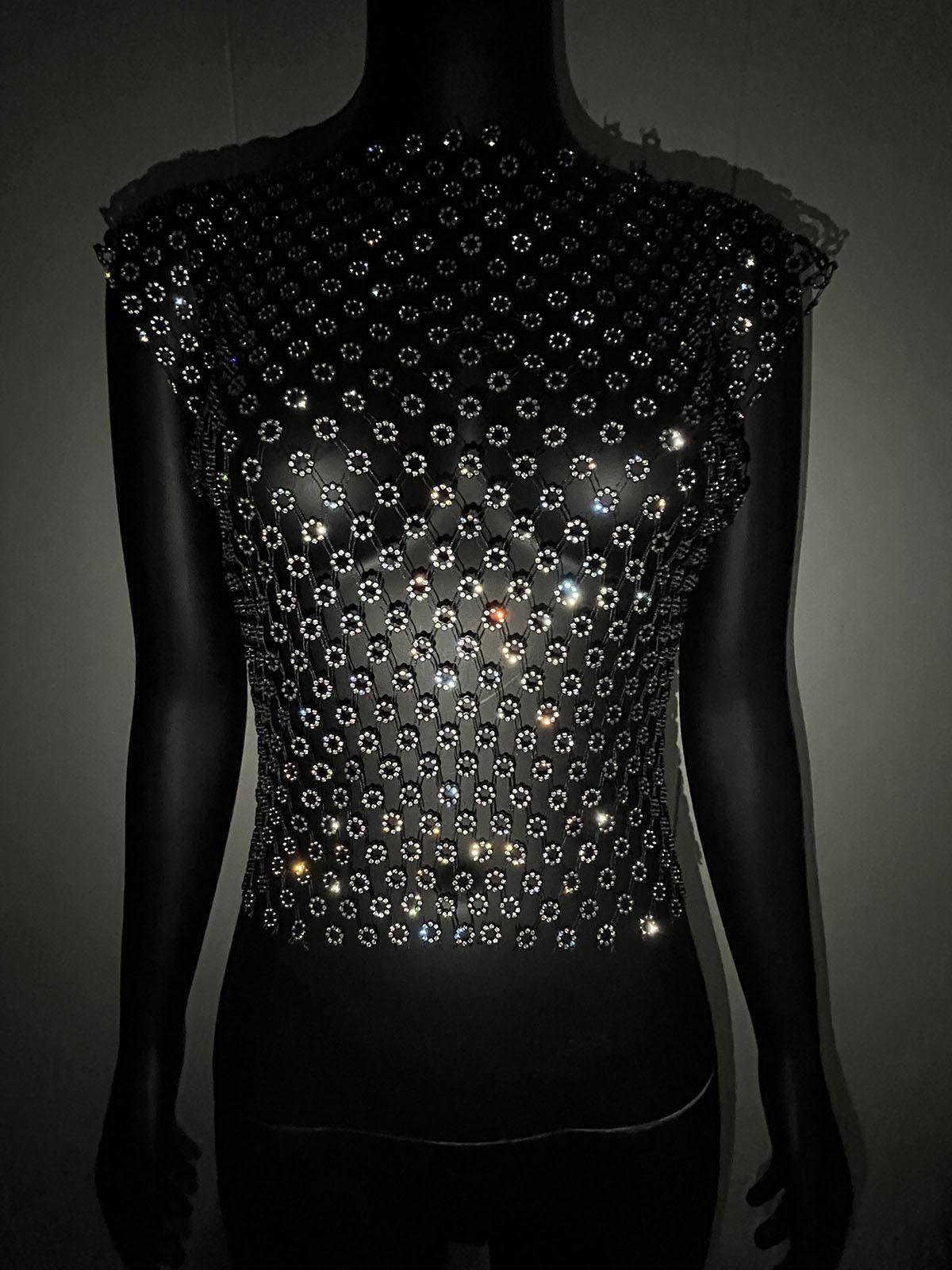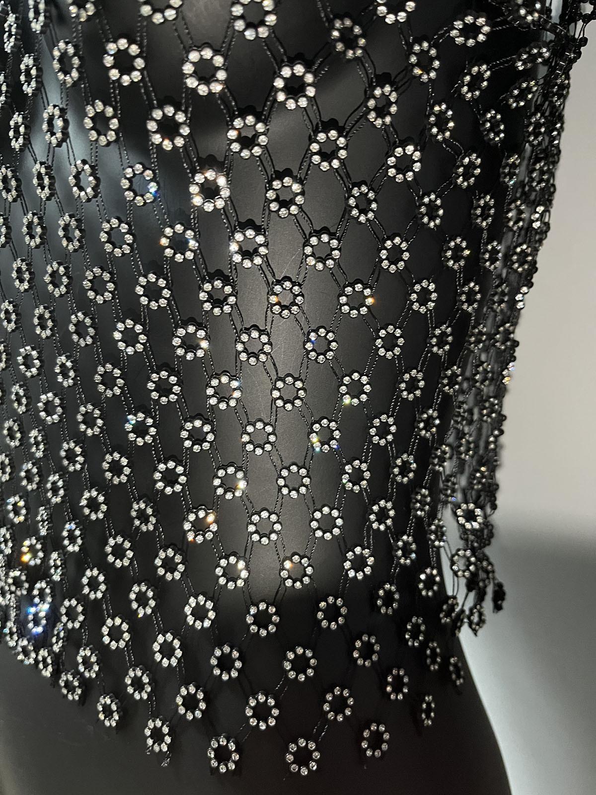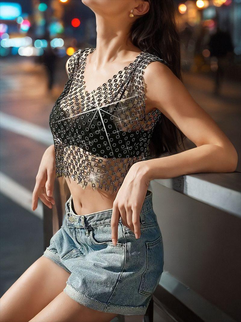 Chaleco Sexy Hueco con Pedrería de Nuevo Estilo de Venta Caliente para Comercio Exterior Transfronterizo Top Sexy sin Mangas con Tirantes y Ombligo Descubierto