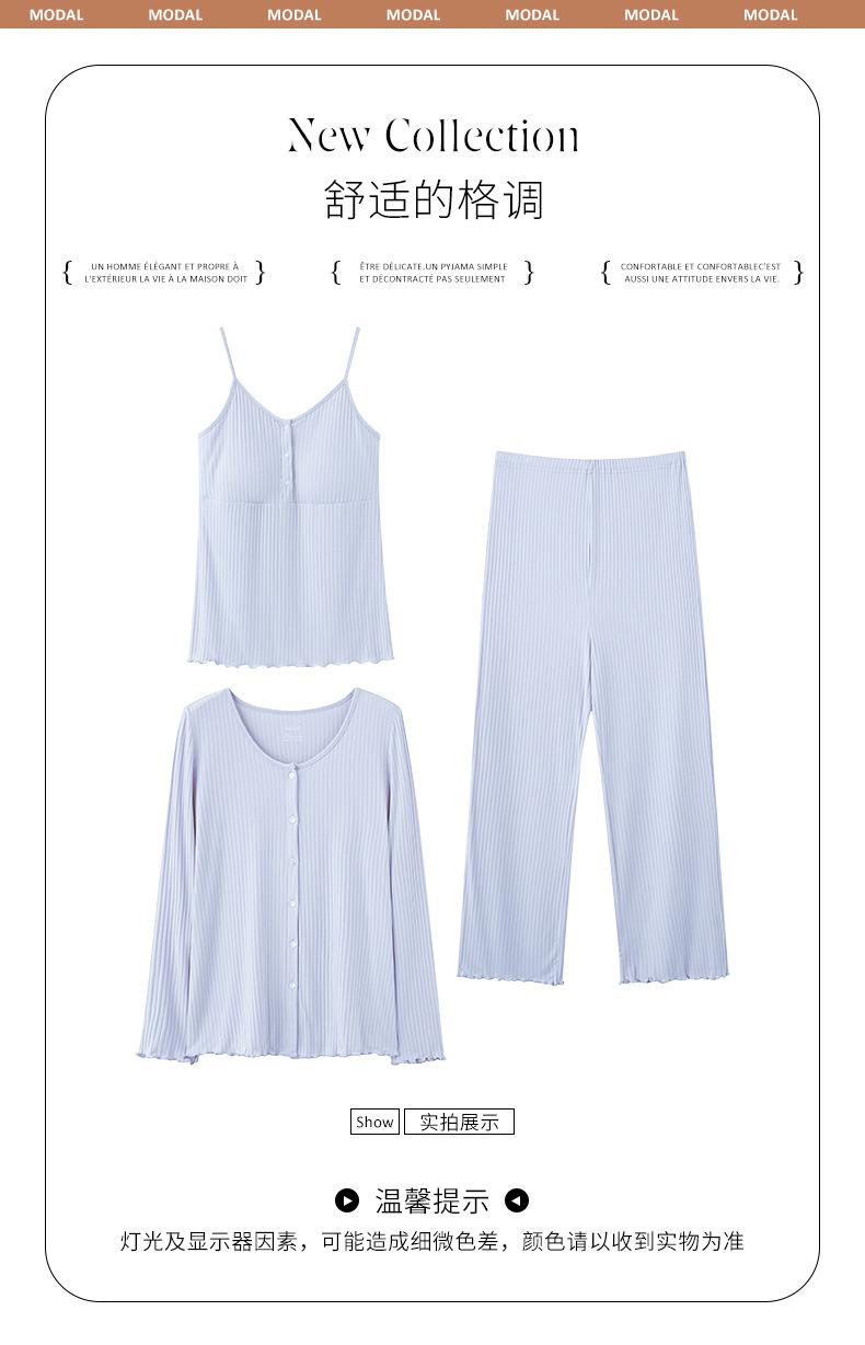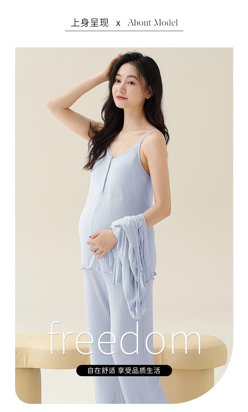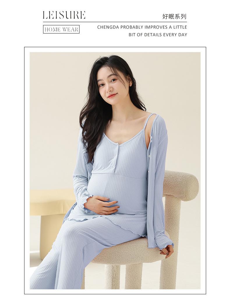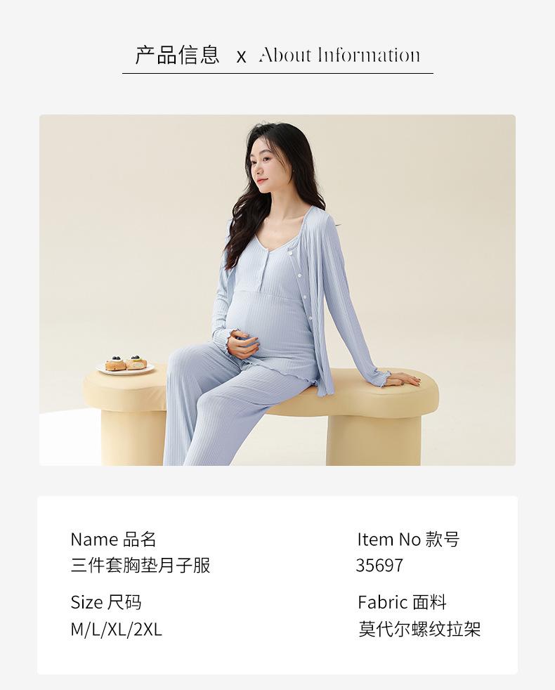 Xi Yue Nuevo Estilo Otoño e Invierno con Almohadilla en el Pecho Ropa de Maternidad Modal Pijama de Tres Piezas para Mujeres Embarazadas Transpirable para Lactancia Ropa de Casa