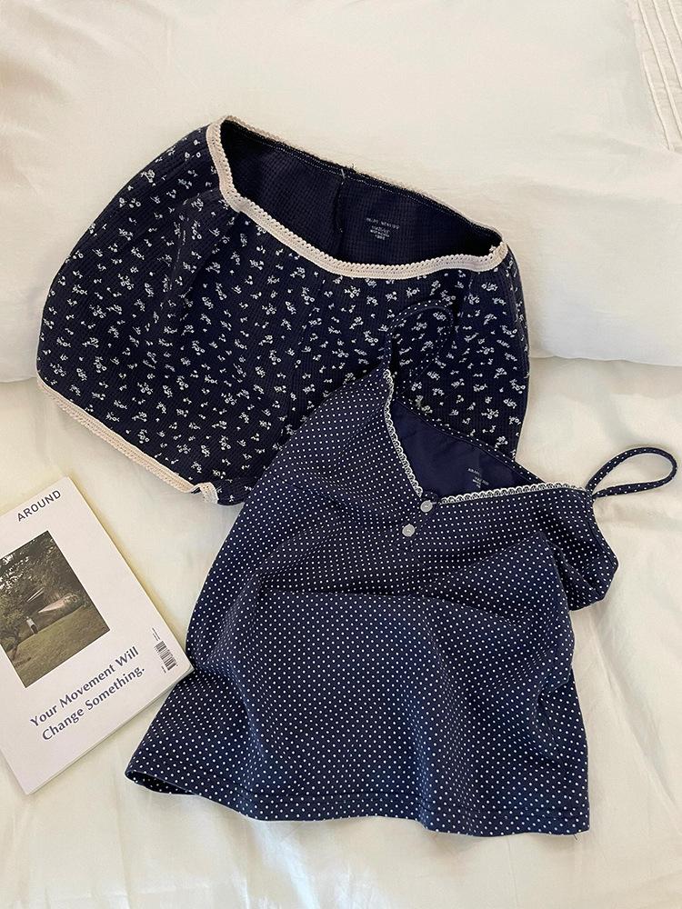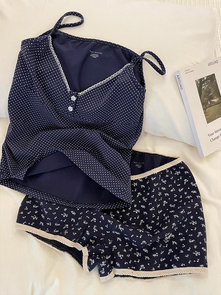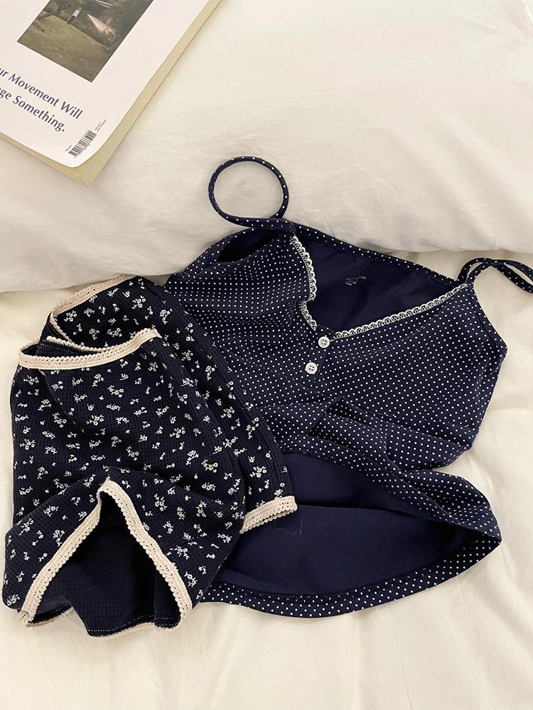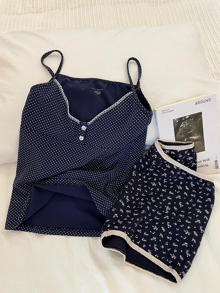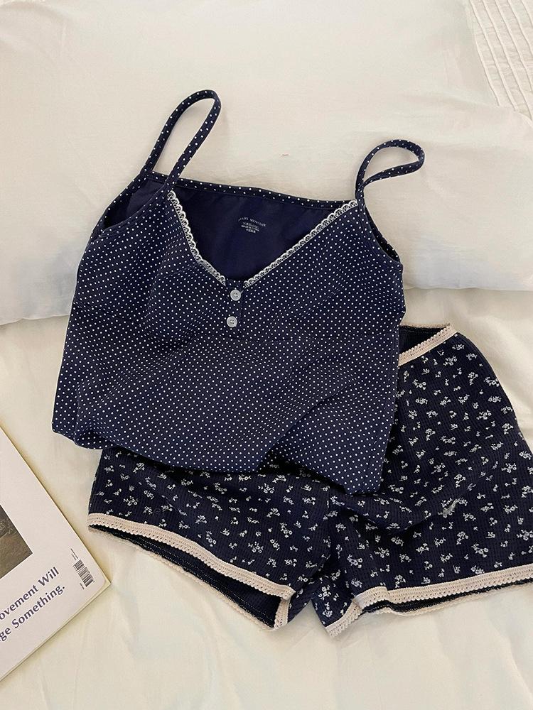 Pijama Dulce de Estilo Coreano con Encaje en el Borde Polo para Mujer Verano Nuevo Tirantes Puros Shorts Traje Ropa de Casa Se Puede Usar para Salir