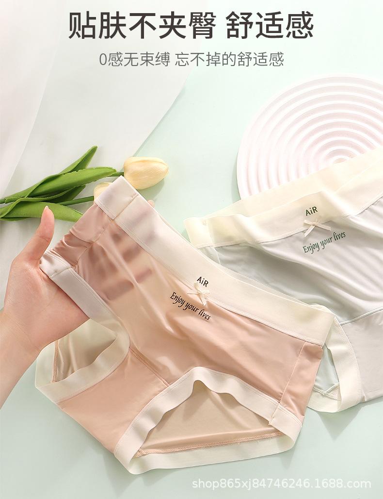 Ropa Interior de Seda de Hielo para Mujer, Estilo Delgado de Verano, Seda de Morera 7A Antibacteriana sin Costuras, Calzones Triángulo de Cintura Media para Niñas, Transpirable y Antibacteriano