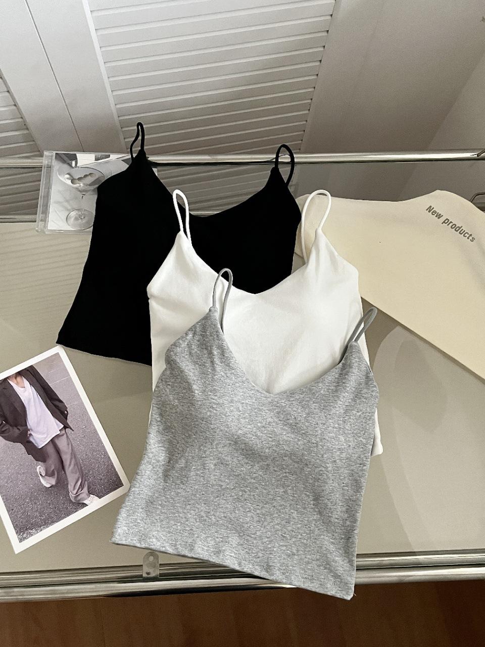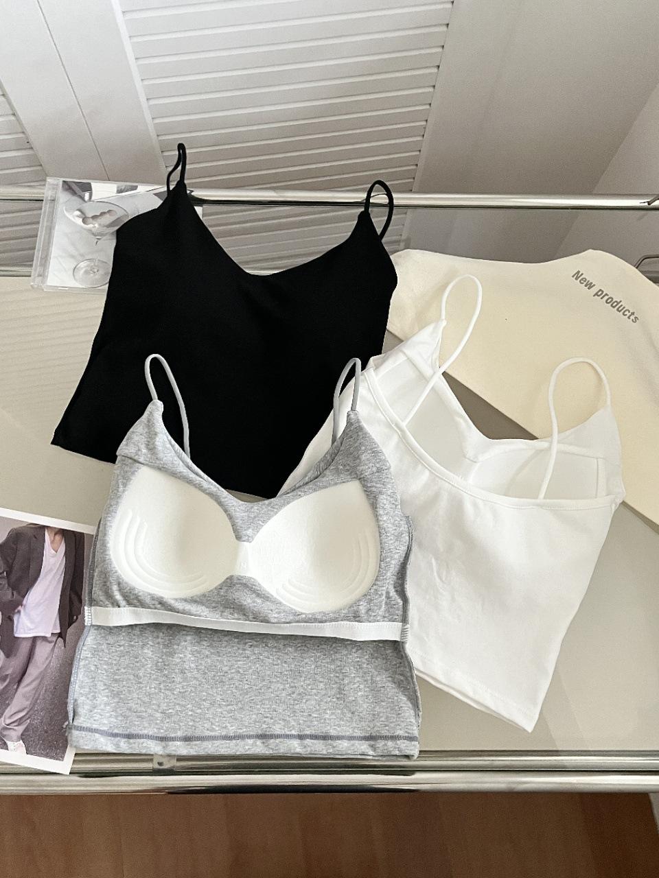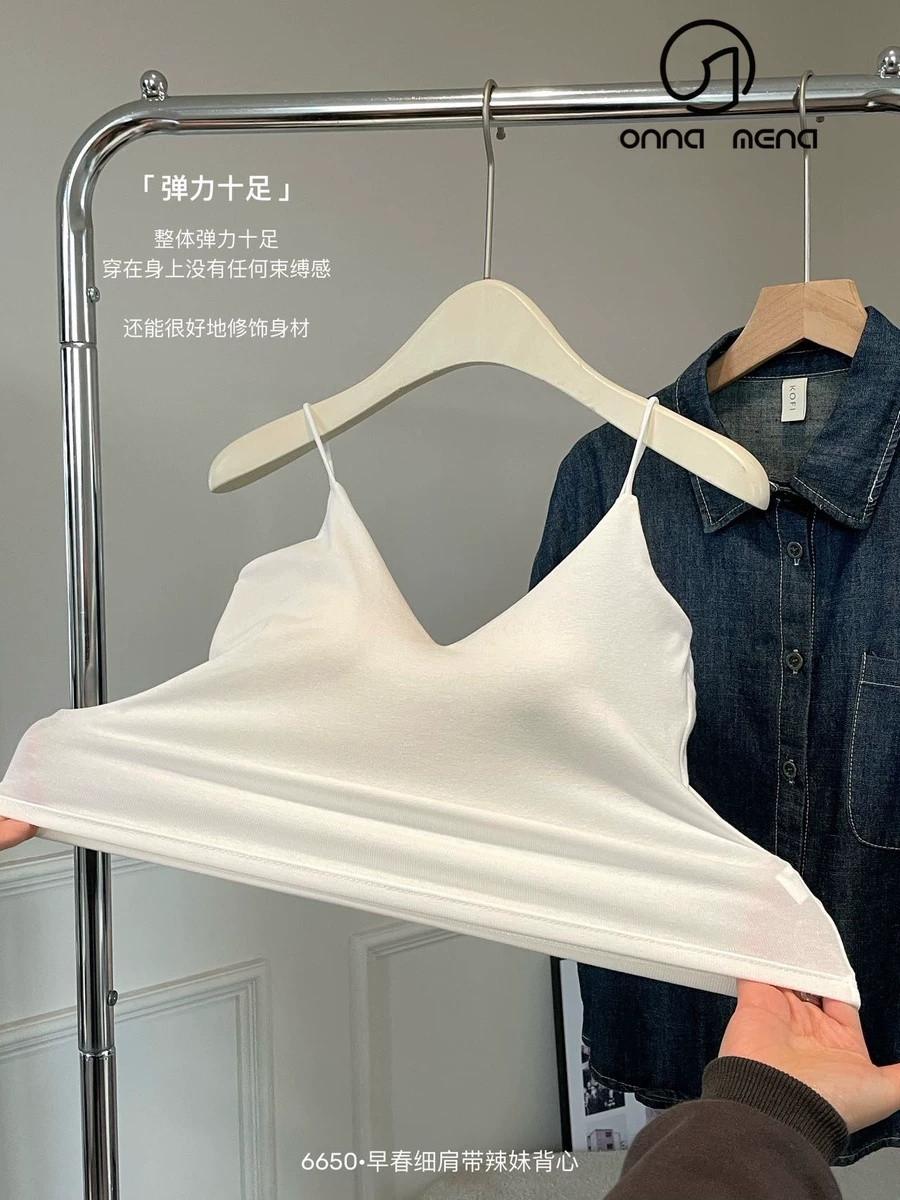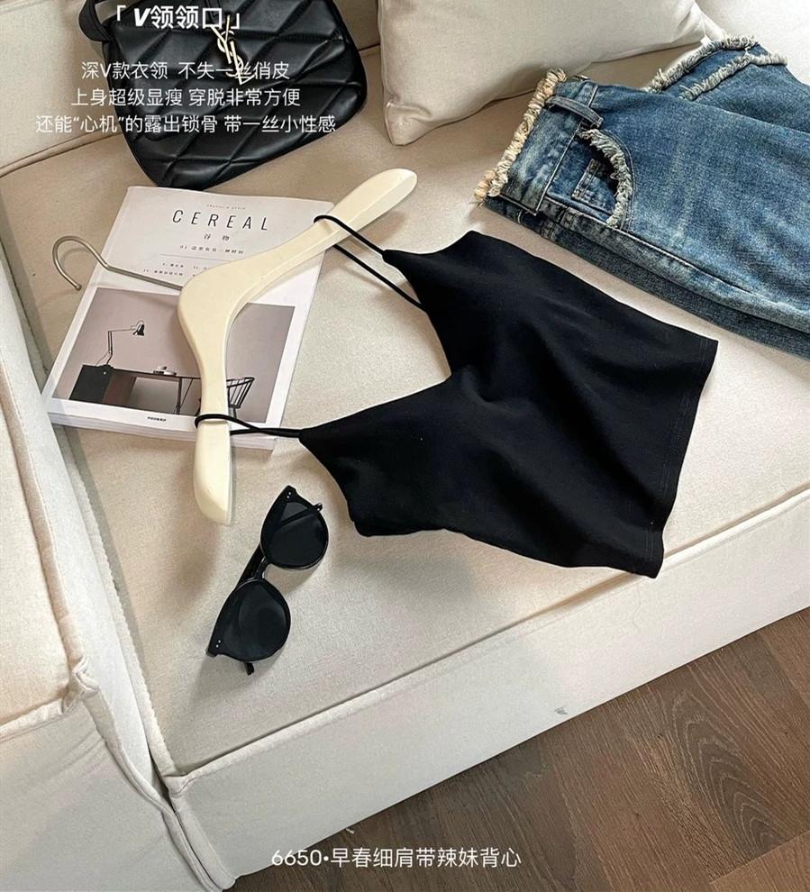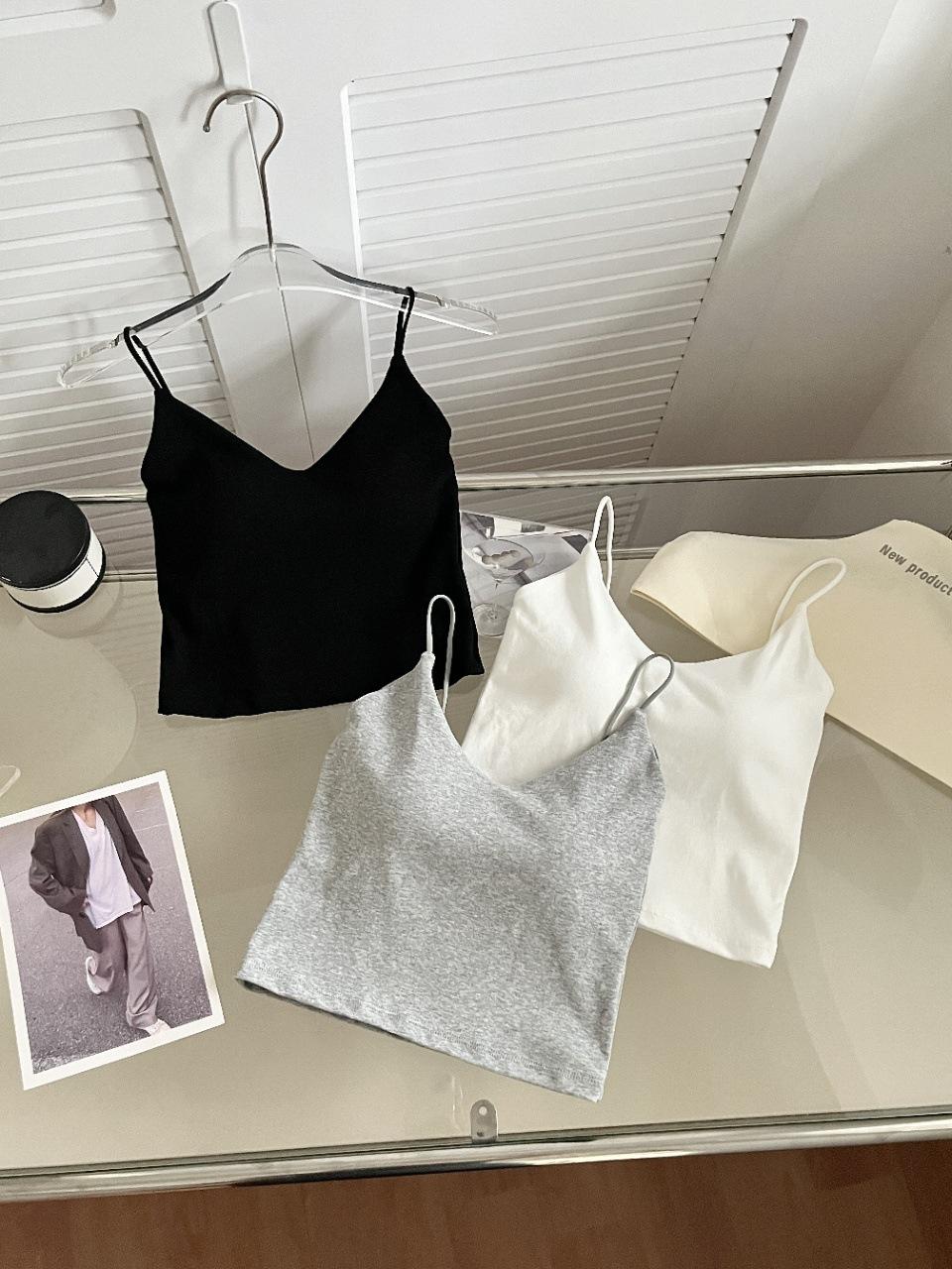 Camisola Sexy de Color Sólido con Cuello en V para Chica, Ajuste Entallado, para Uso Interior y Exterior, Copa Fija, Base, Hermoso Sujetador Envolvente de Espalda, Ropa Interior