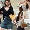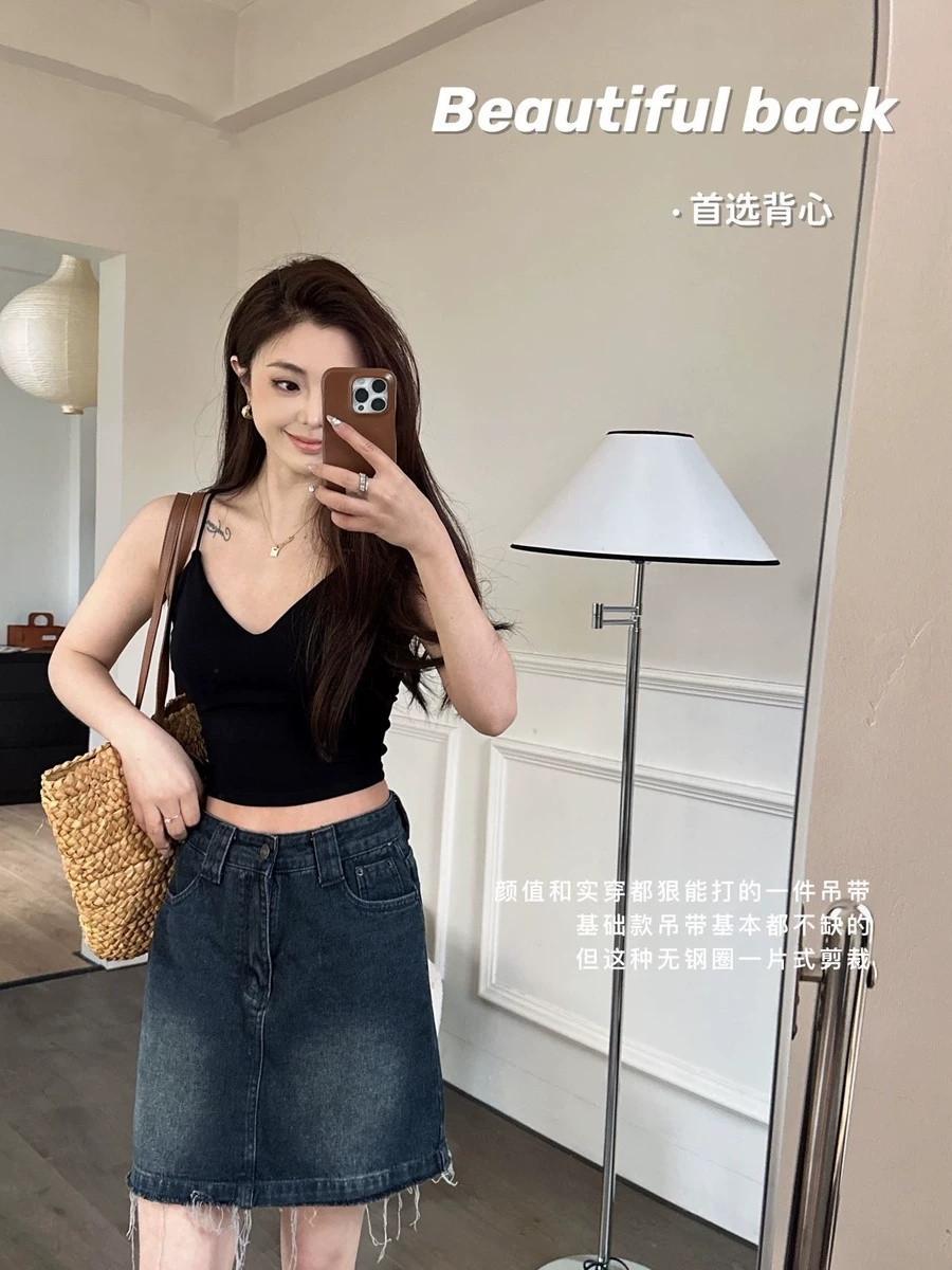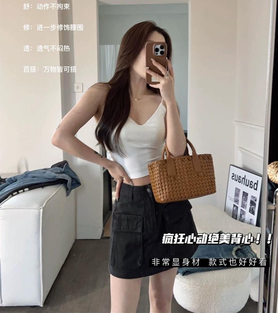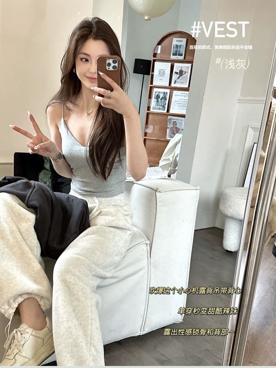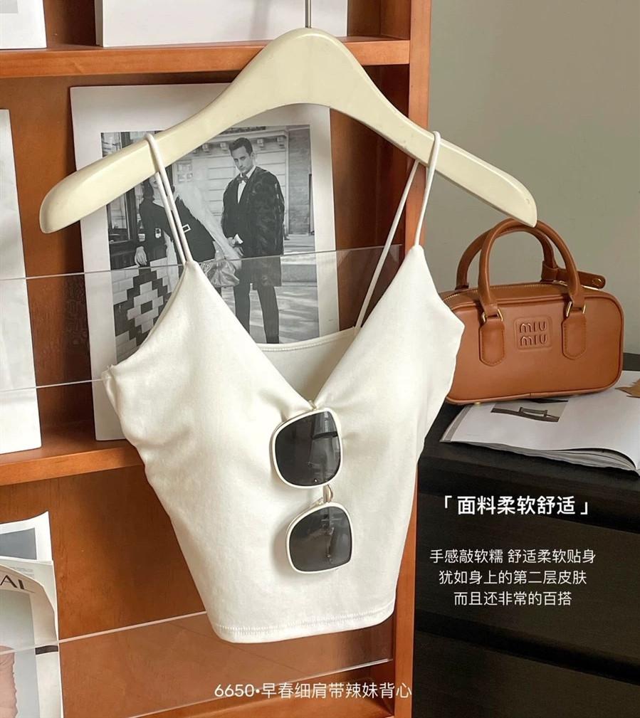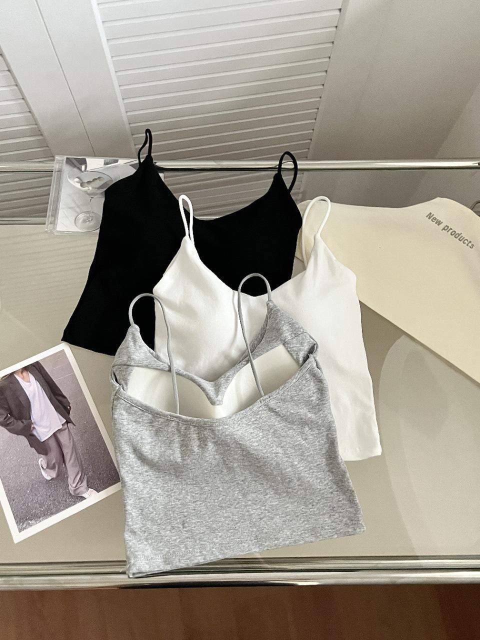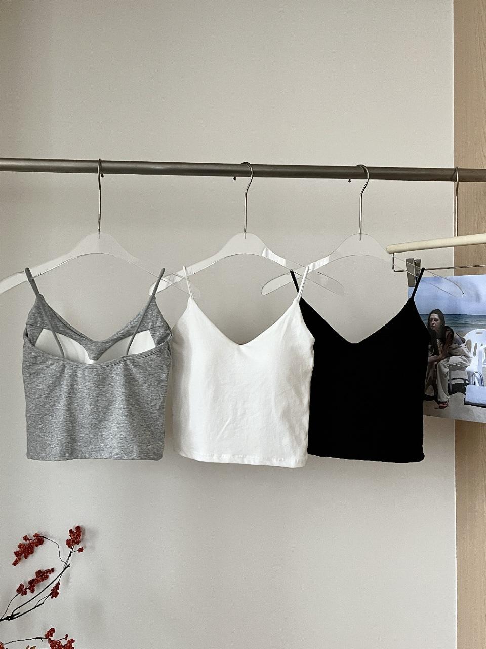 Camisola Sexy de Color Sólido con Cuello en V para Chica, Ajuste Entallado, para Uso Interior y Exterior, Copa Fija, Base, Hermoso Sujetador Envolvente de Espalda, Ropa Interior