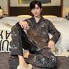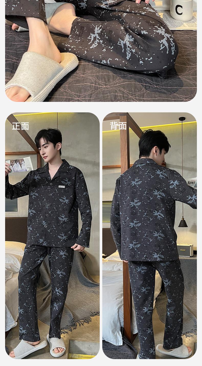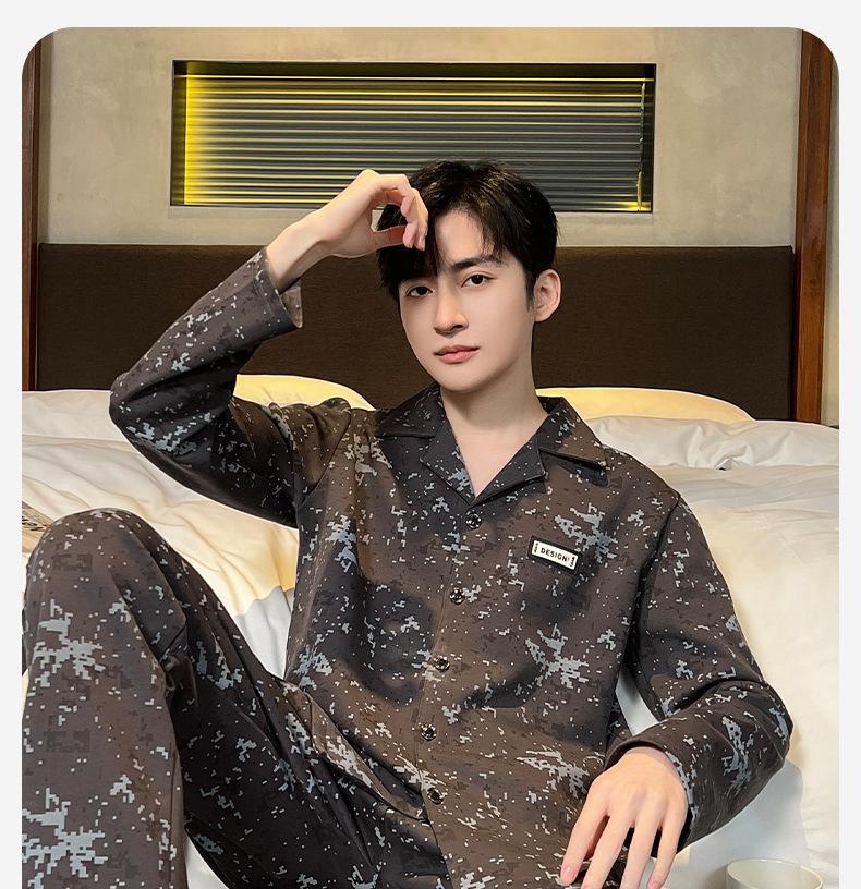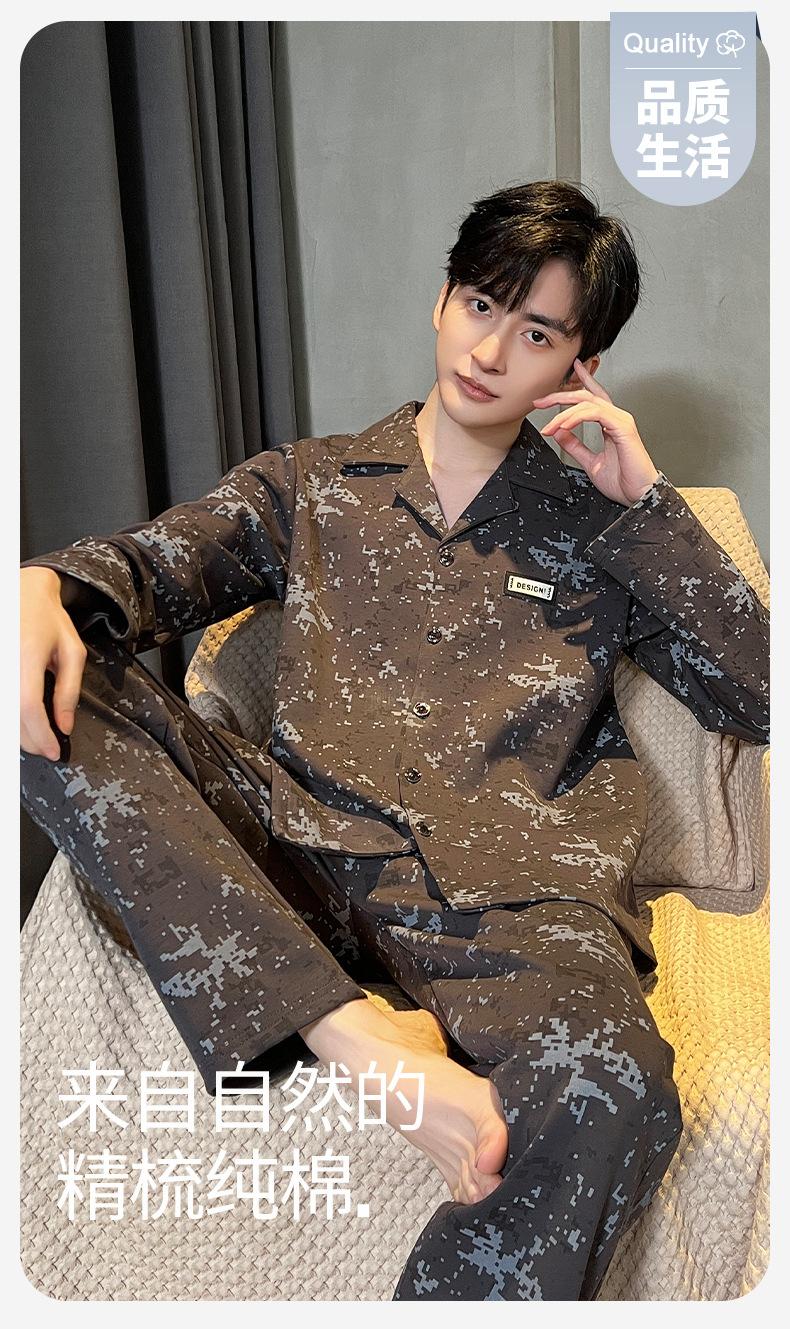 Pijama para hombre de algodón 100% para primavera, otoño y verano, de manga larga y pantalón largo, de alta gama, para niño, con cuello camisero tipo cárdigan, conjunto de ropa de casa