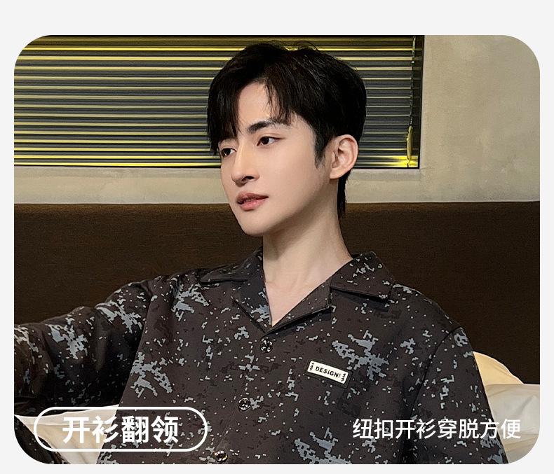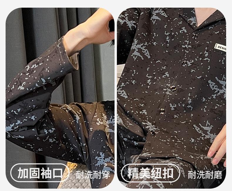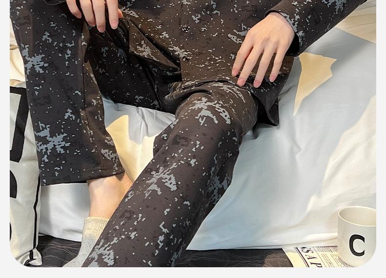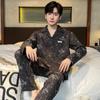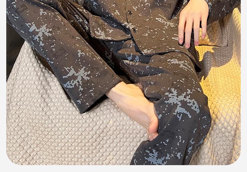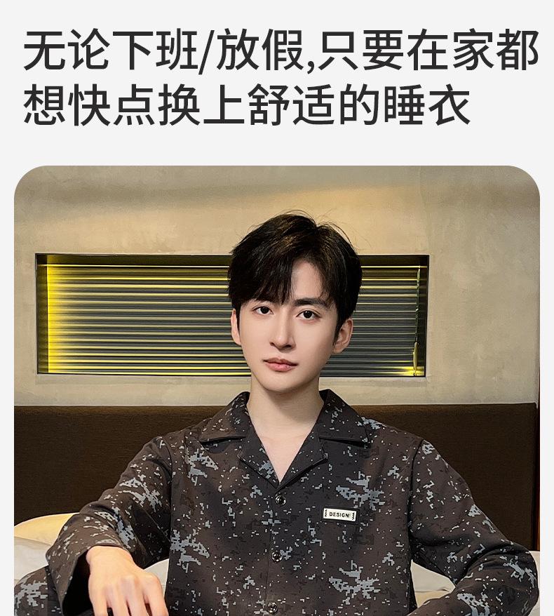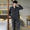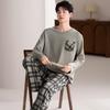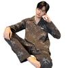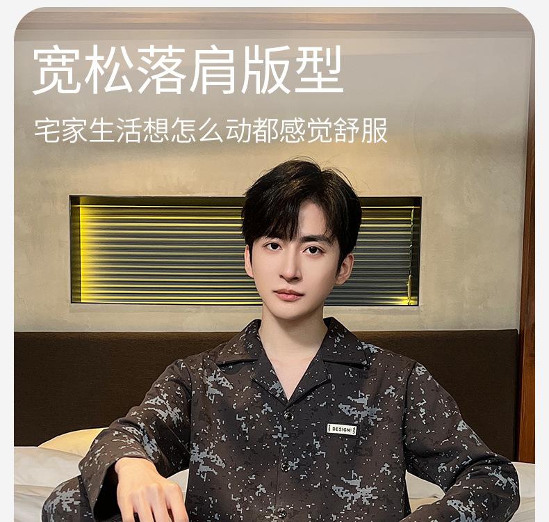 Pijama para hombre de algodón 100% para primavera, otoño y verano, de manga larga y pantalón largo, de alta gama, para niño, con cuello camisero tipo cárdigan, conjunto de ropa de casa