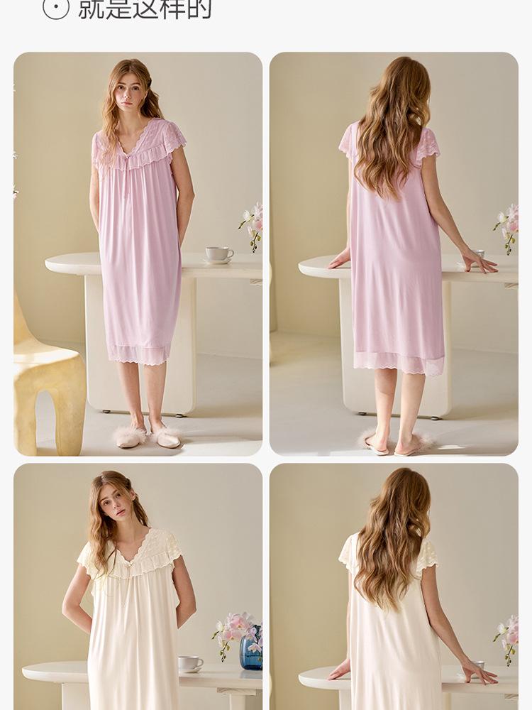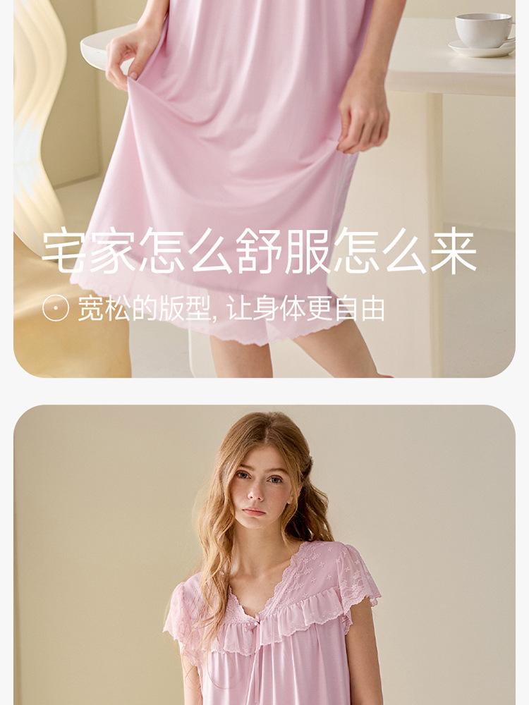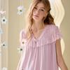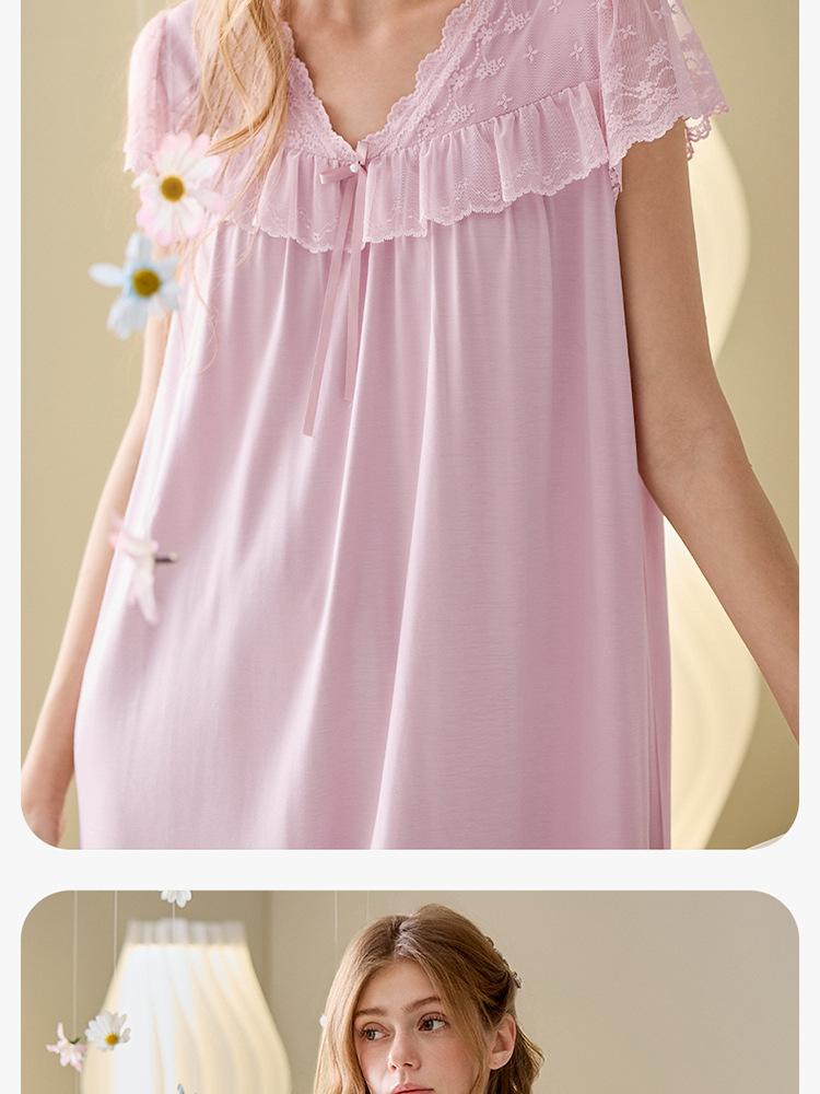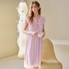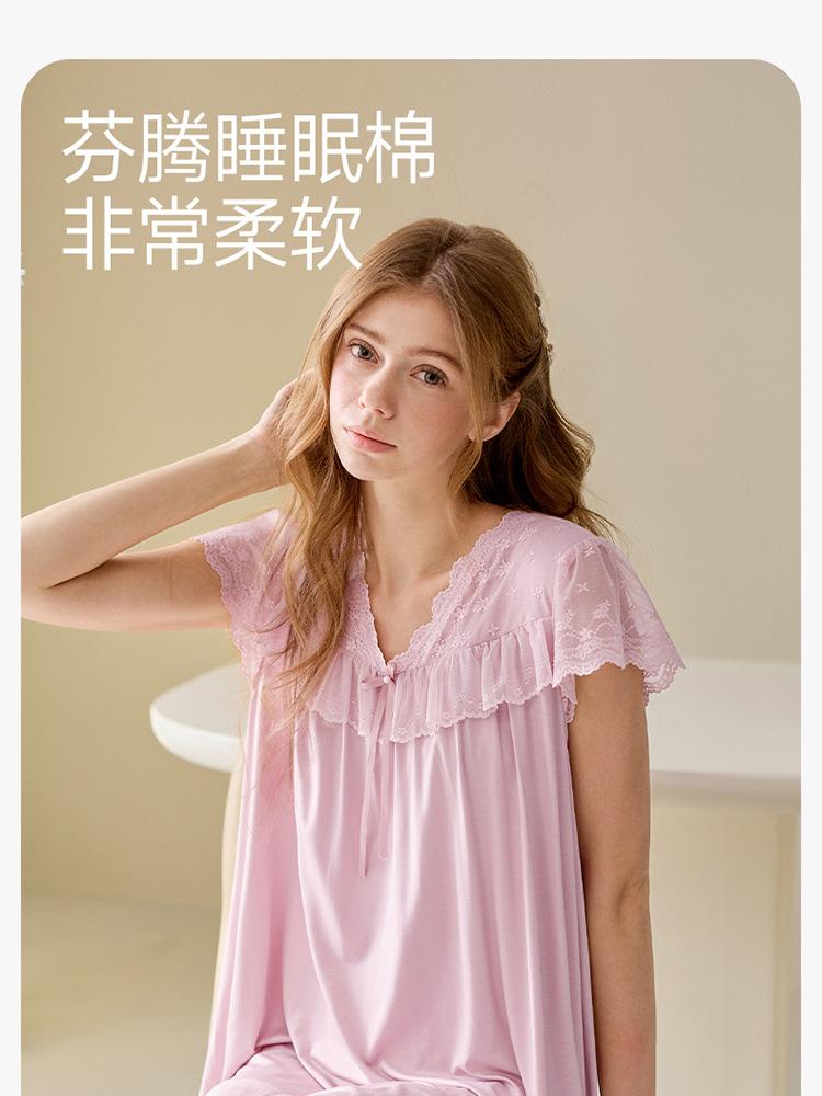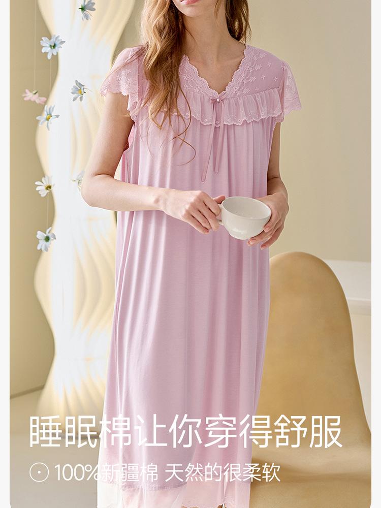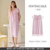 Fenton [Algodón para Dormir] Camisón de Mujer Encaje Algodón Manga Corta Pijama Transpirable Usable Ropa de Casa Vestido