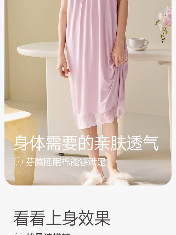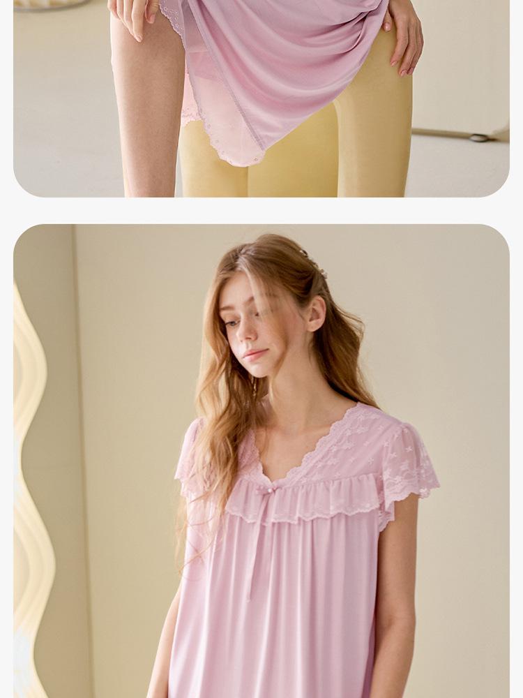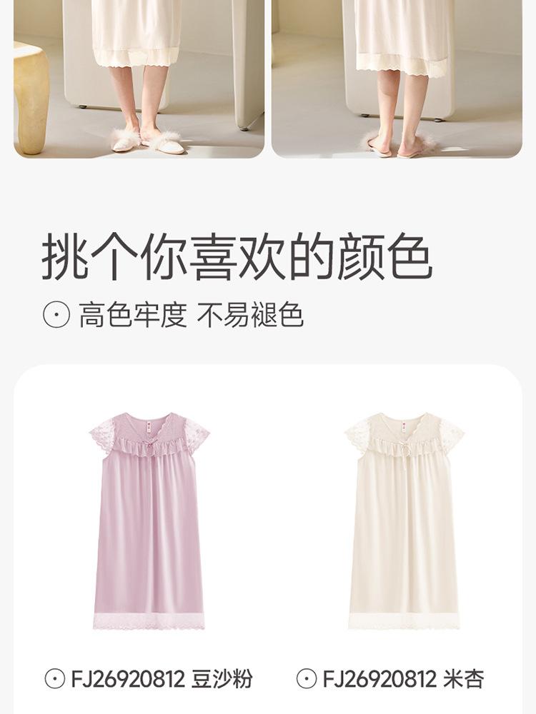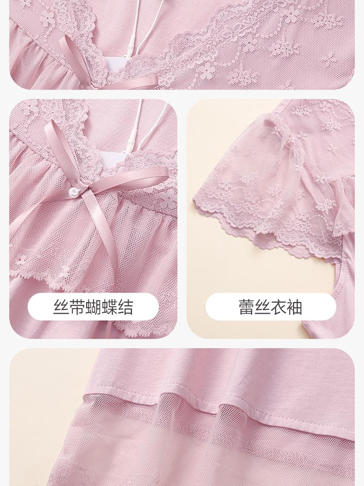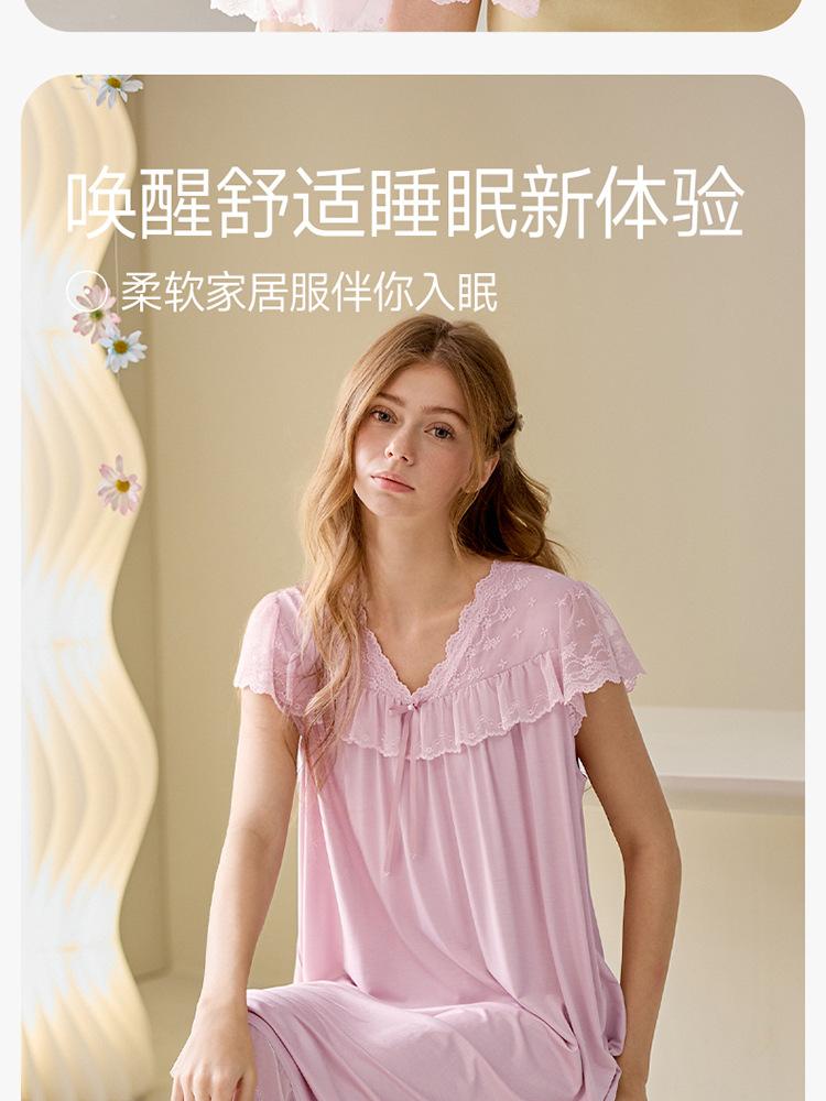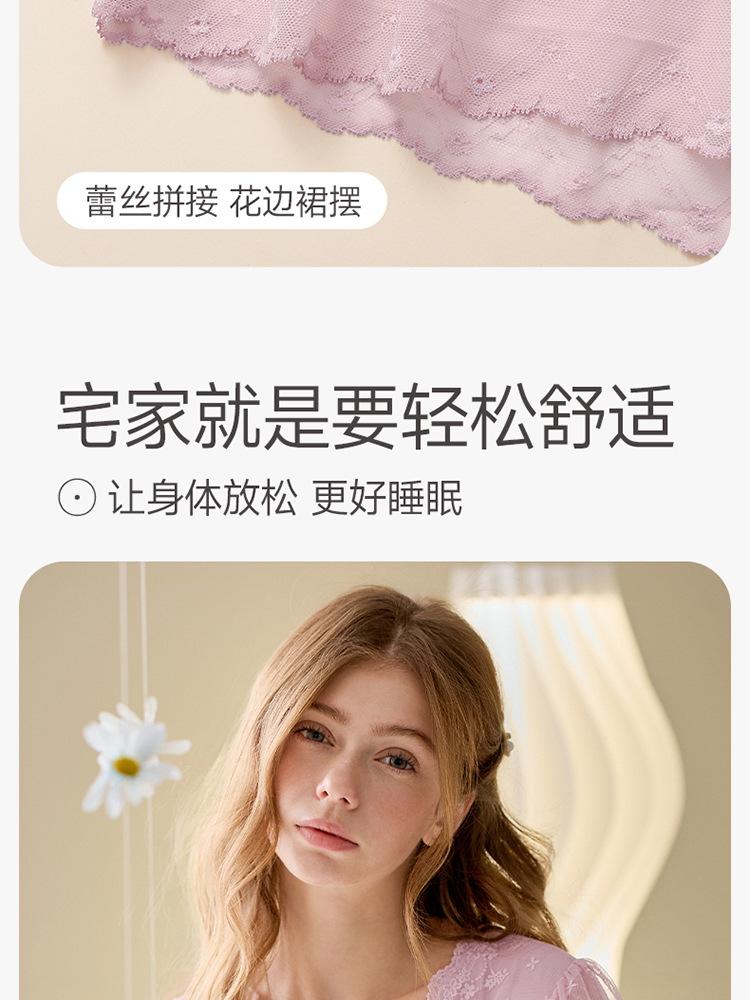 Fenton [Algodón para Dormir] Camisón de Mujer Encaje Algodón Manga Corta Pijama Transpirable Usable Ropa de Casa Vestido