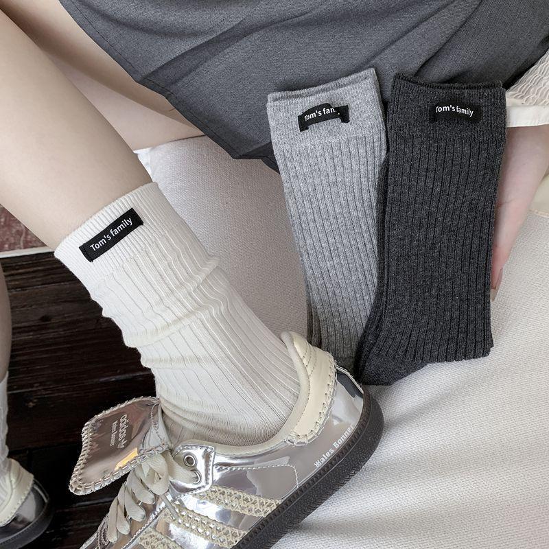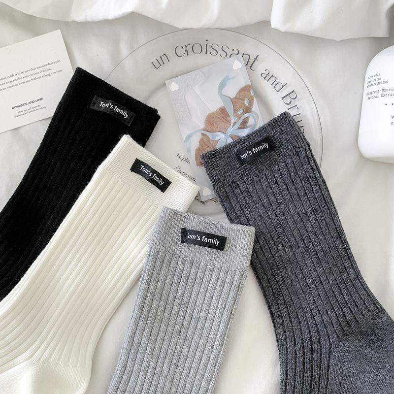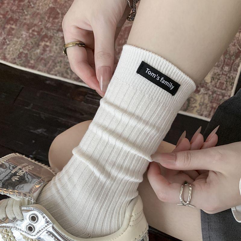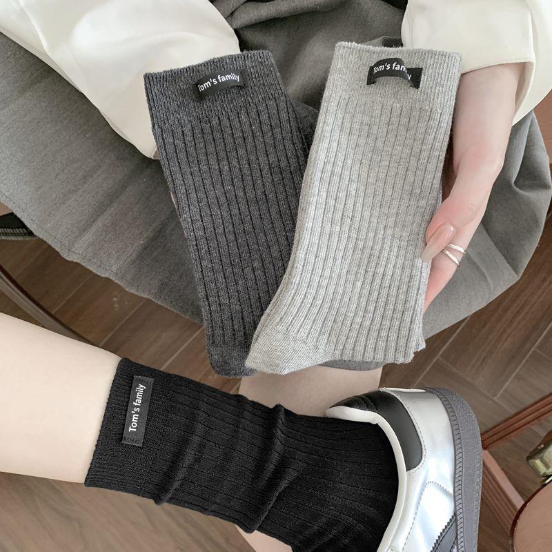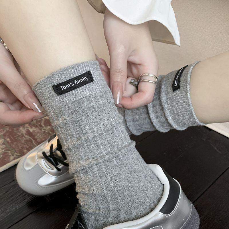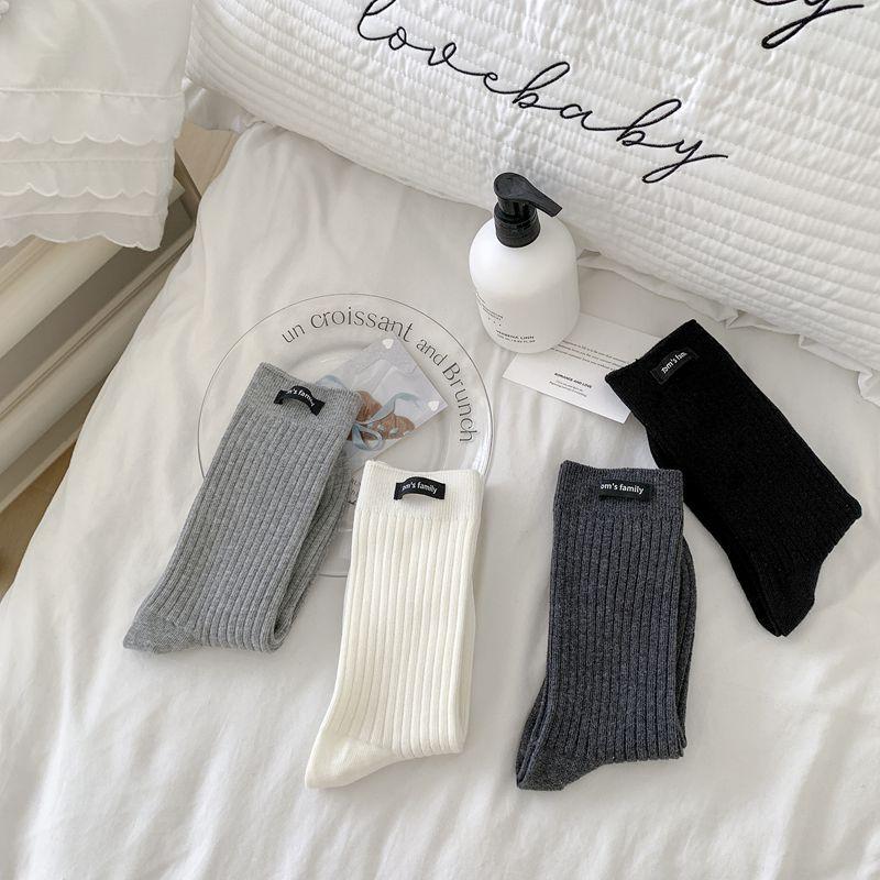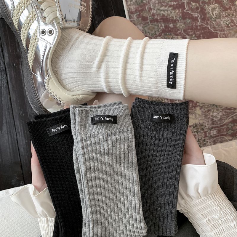 Calcetines de mujer otoño todo en uno doble aguja color sólido etiqueta de tela atuendo simple tendencia calcetines de pila al por mayor calcetines de media caña