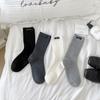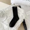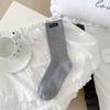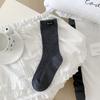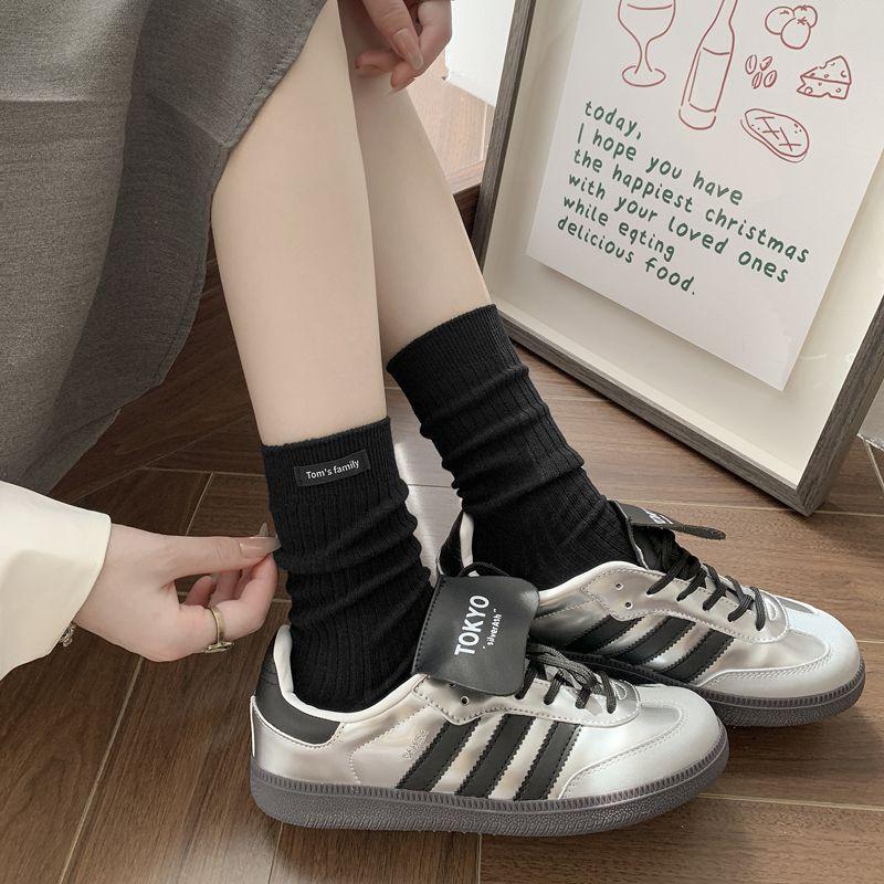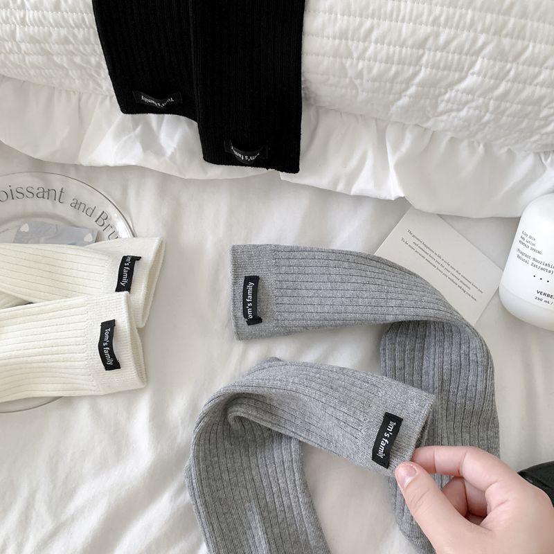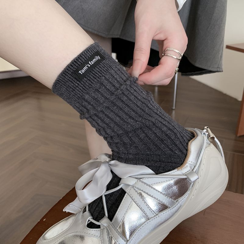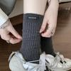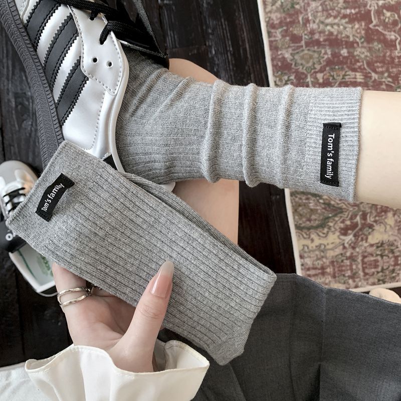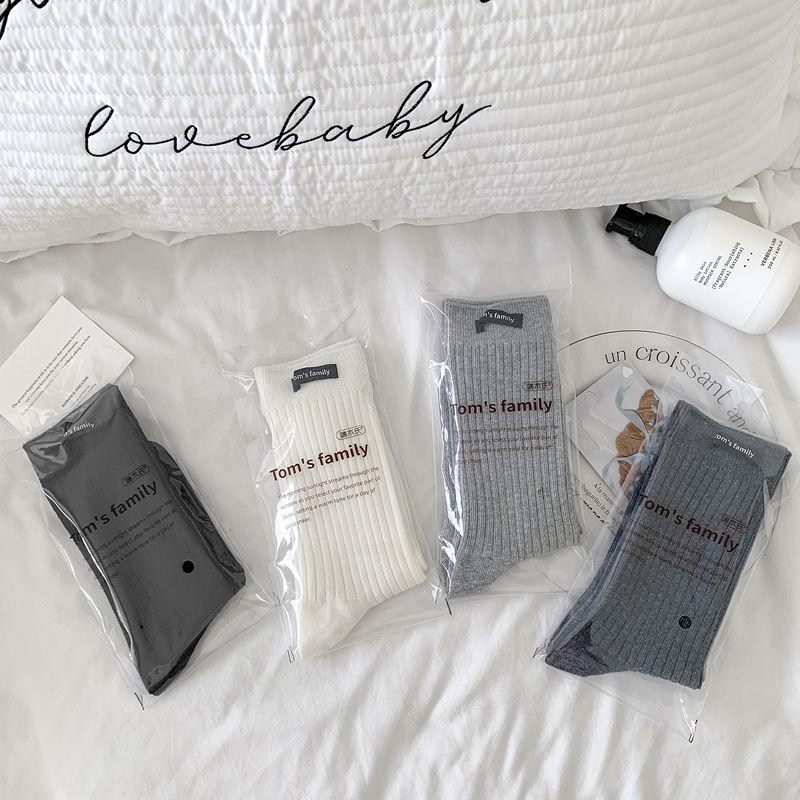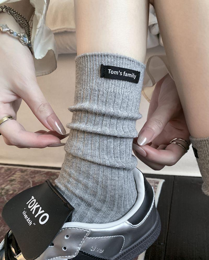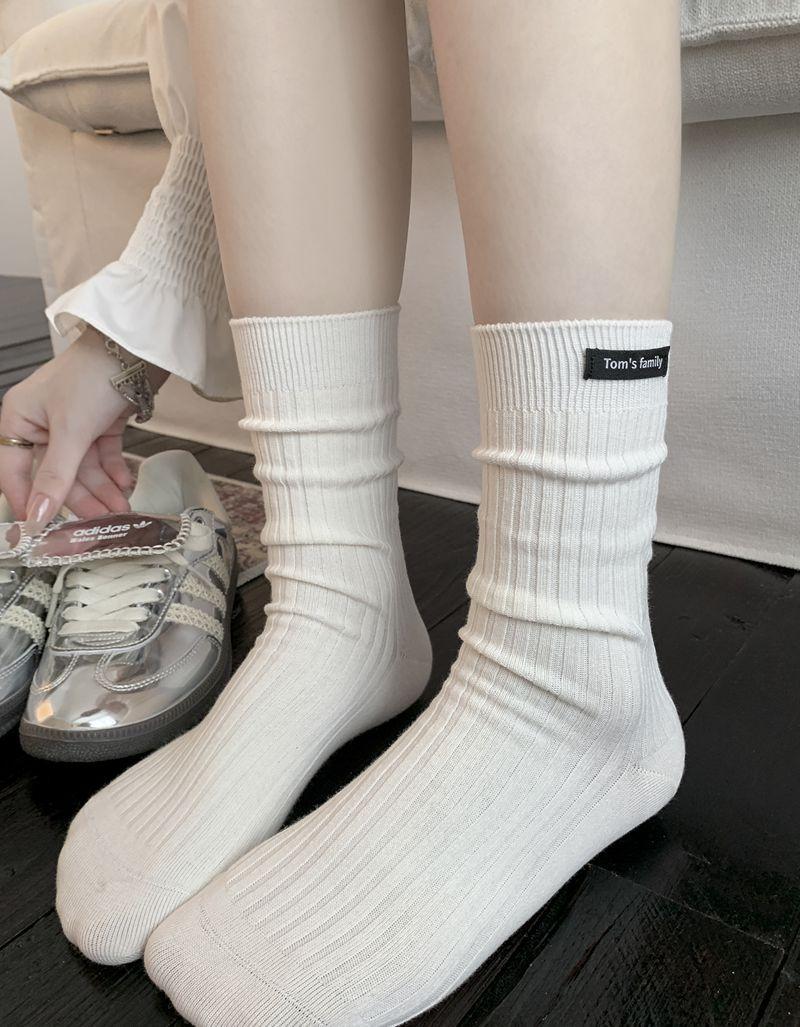 Calcetines de mujer otoño todo en uno doble aguja color sólido etiqueta de tela atuendo simple tendencia calcetines de pila al por mayor calcetines de media caña