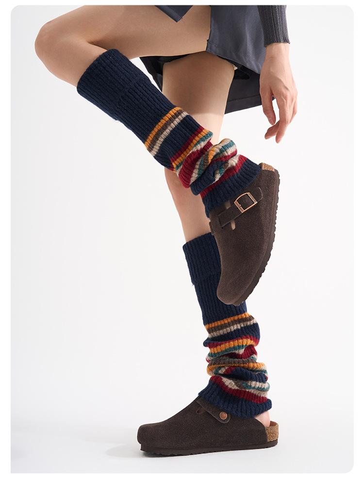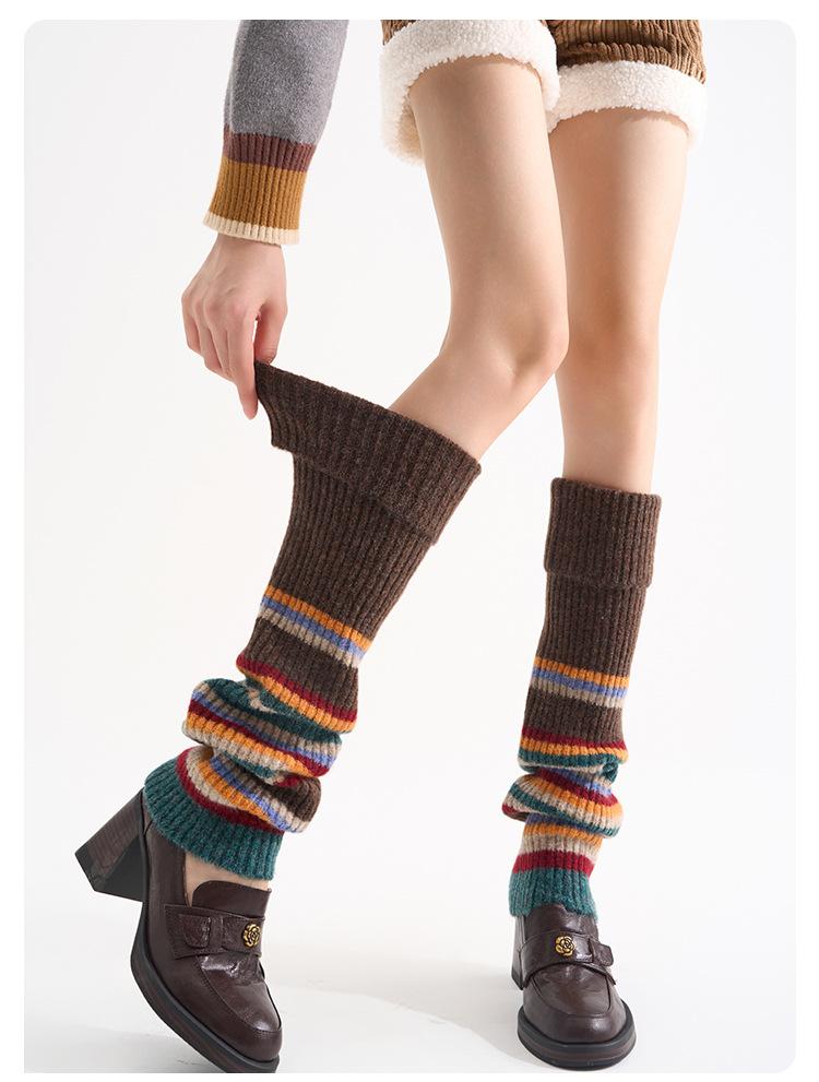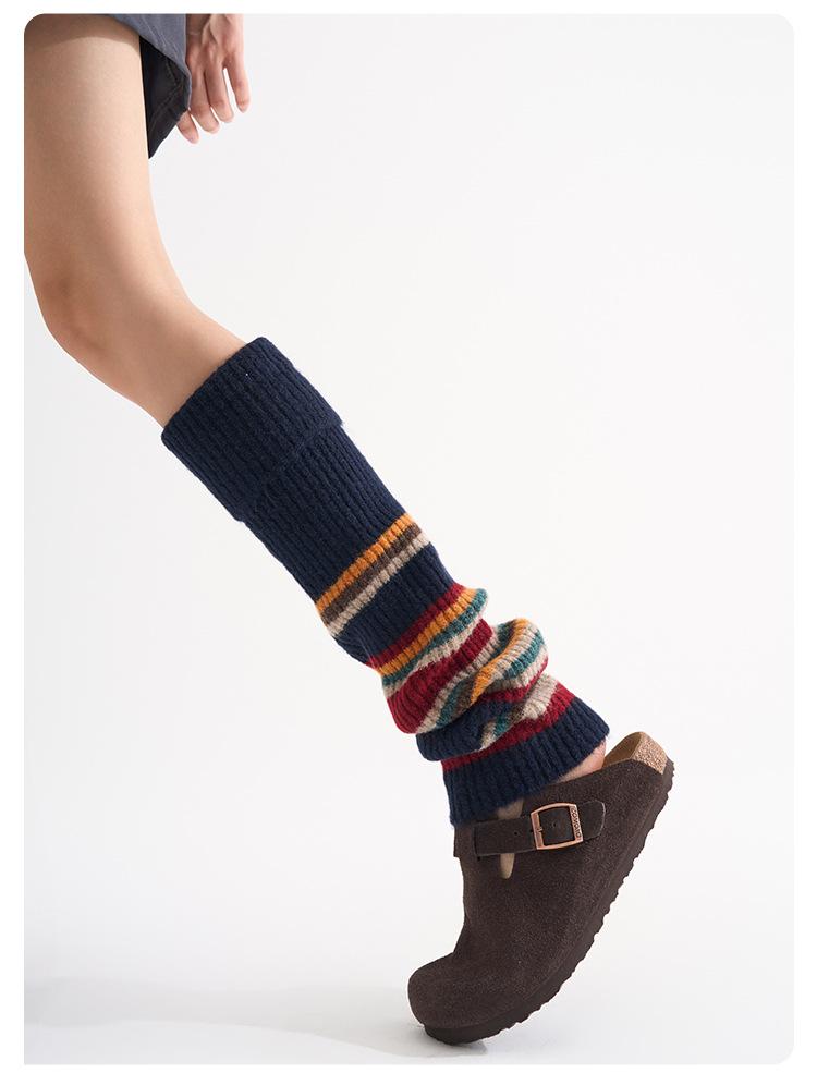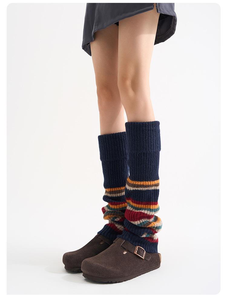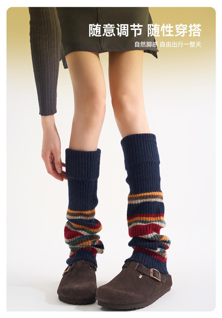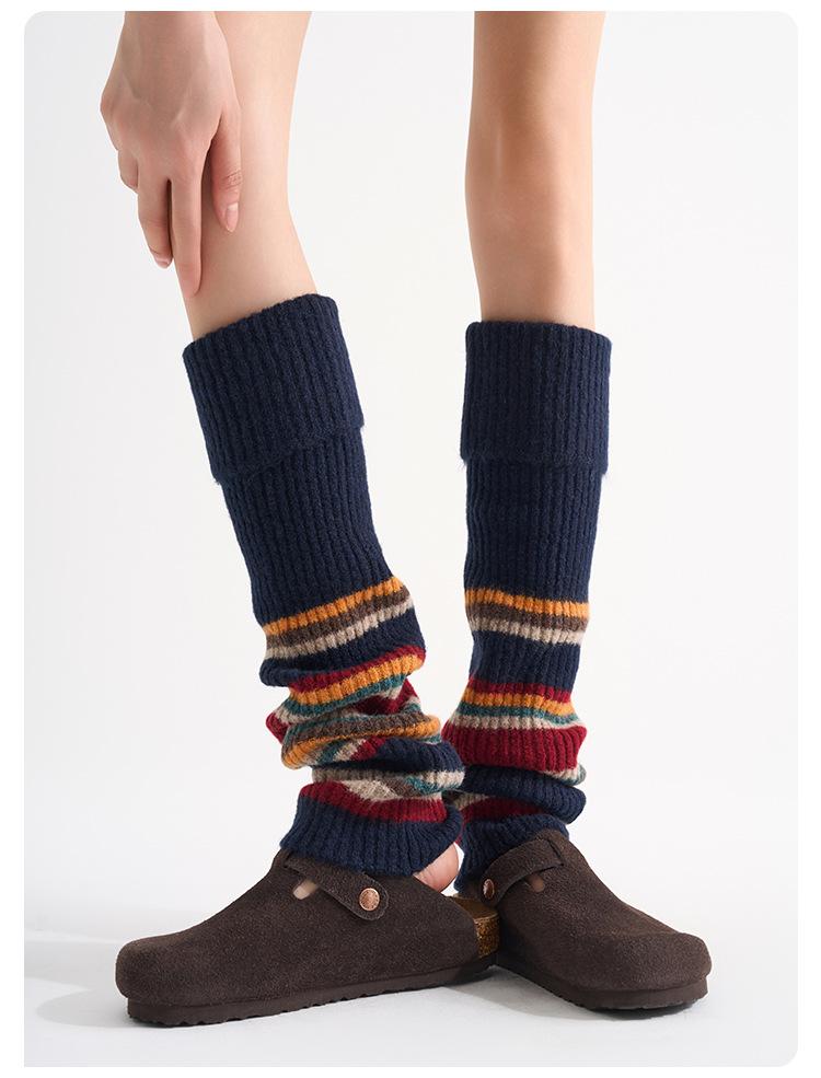 Calentadores de Pierna Estilo Retro Americano 2025 Nuevo Otoño Temprano Calcetines Arrugados de Punto a Rayas y2k Personalidad Chica Picante Calentadores de Pierna de Lana
