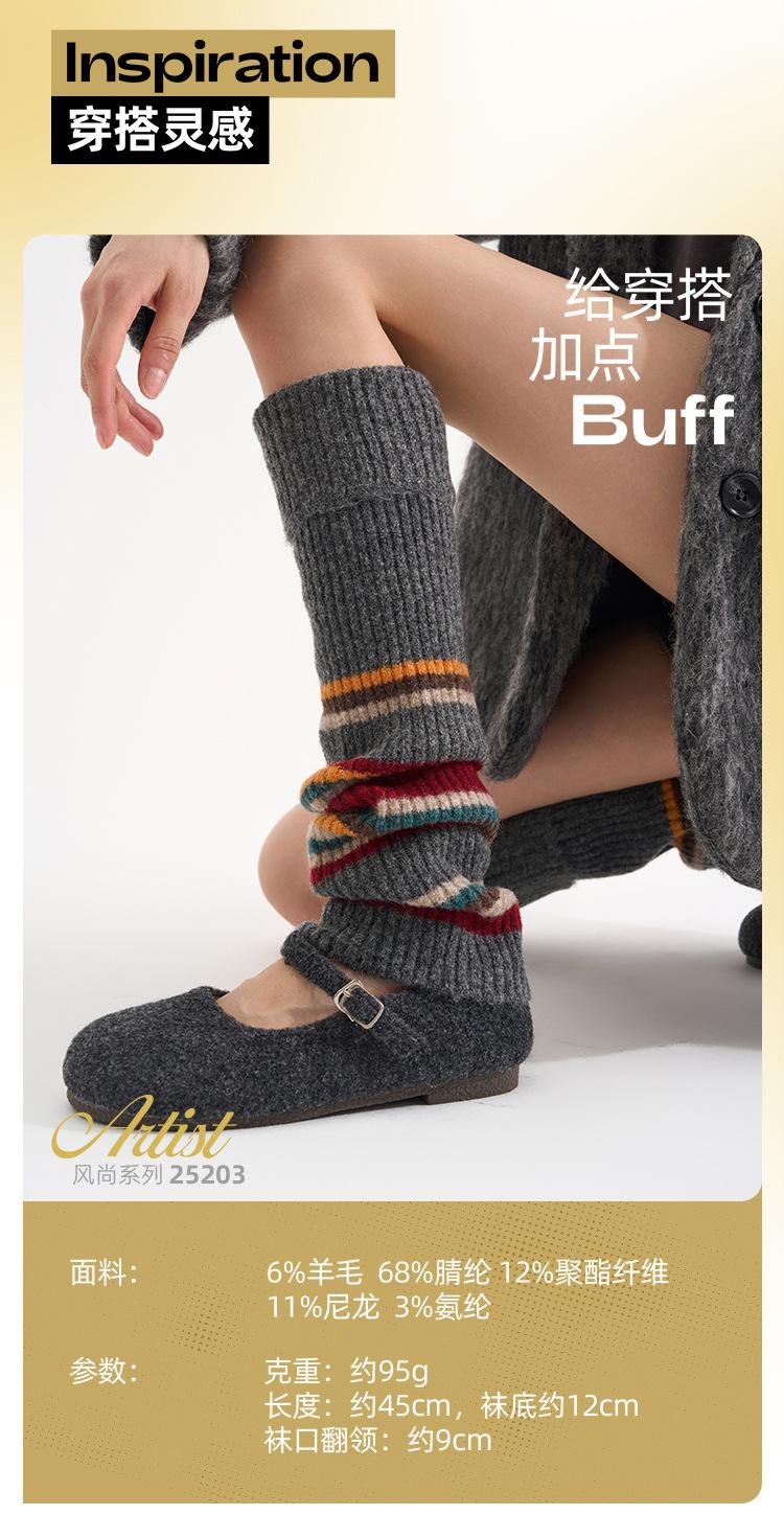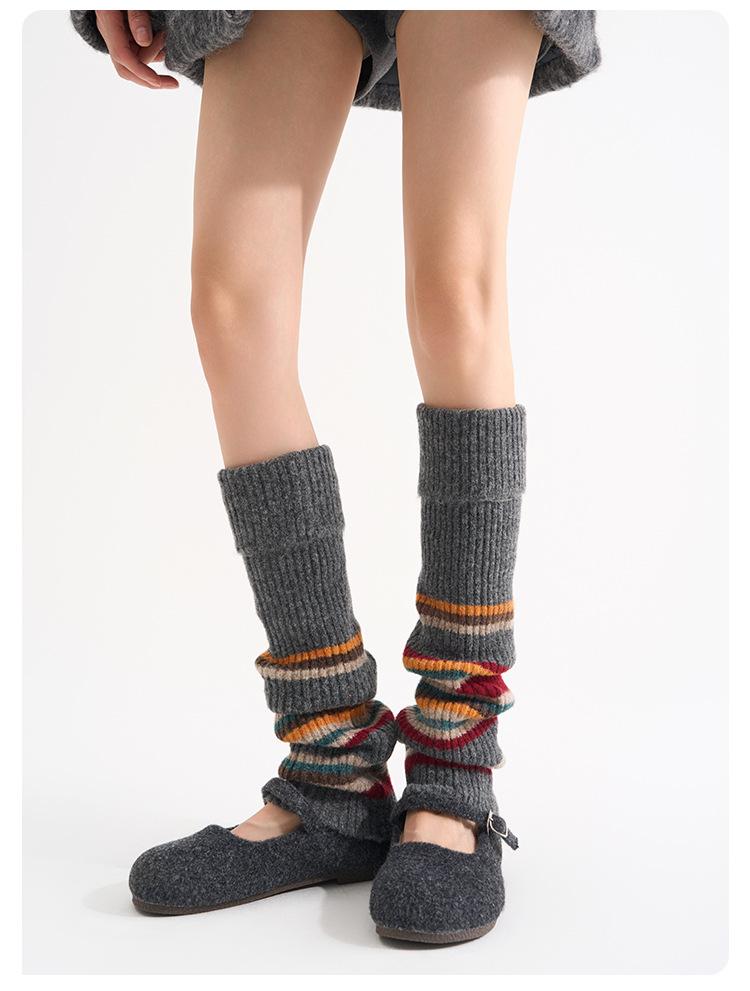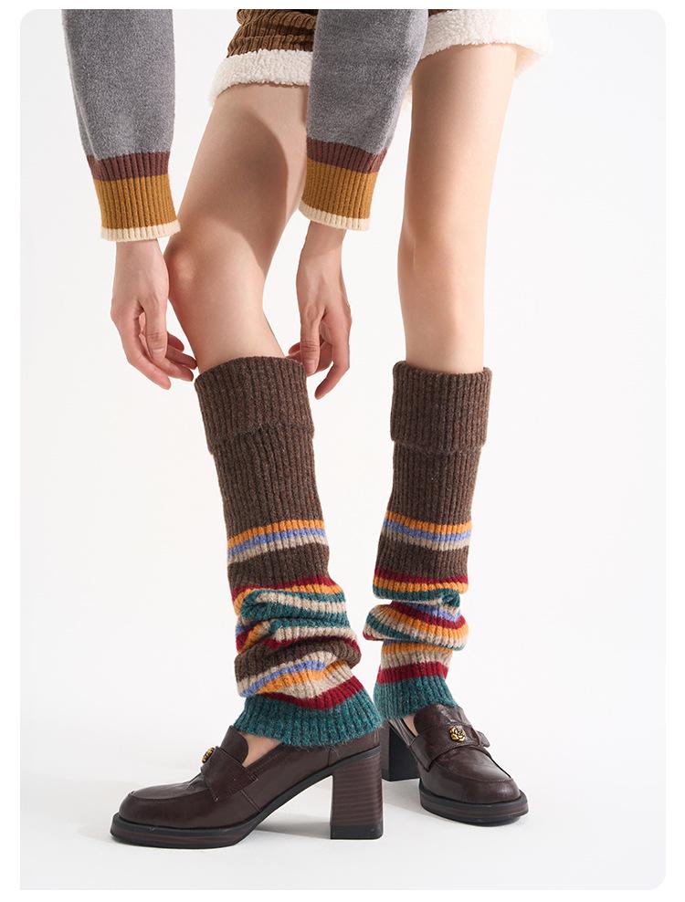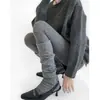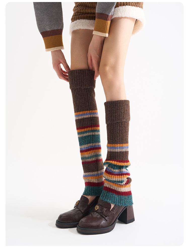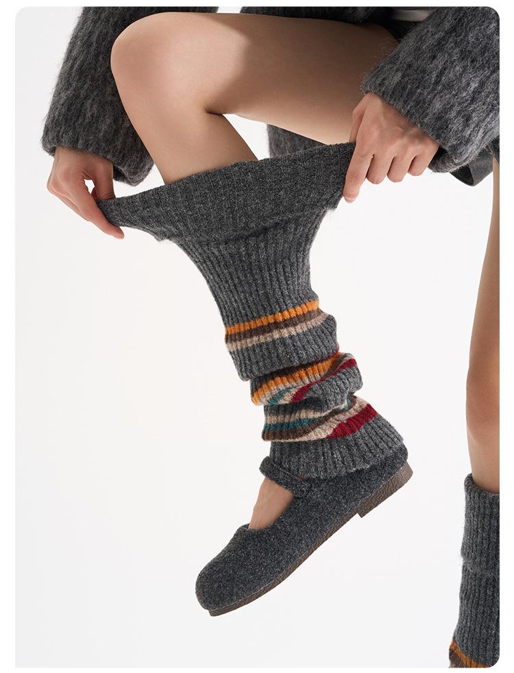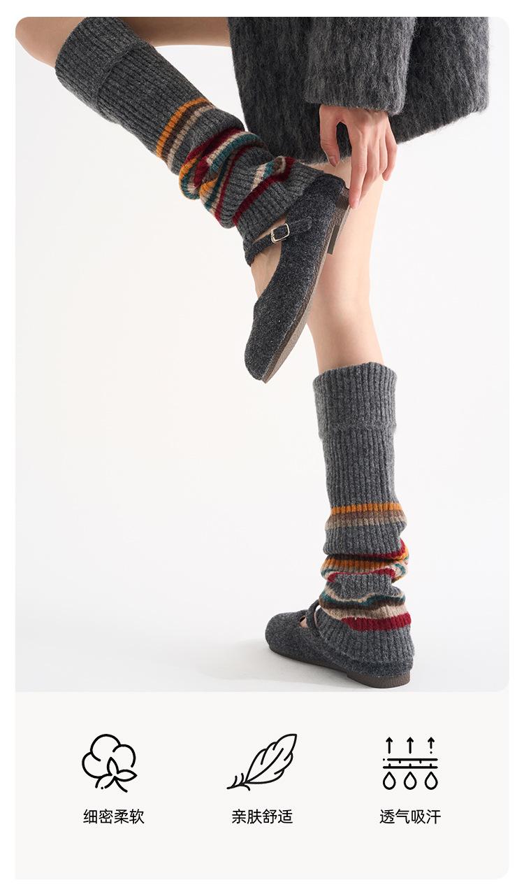 Calentadores de Pierna Estilo Retro Americano 2025 Nuevo Otoño Temprano Calcetines Arrugados de Punto a Rayas y2k Personalidad Chica Picante Calentadores de Pierna de Lana