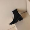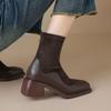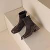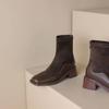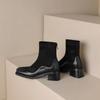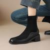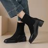 Otoño e invierno cremallera trasera color sólido botas Martin mujeres estilo coreano tacón medio talla grande botas de mujer tacón cuadrado suela de goma botas de cuero botas de media caña