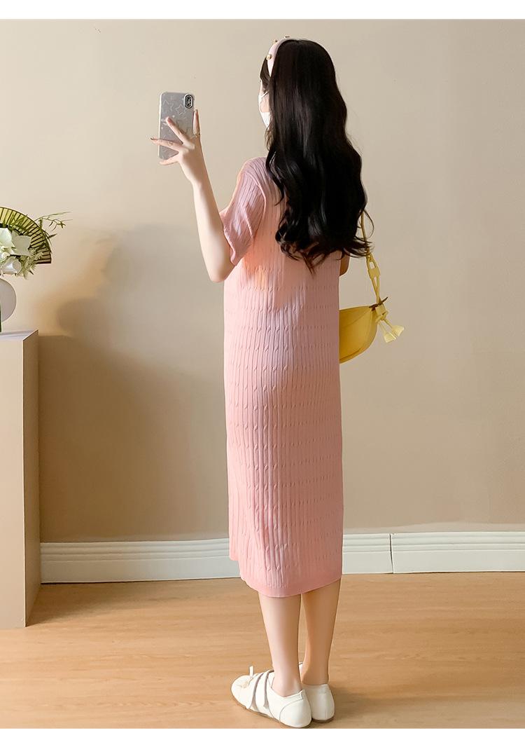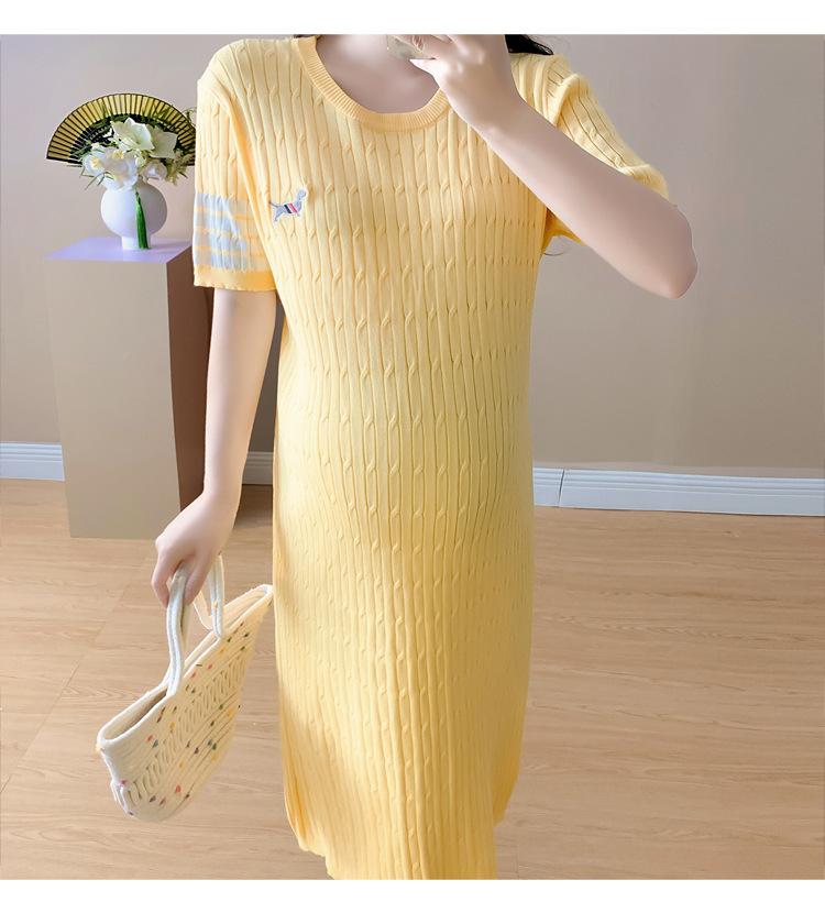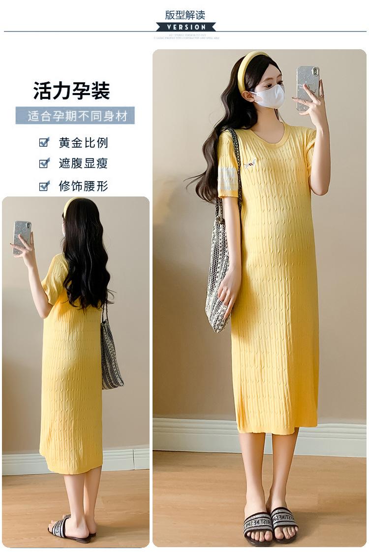 Ropa de Maternidad 2025 Verano Nuevo Estilo Coreano Moda Diseño Tejido Suelto Talla Grande Vestido de Maternidad