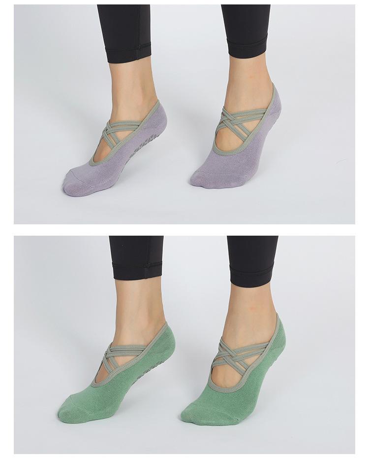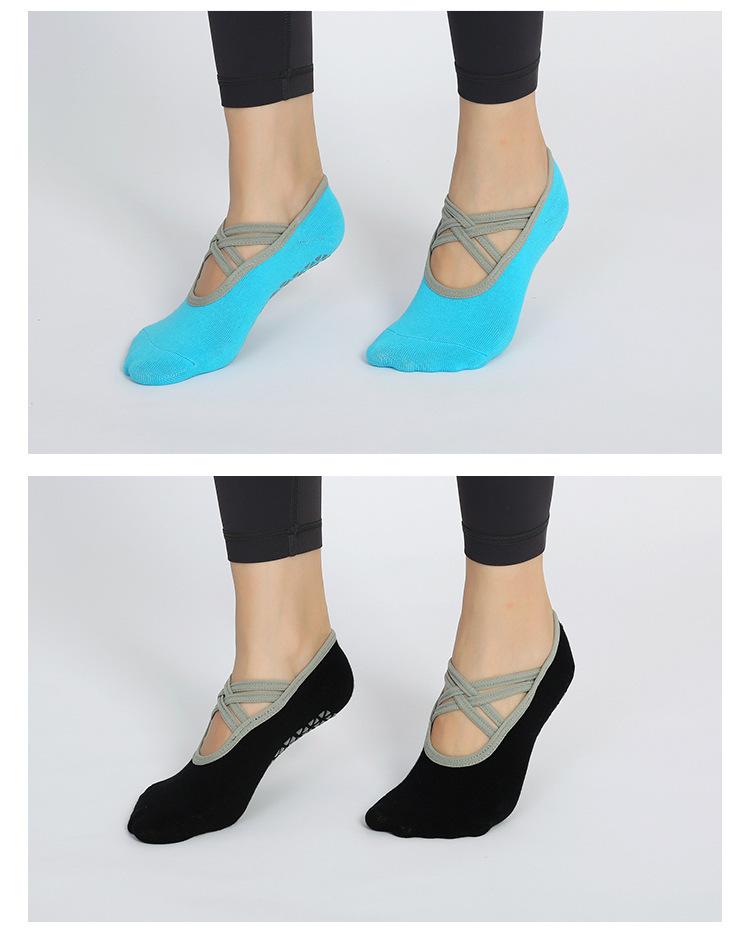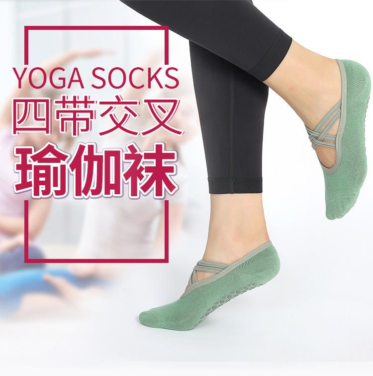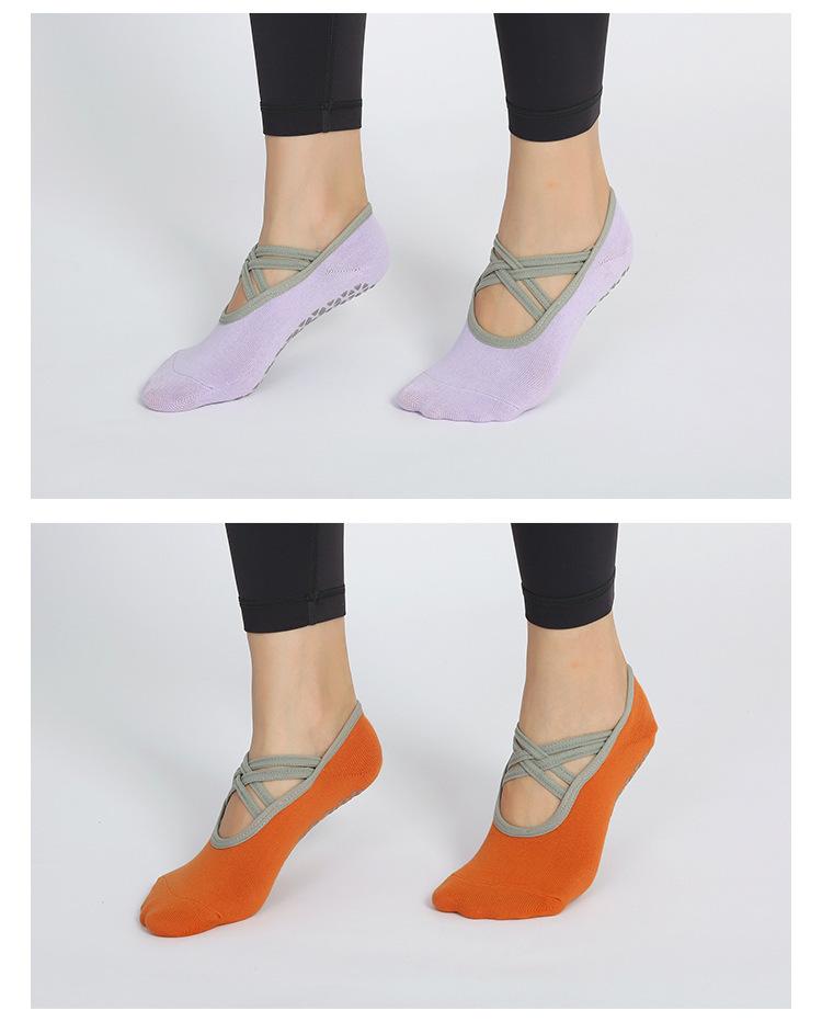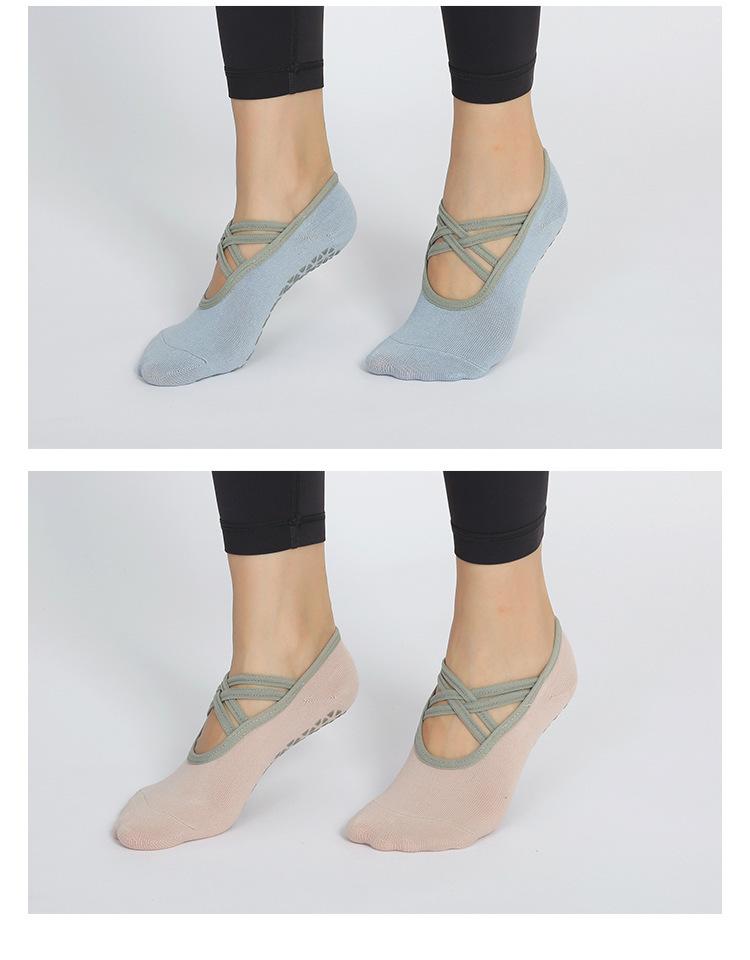 Nuevo dispensador transfronterizo doble cruz con calcetines de yoga para damas, calcetines deportivos de fitness antideslizantes para interior, calcetines de piso de verano