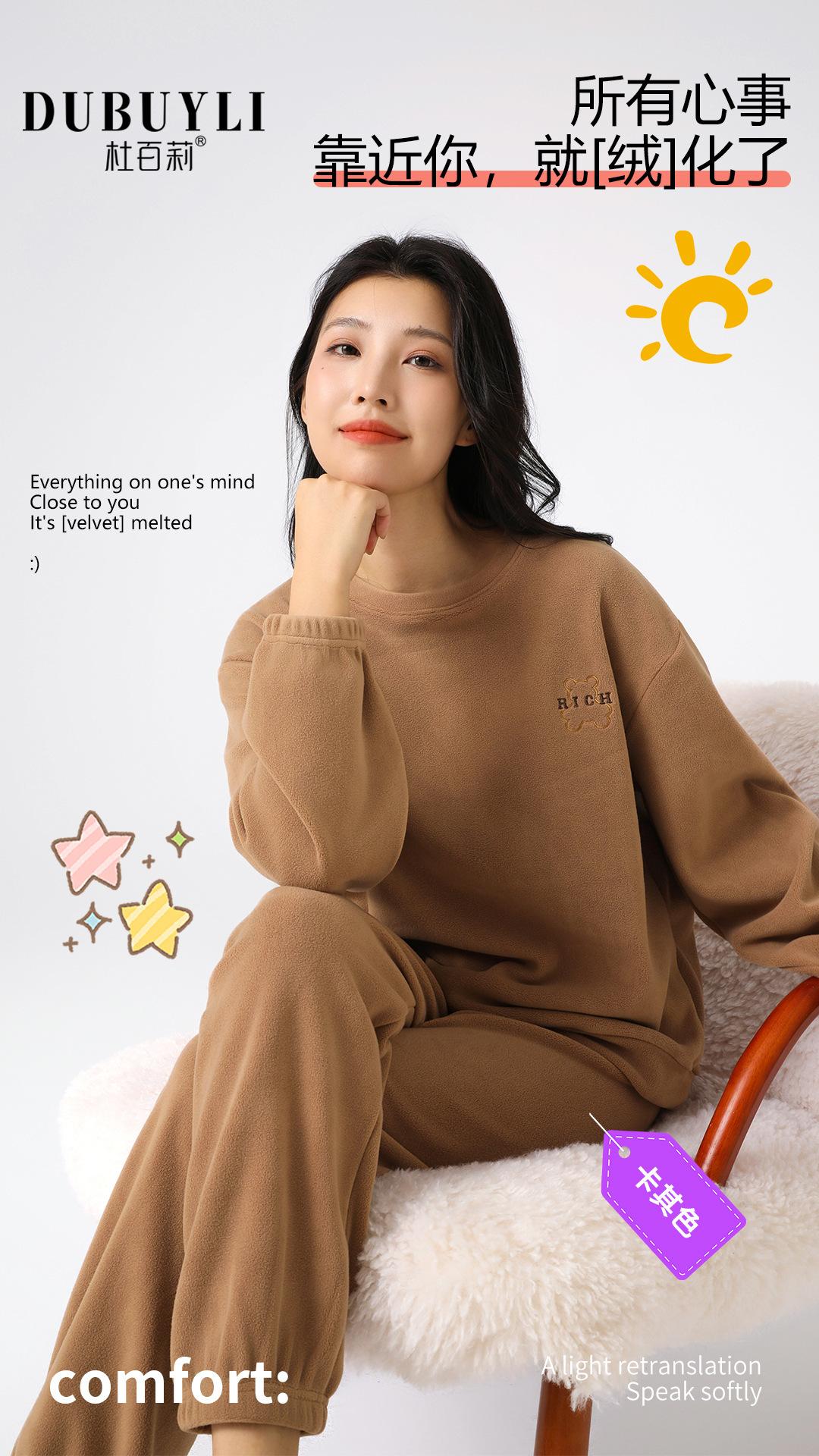 Conjunto de Ropa para Estar en Casa de Forro Polar para Mujer Conjunto Xiangxiang de Osito Otoño e Invierno Nuevo Grueso y con Forro de Terciopelo Cálido Talla Grande Pijama para Mujer