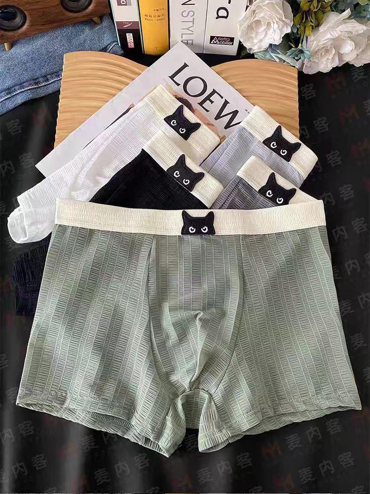 Ropa interior de seda de hielo para hombre, bóxers jacquard delgados y transpirables, deportivos de verano, cómodos y sencillos, ropa interior tipo short de cuatro esquinas para hombre