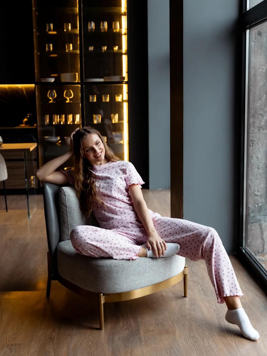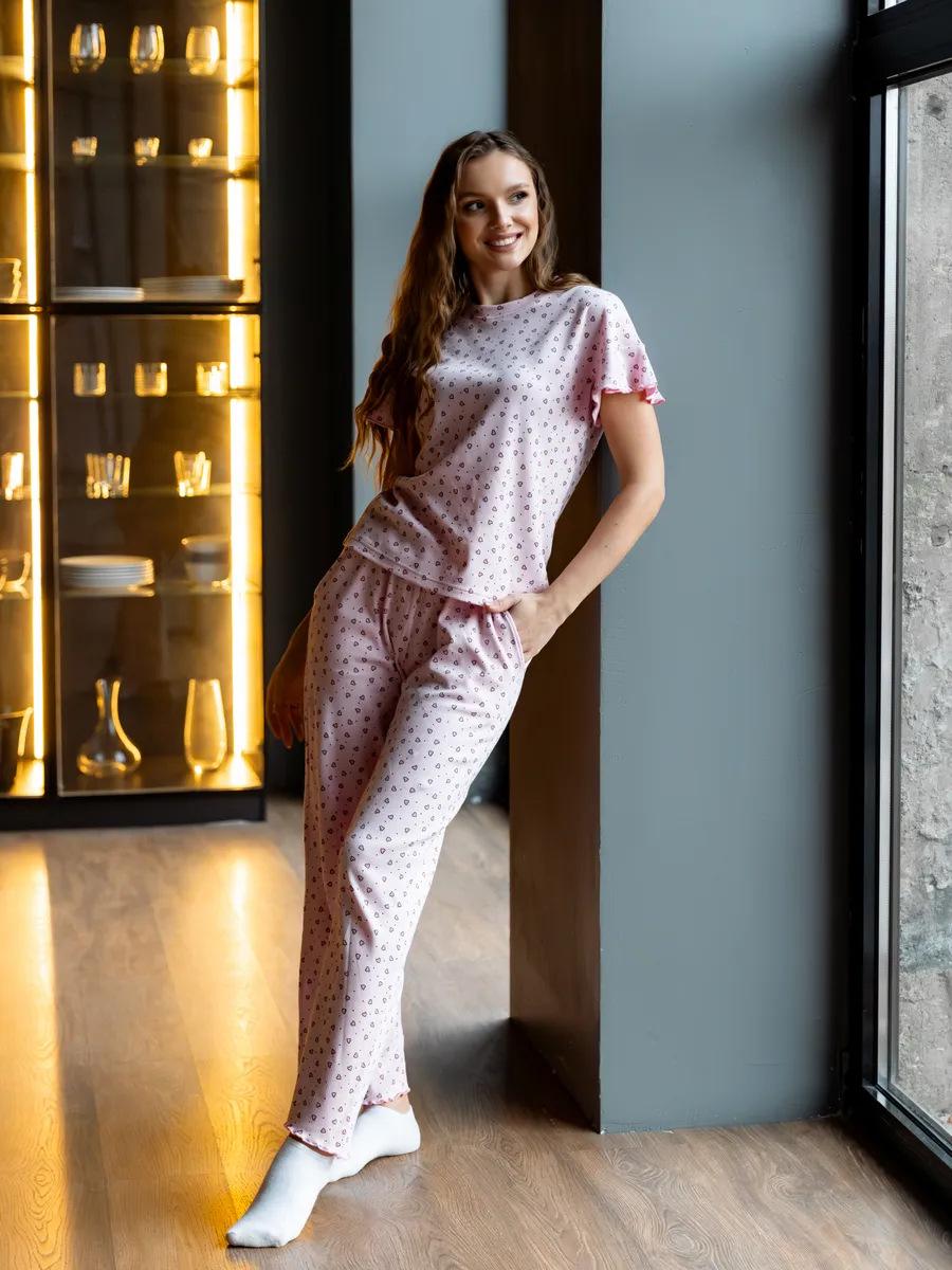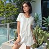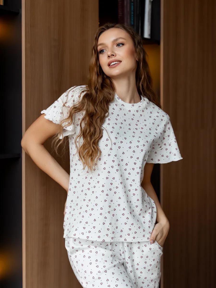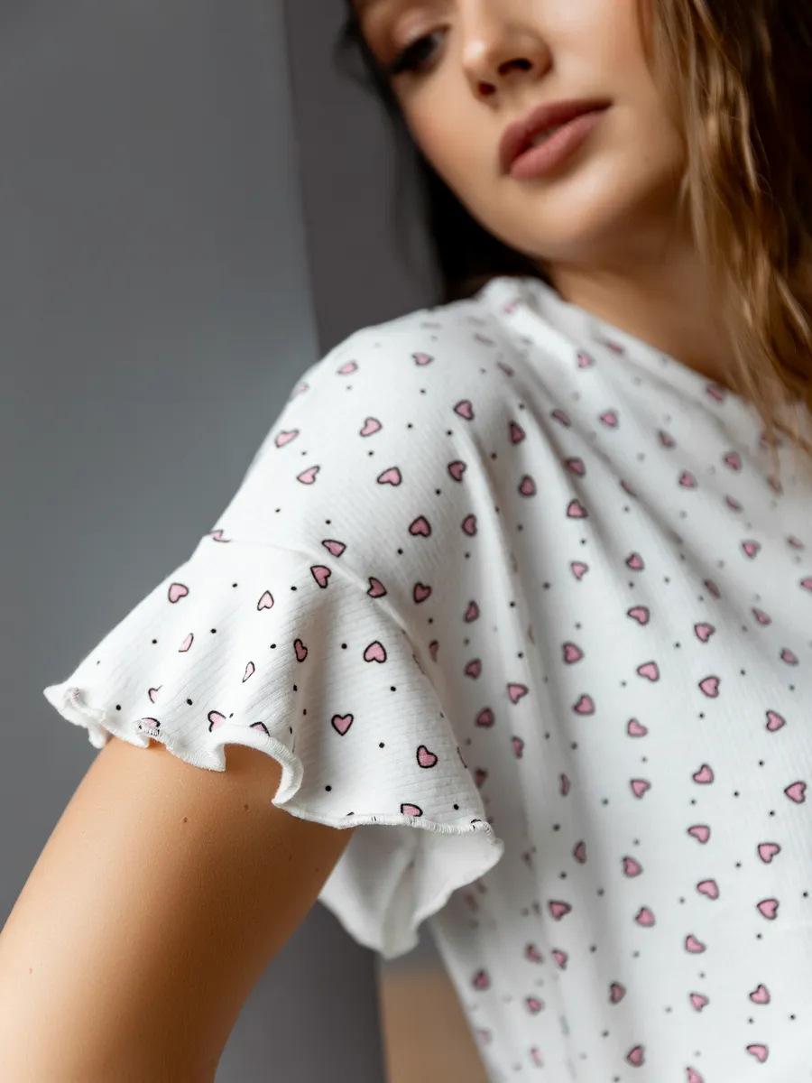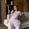Pijamas Transfronterizos Europeos y Americanos 2025 para Mujer Primavera y Otoño Estampado de Dulce Corazón Pantalones de Manga Corta con Volantes Conjunto de Ropa para el Hogar