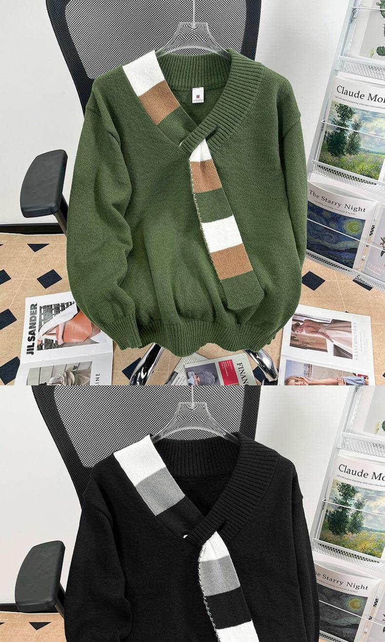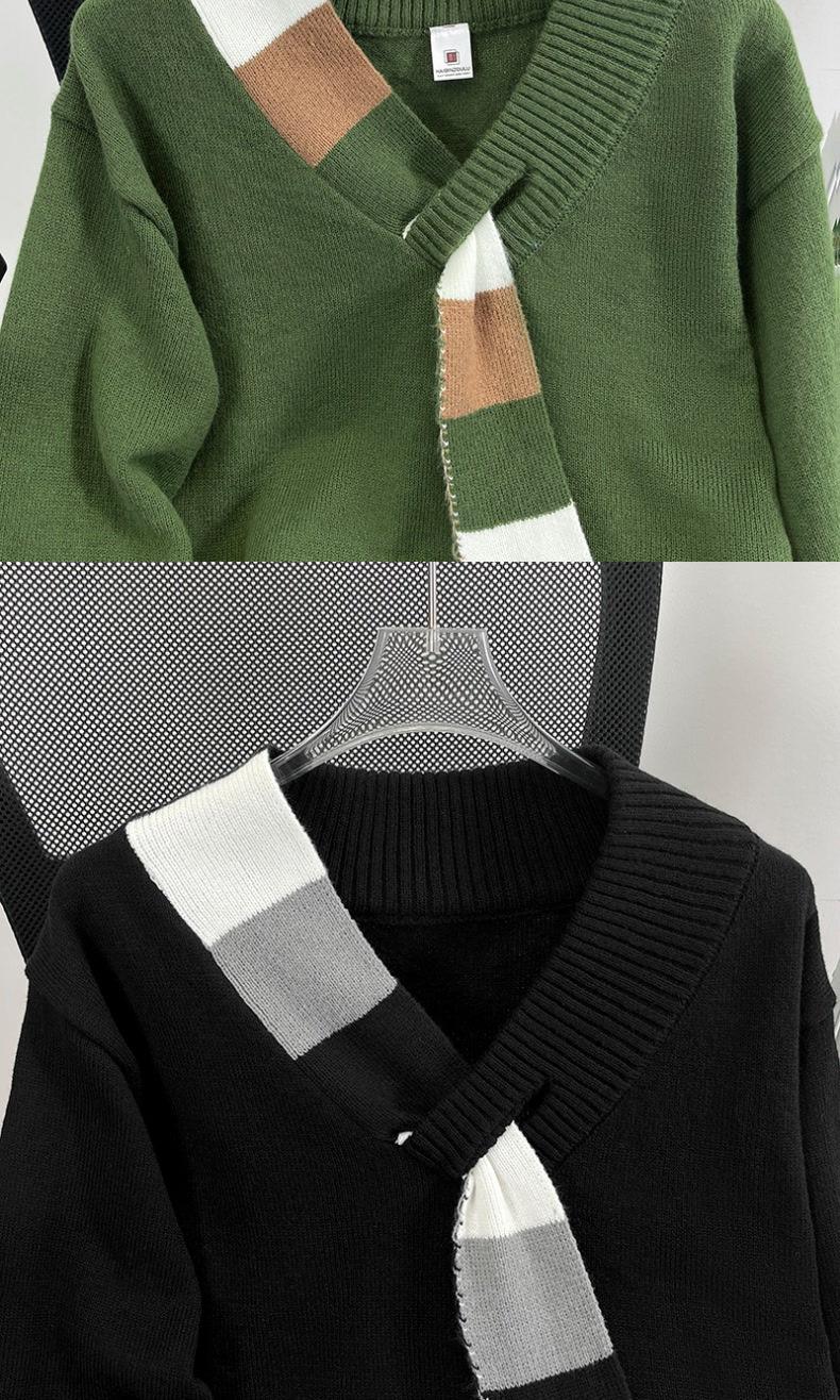 Suéter para Adolescentes para Hombre Transfronterizo Corbata Marea Nuevo Cuello en V Tejido de Punto Casual Estilo Étnico Cálido Lana Suéter Ropa de Invierno