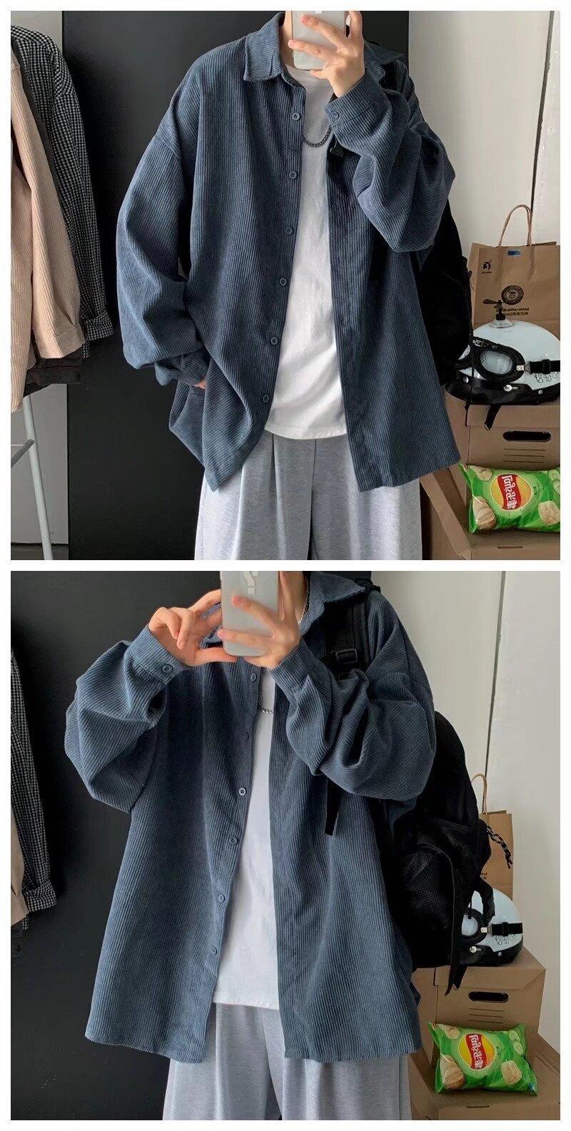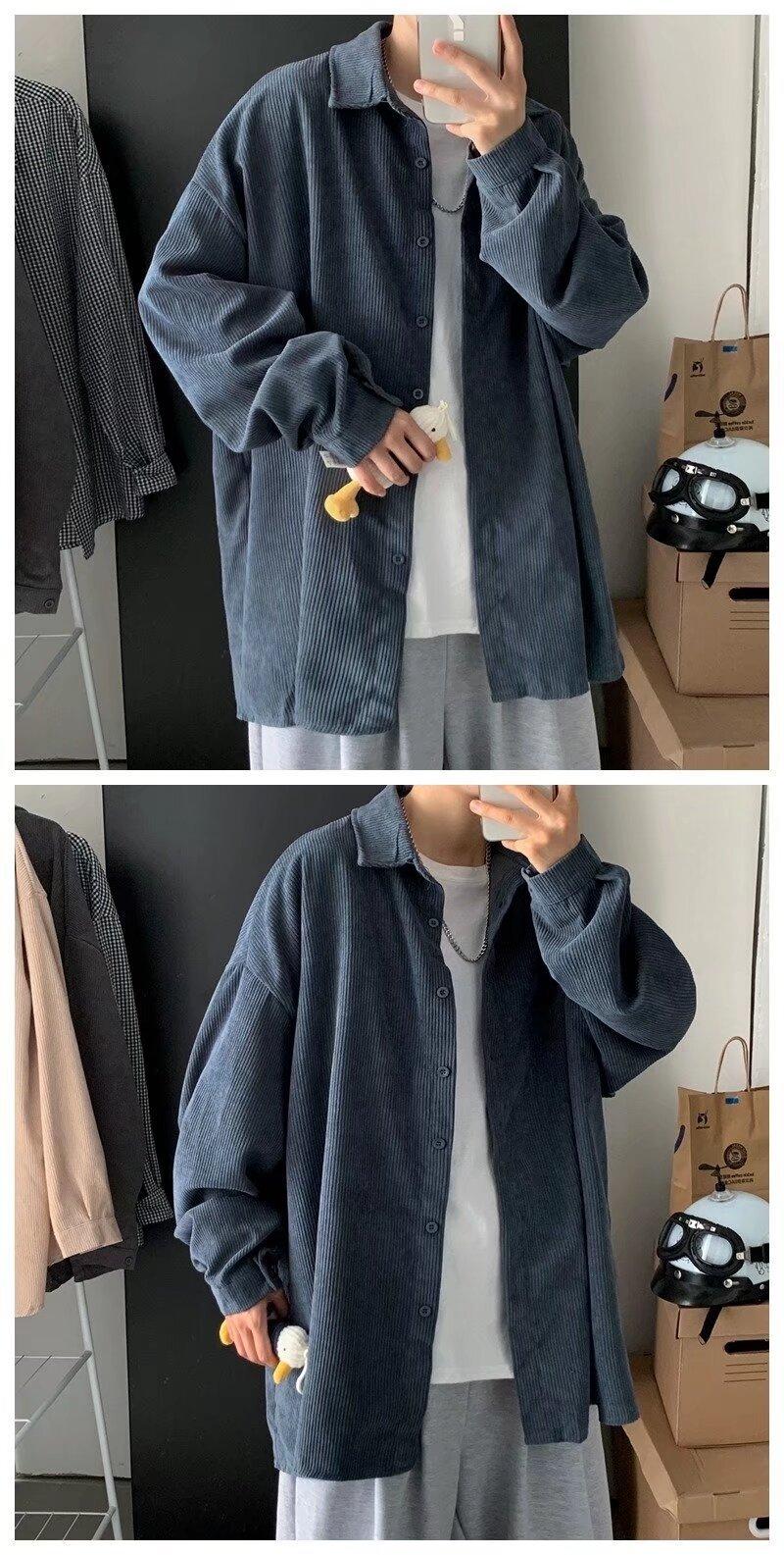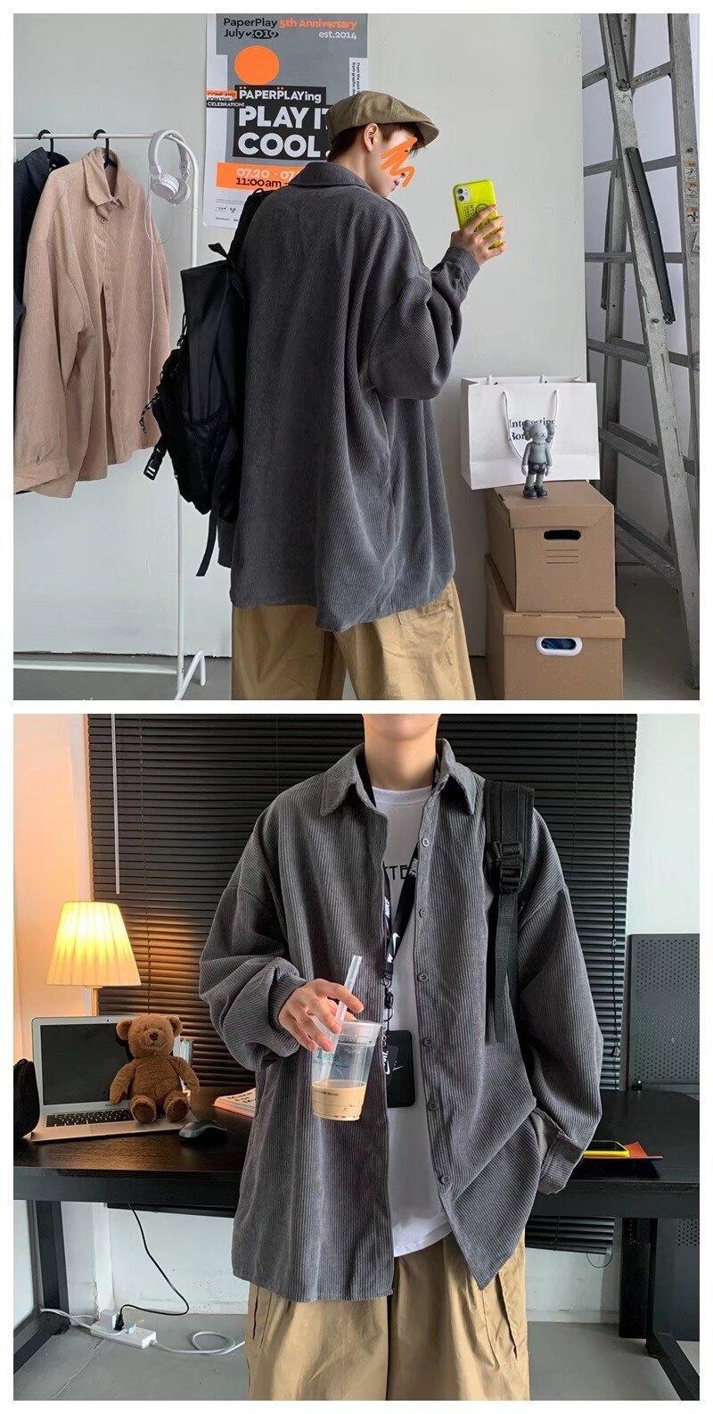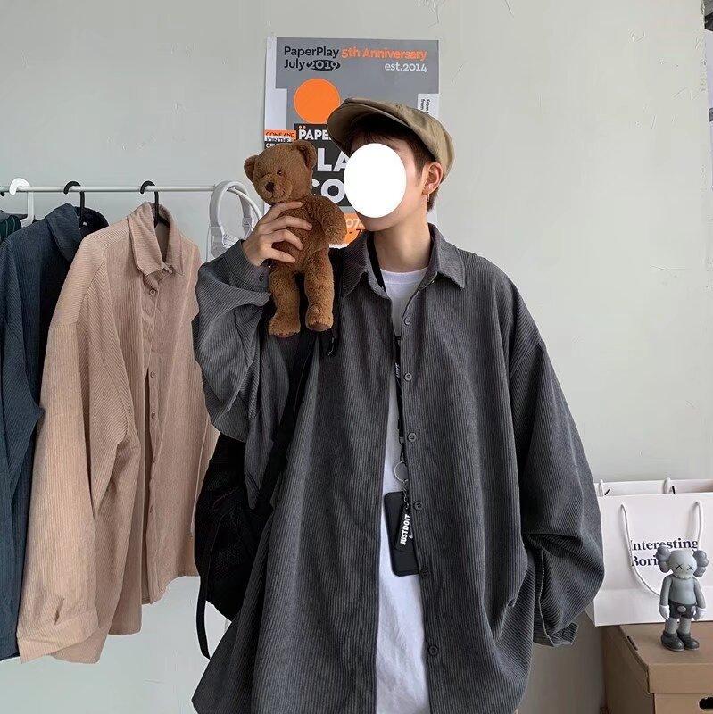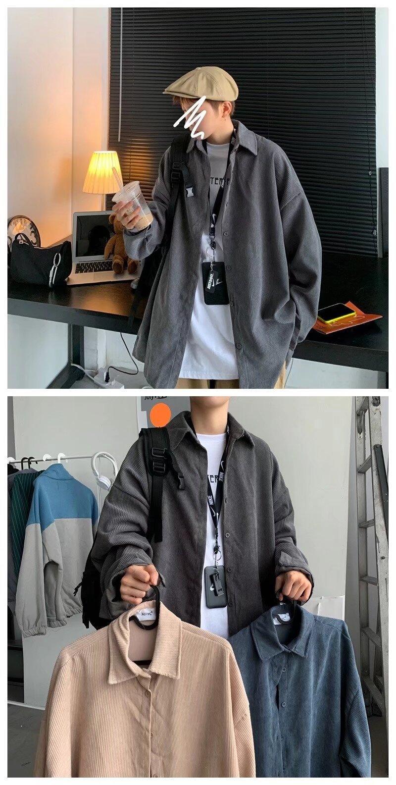 Camisa Vintage de Manga Larga para Hombre Primavera y Otoño Camisa de Moda Estilo Coreano Chaqueta Casual Holgada para Adolescentes