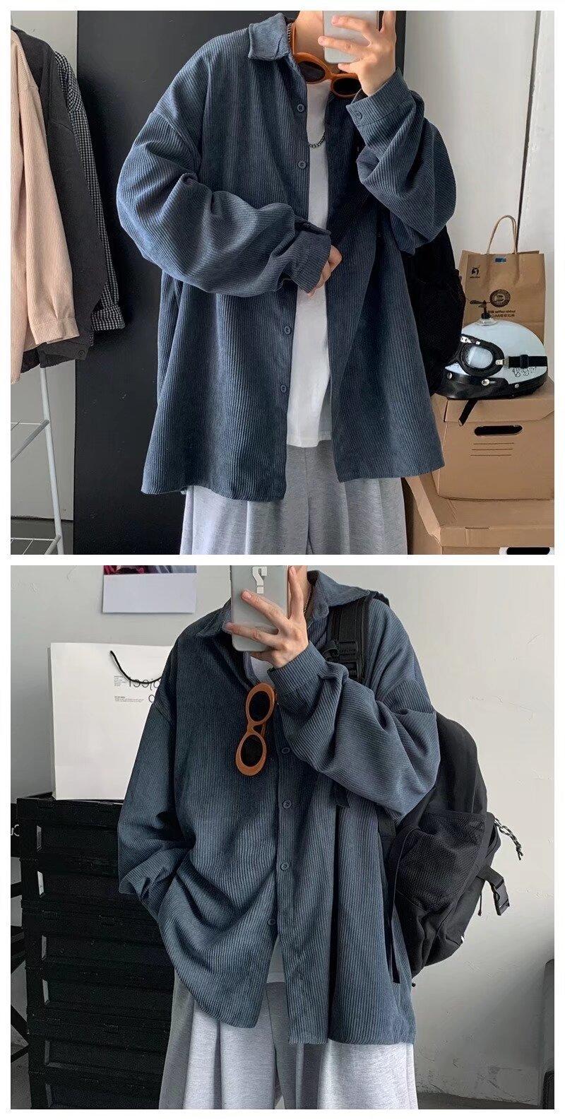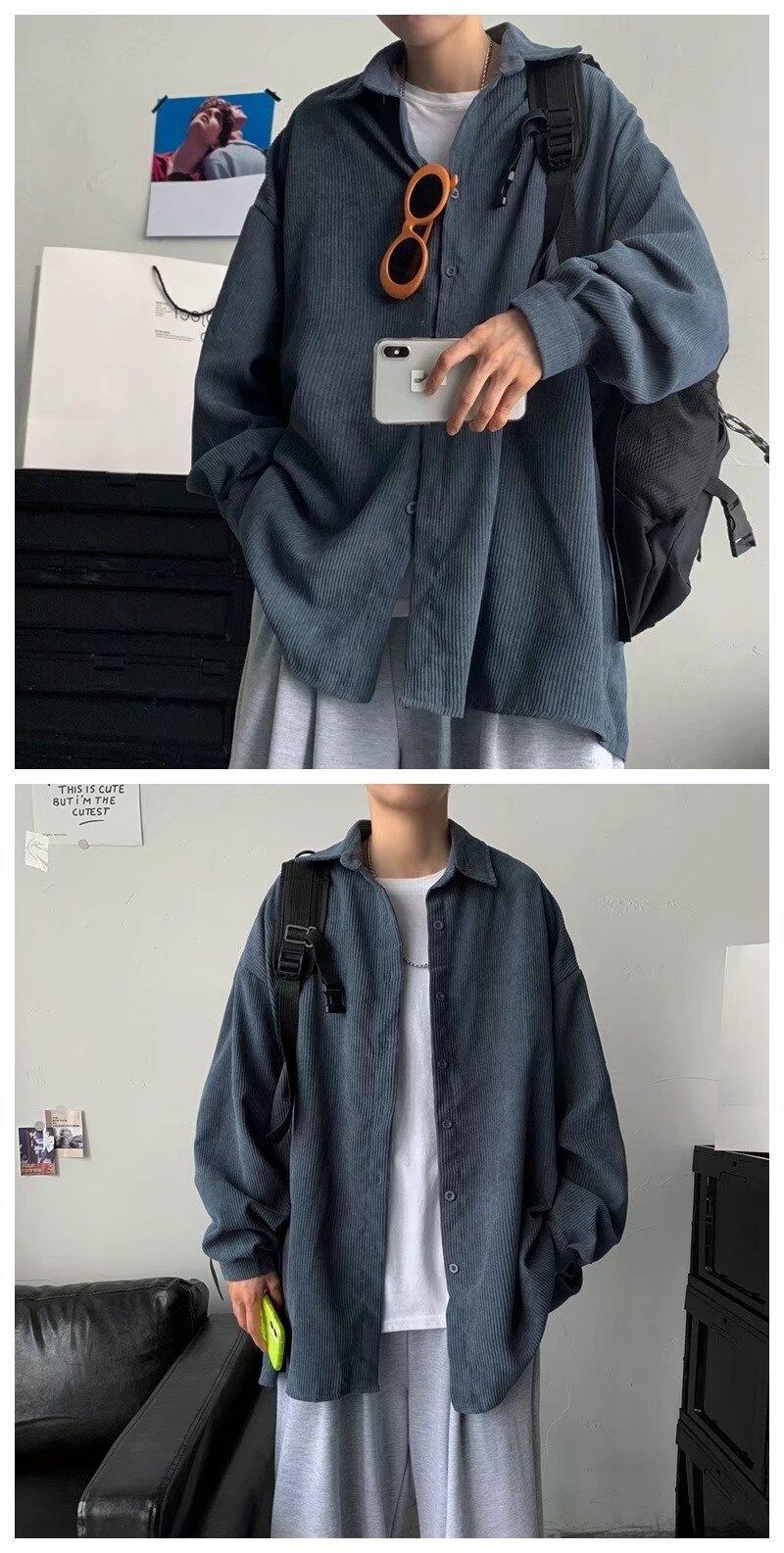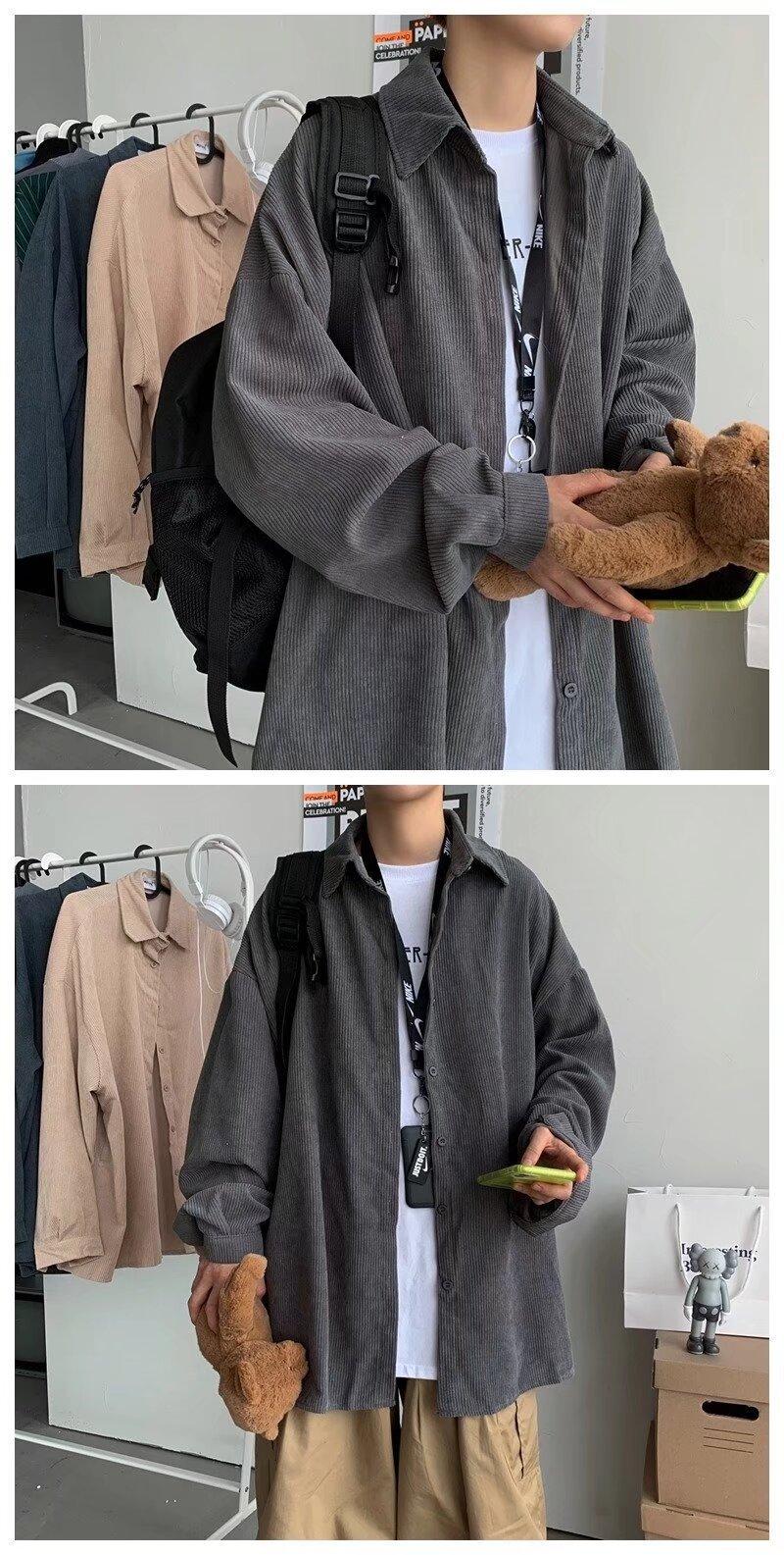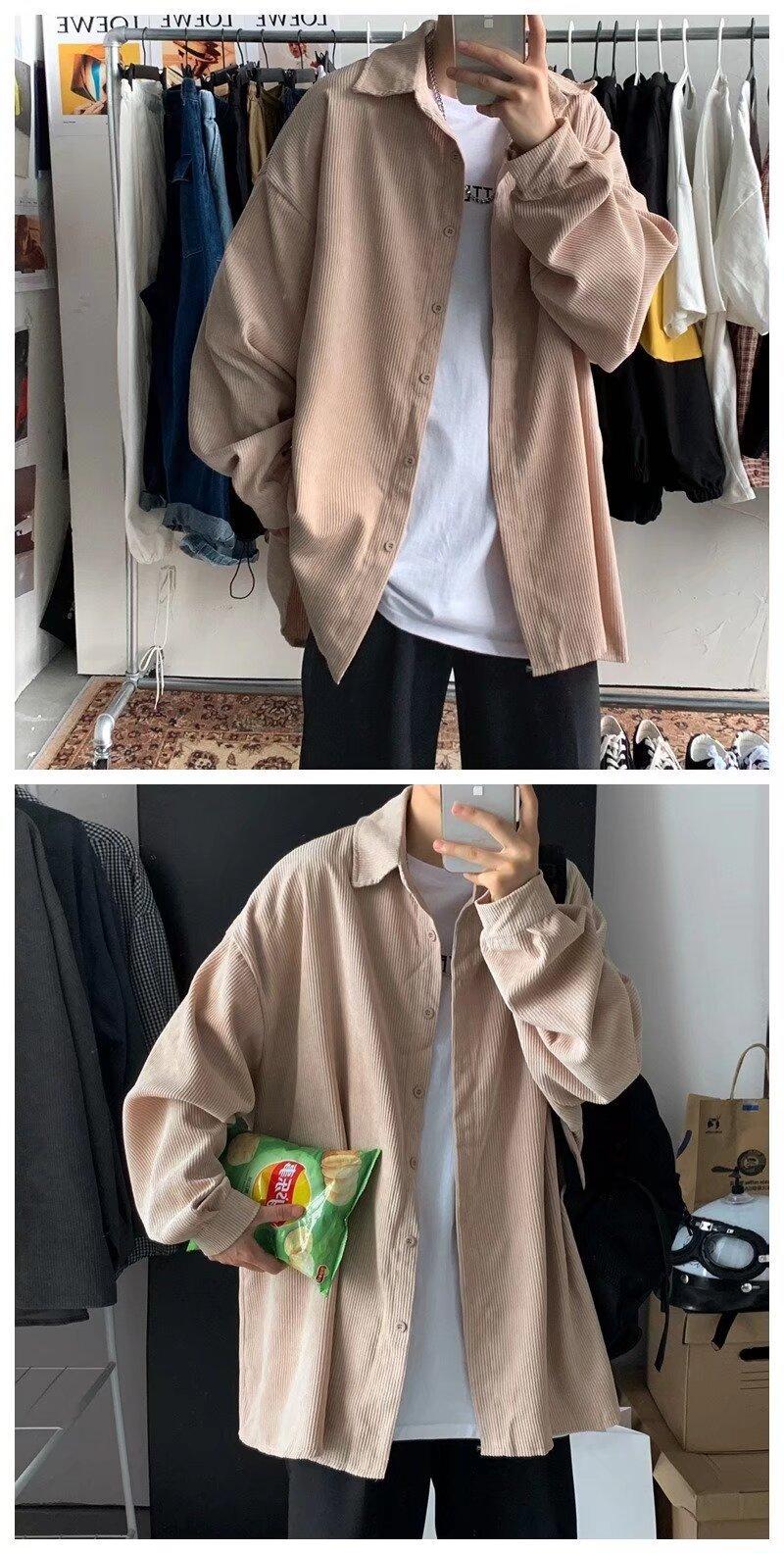 Camisa Vintage de Manga Larga para Hombre Primavera y Otoño Camisa de Moda Estilo Coreano Chaqueta Casual Holgada para Adolescentes