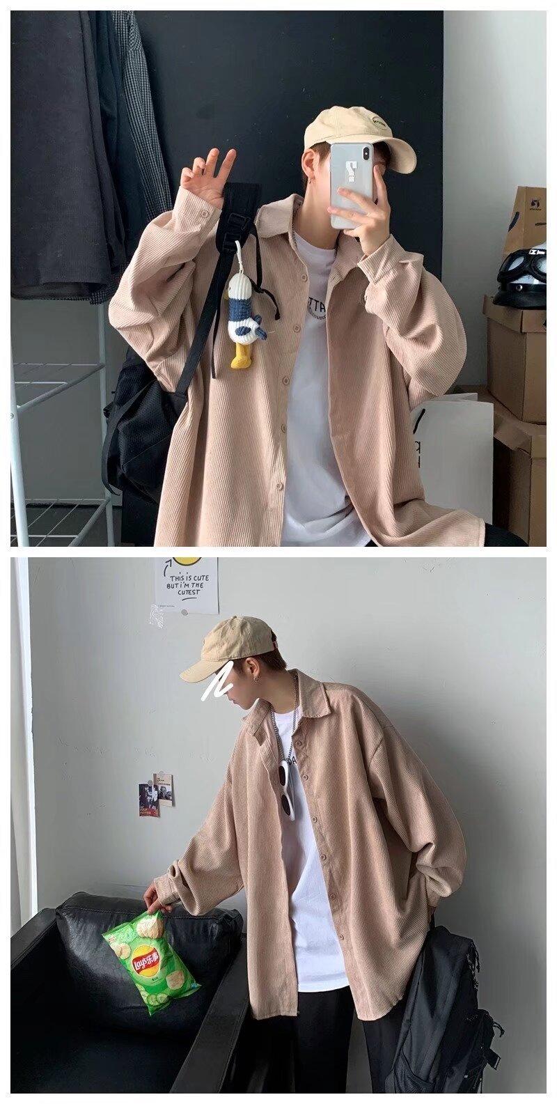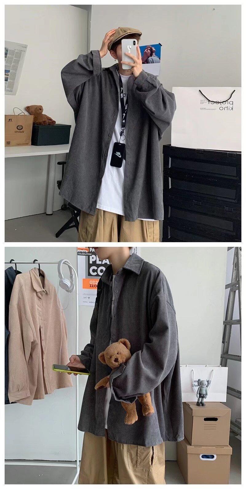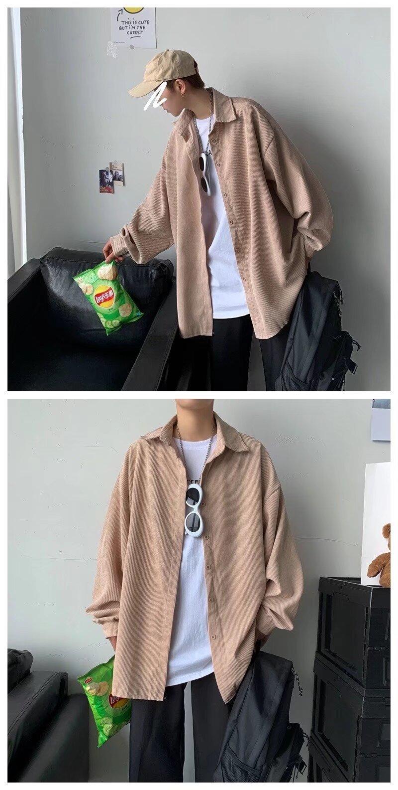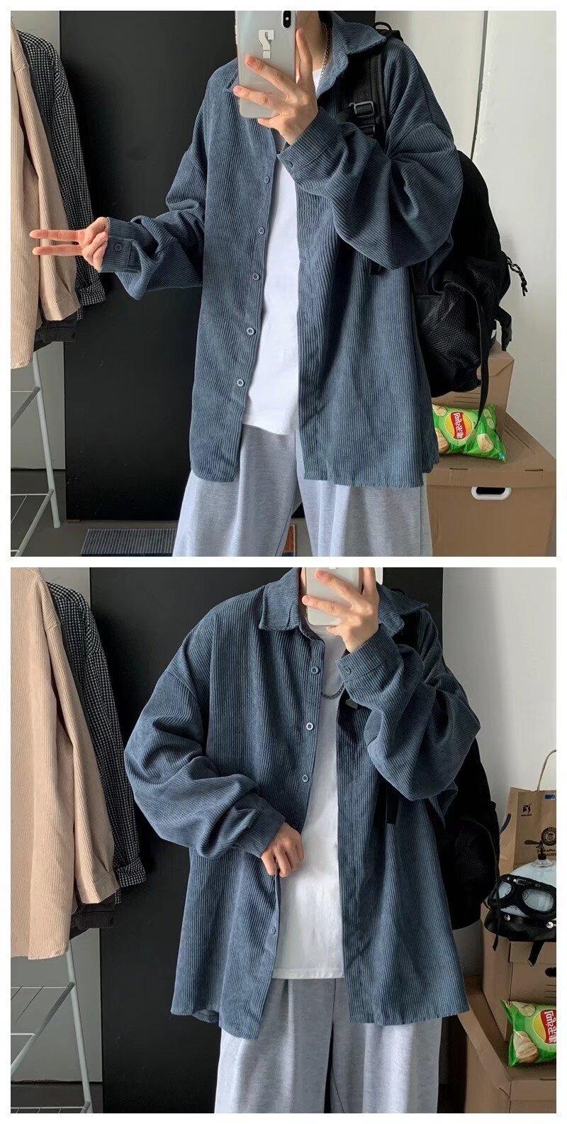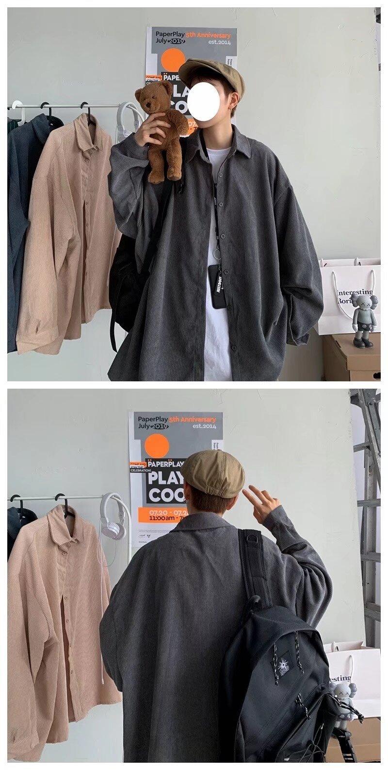 Camisa Vintage de Manga Larga para Hombre Primavera y Otoño Camisa de Moda Estilo Coreano Chaqueta Casual Holgada para Adolescentes