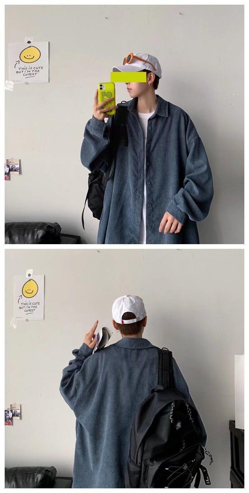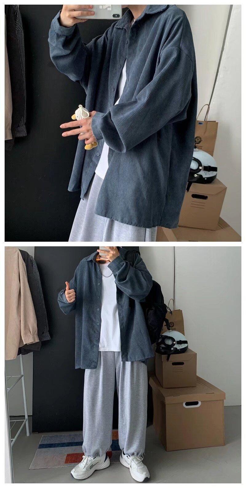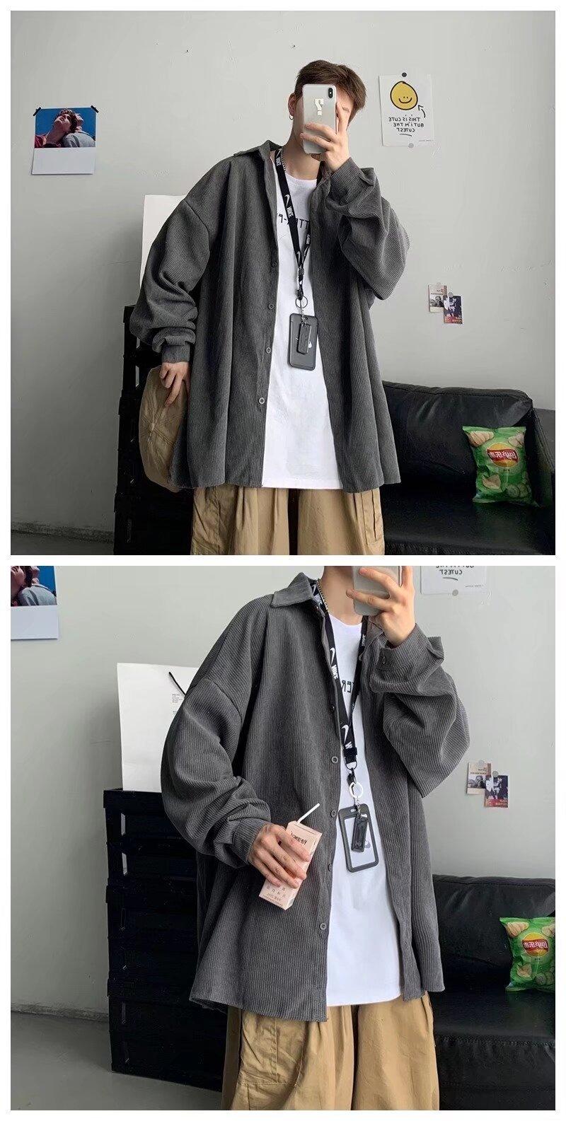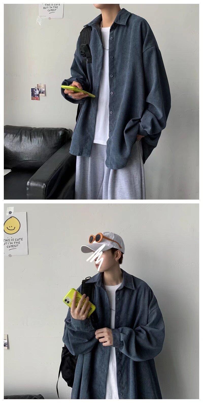 Camisa Vintage de Manga Larga para Hombre Primavera y Otoño Camisa de Moda Estilo Coreano Chaqueta Casual Holgada para Adolescentes