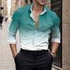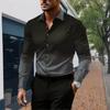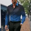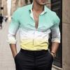 Camisa de manga larga con solapa delgada informal con estampado digital de color degradado para hombre de primavera 2025